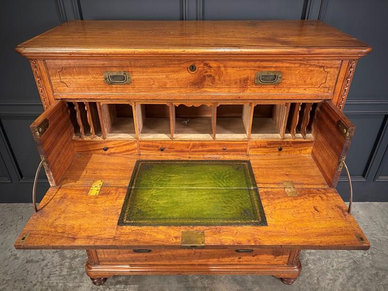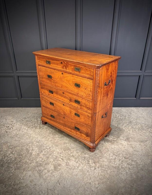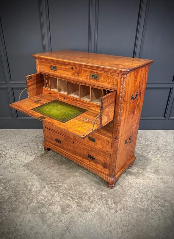 A fine mid-19th century camphor wood military campaign secrétaire chest, circa 1860.