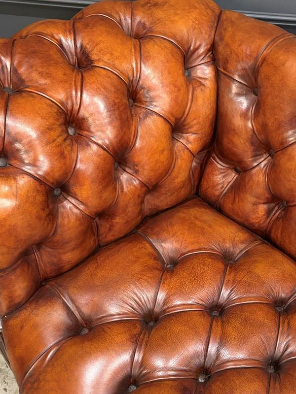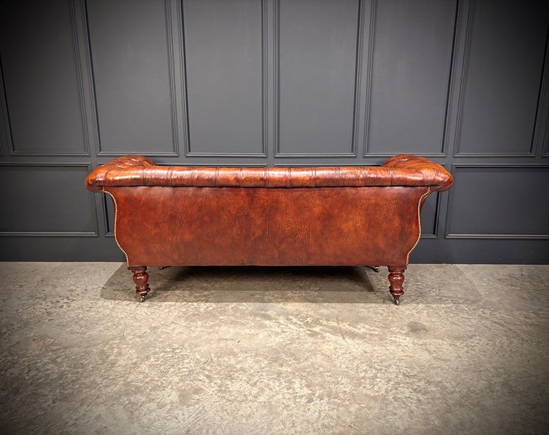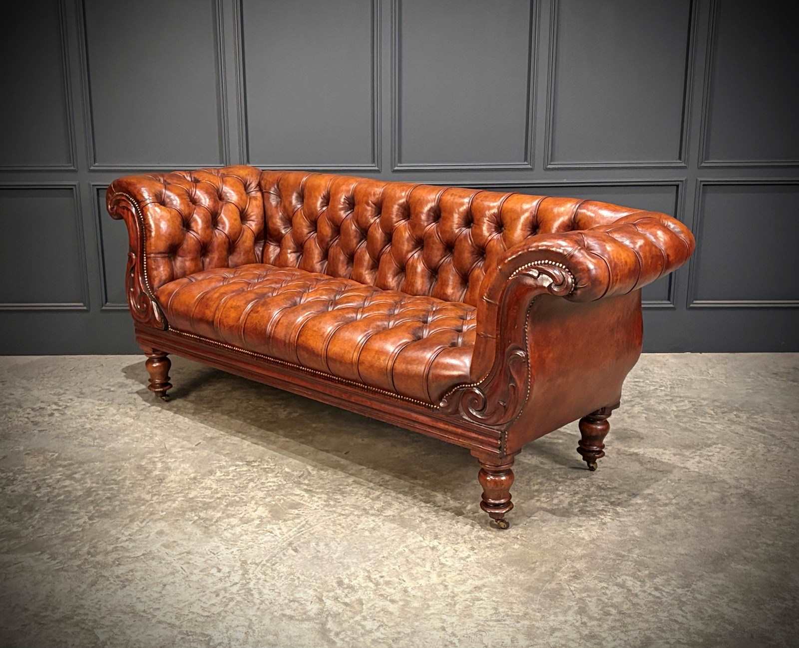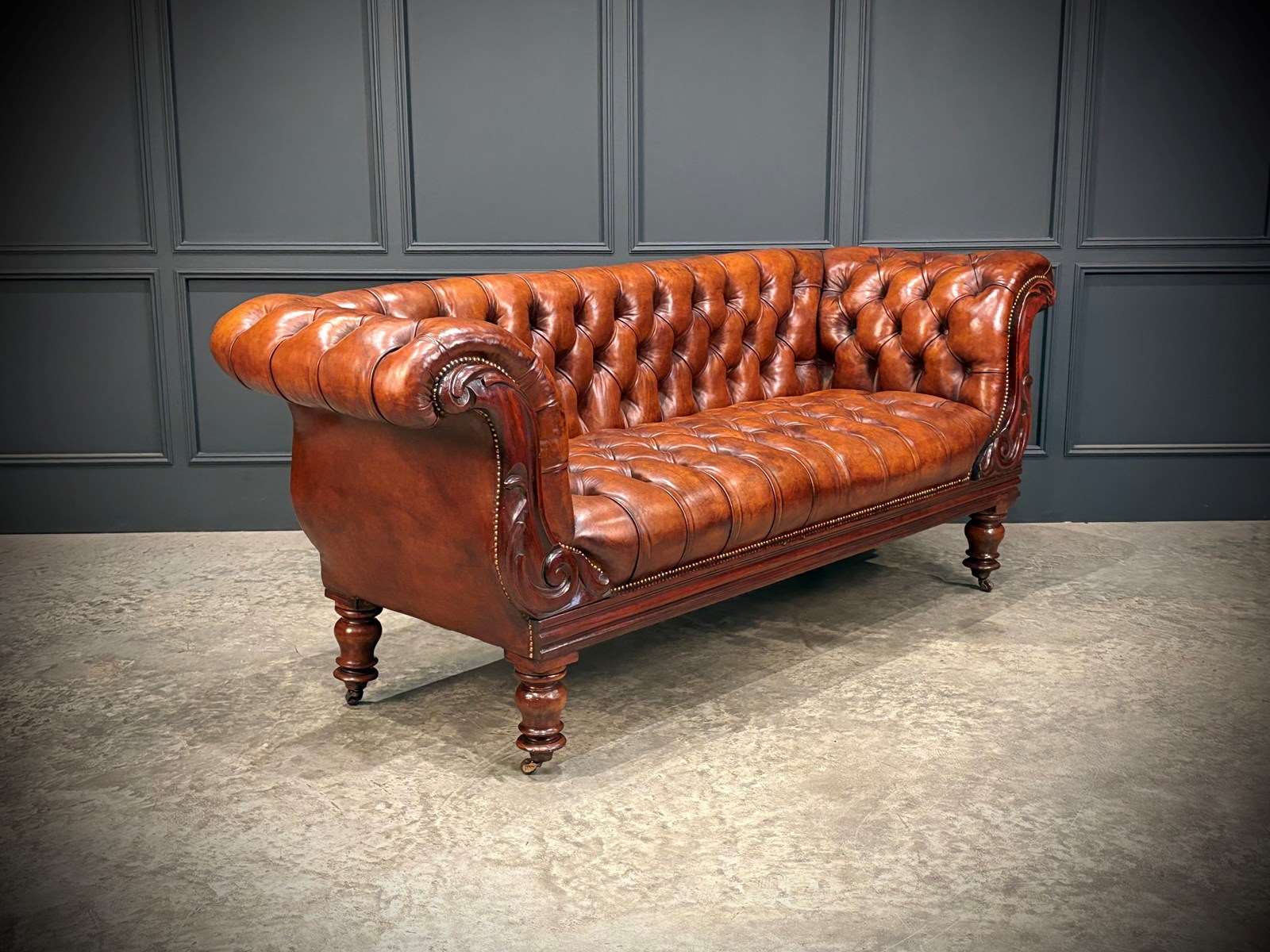 A superb genuine 19th-century buttoned leather Chesterfield sofa in showroom condition.
