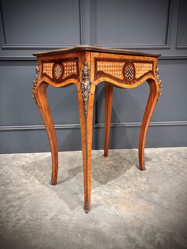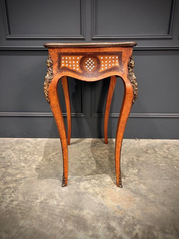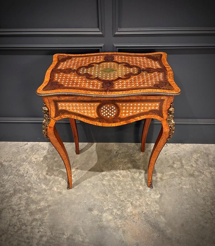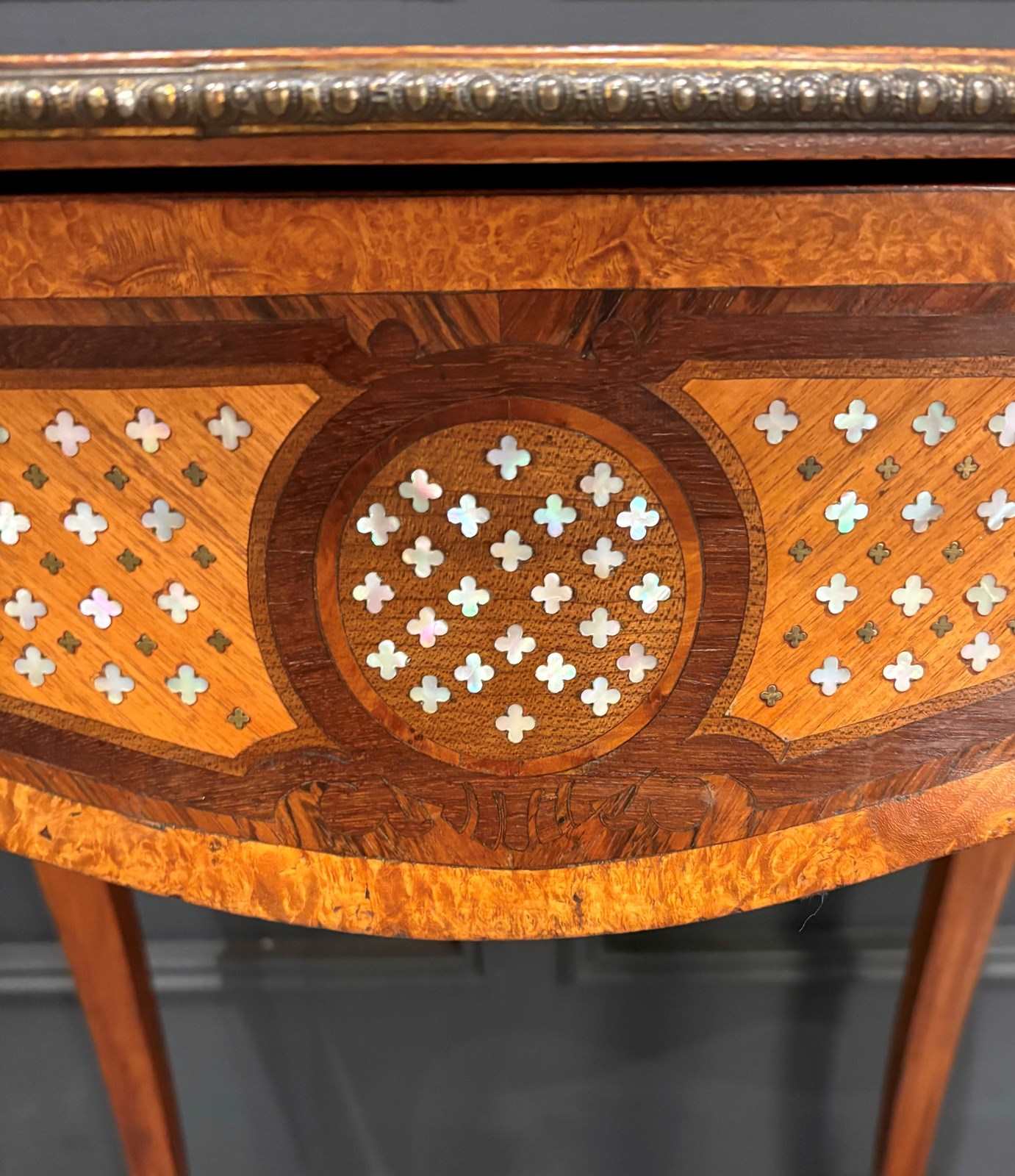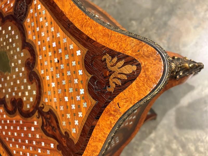 A beautifully shaped 19th-century side table, finely inlaid with mother of pearl and crossbanded in amboyna and kingwood.