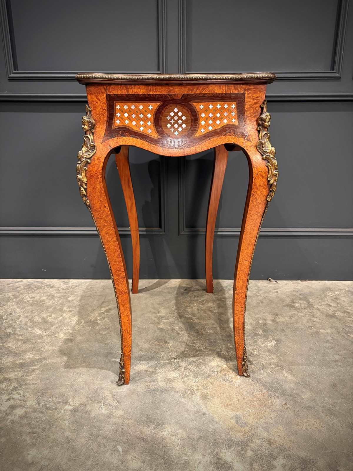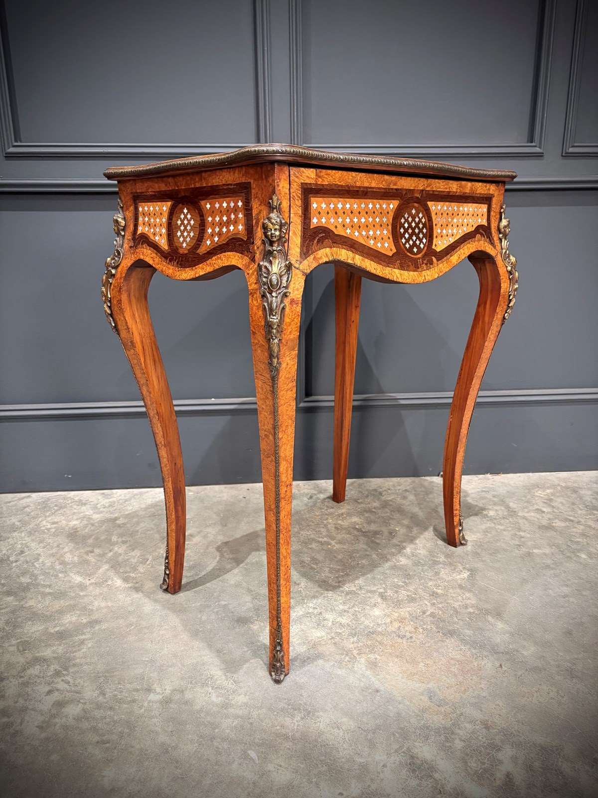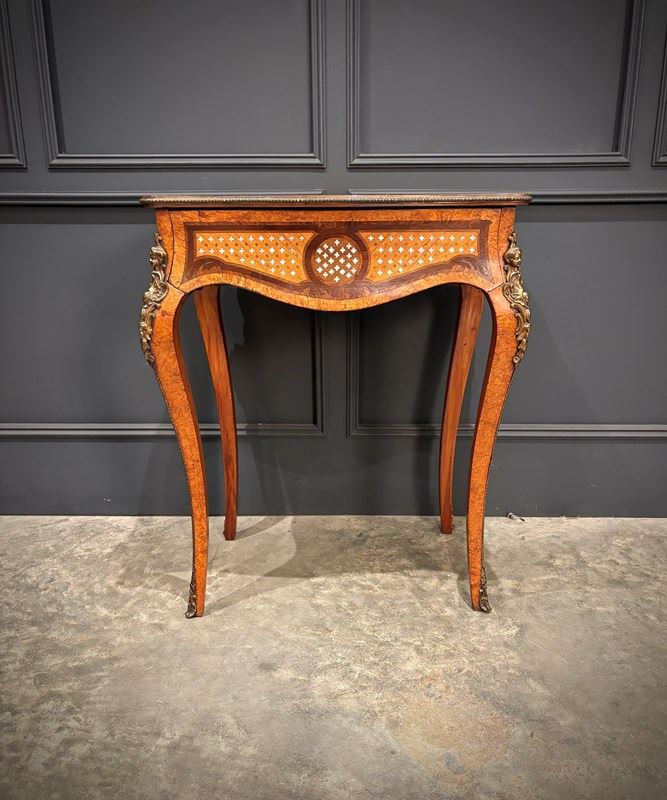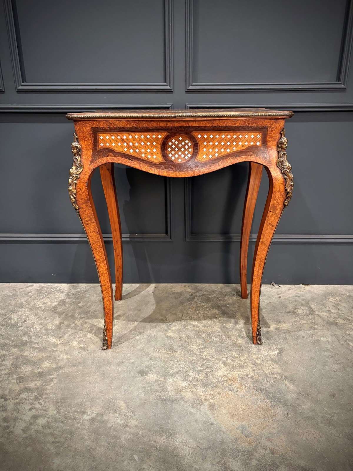A beautifully shaped 19th-century side table, finely inlaid with mother of pearl and crossbanded in amboyna and kingwood.