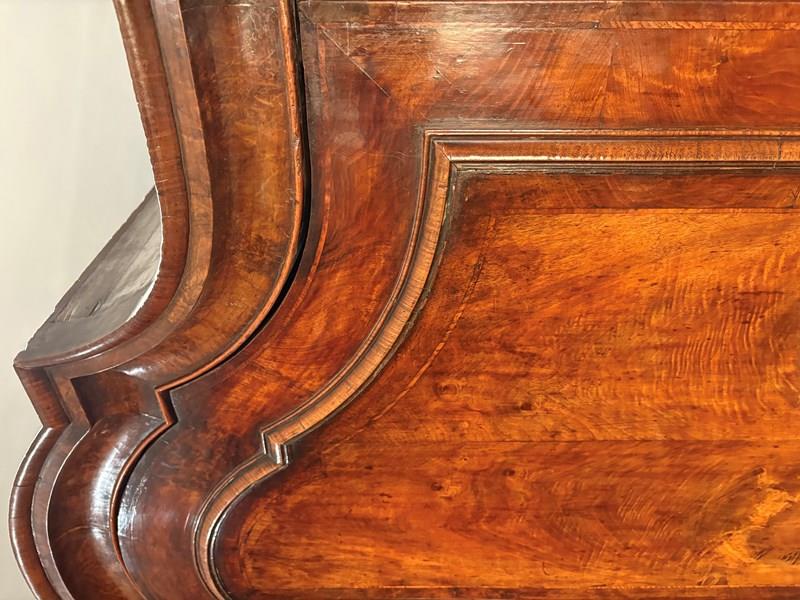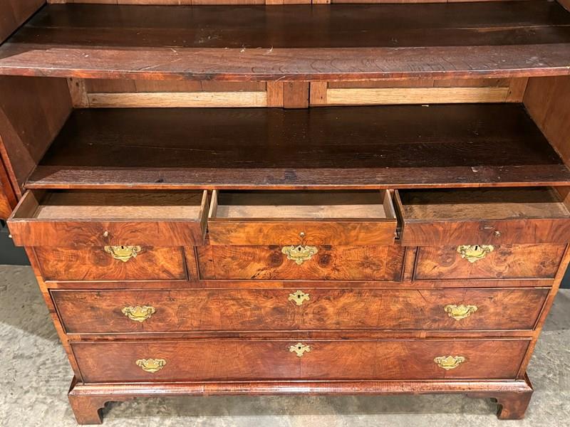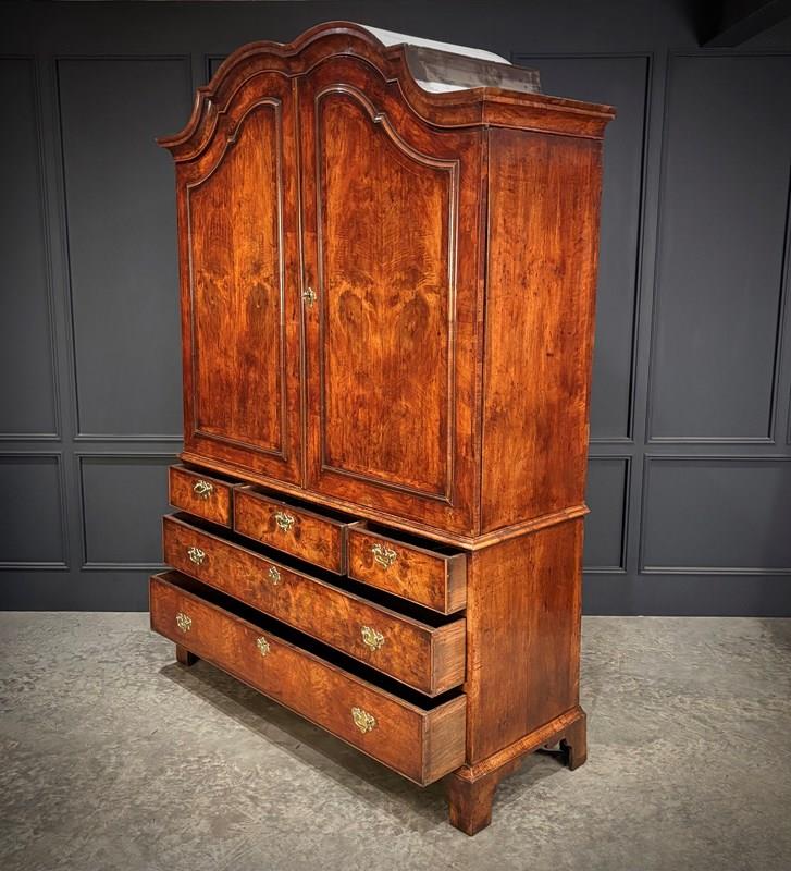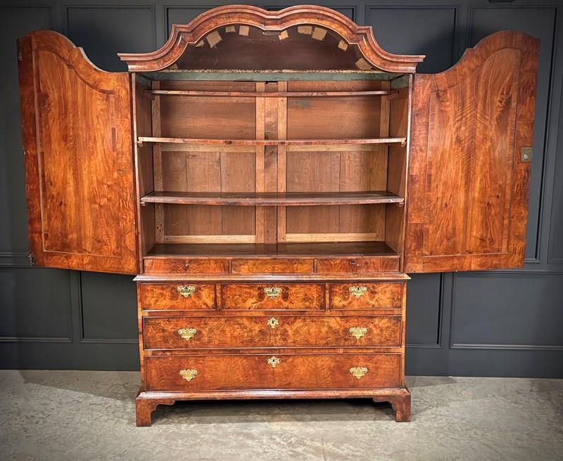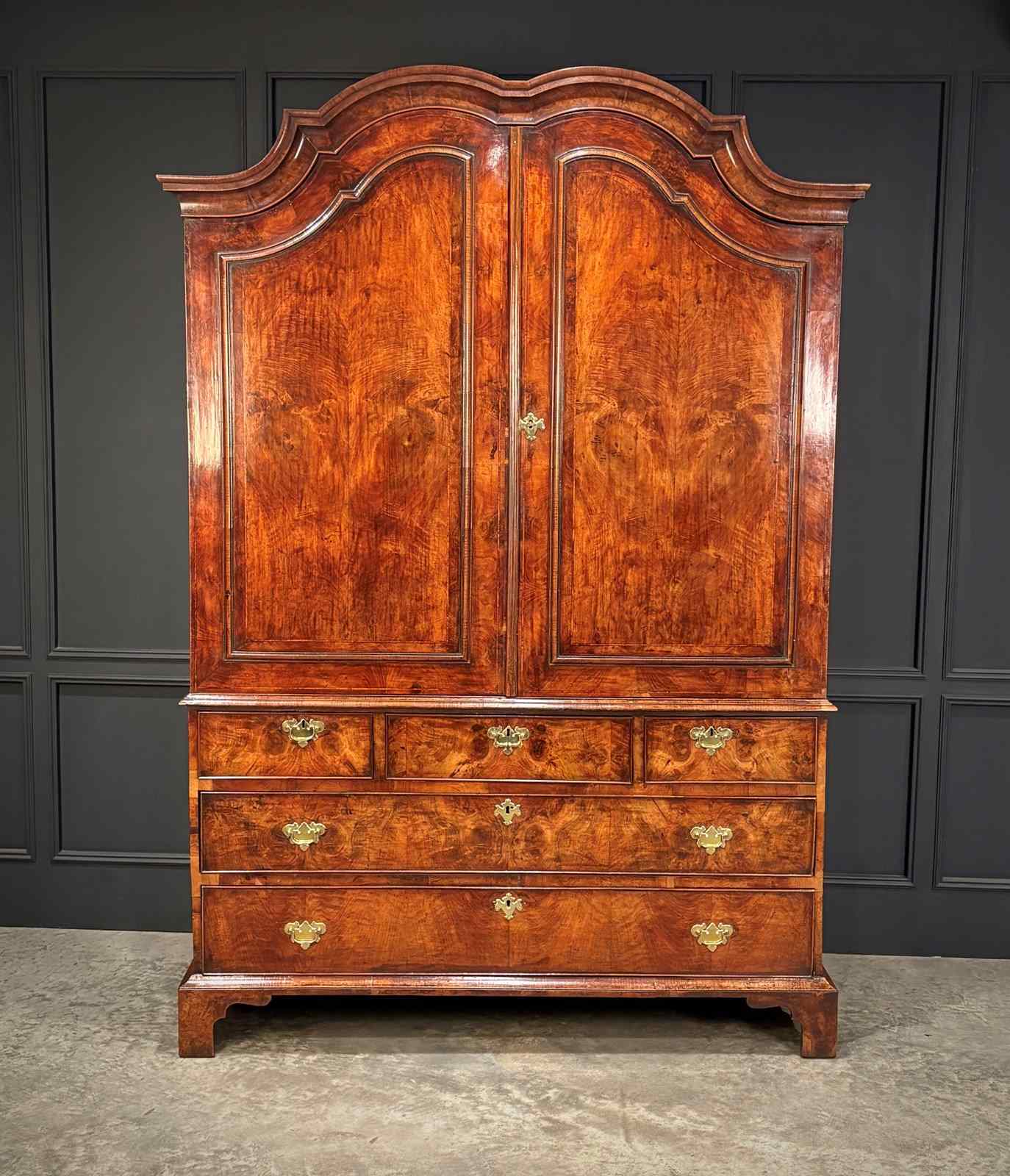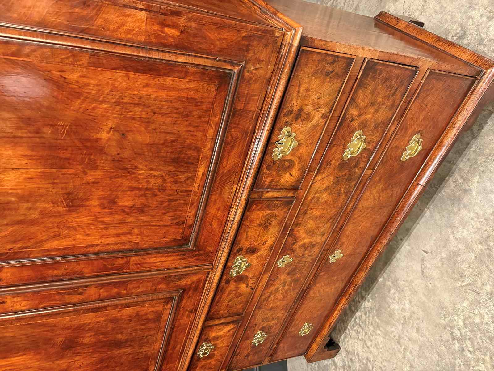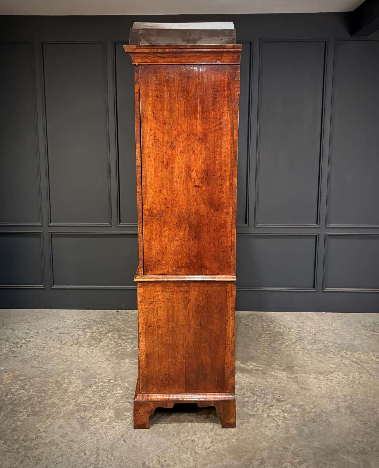 A fine large 18th-century walnut cabinet, beautifully crafted with richly figured walnut, displaying a warm, glowing patina.