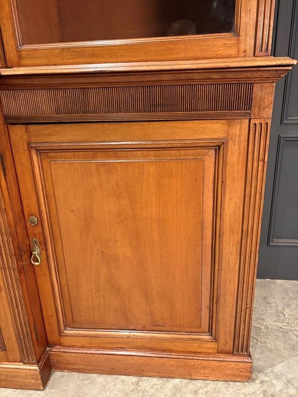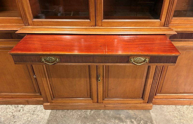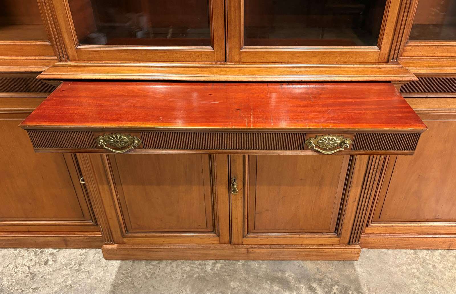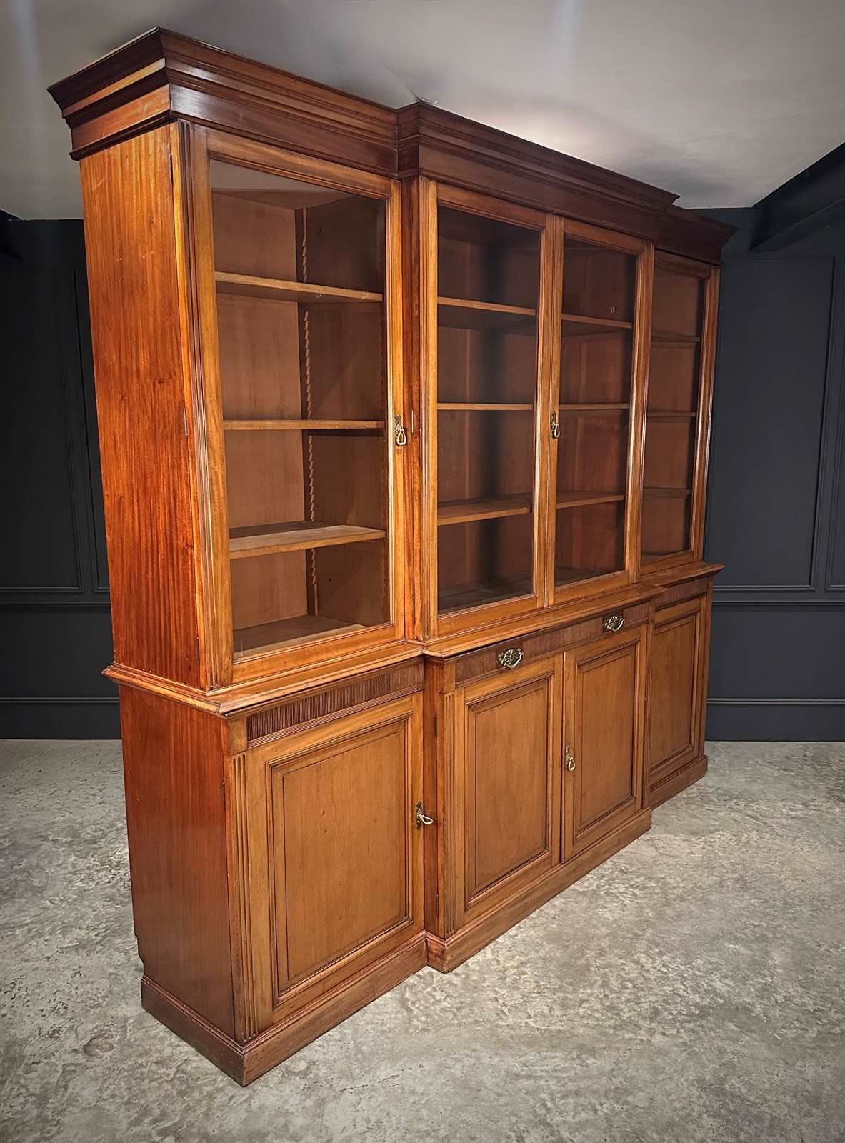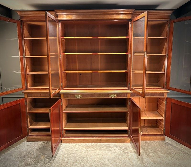 This impressive mahogany bookcase features a classic breakfront design with 4 glazed upper doors, all fitted with height-adjustable shelves.