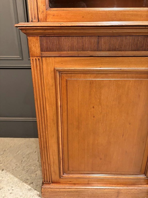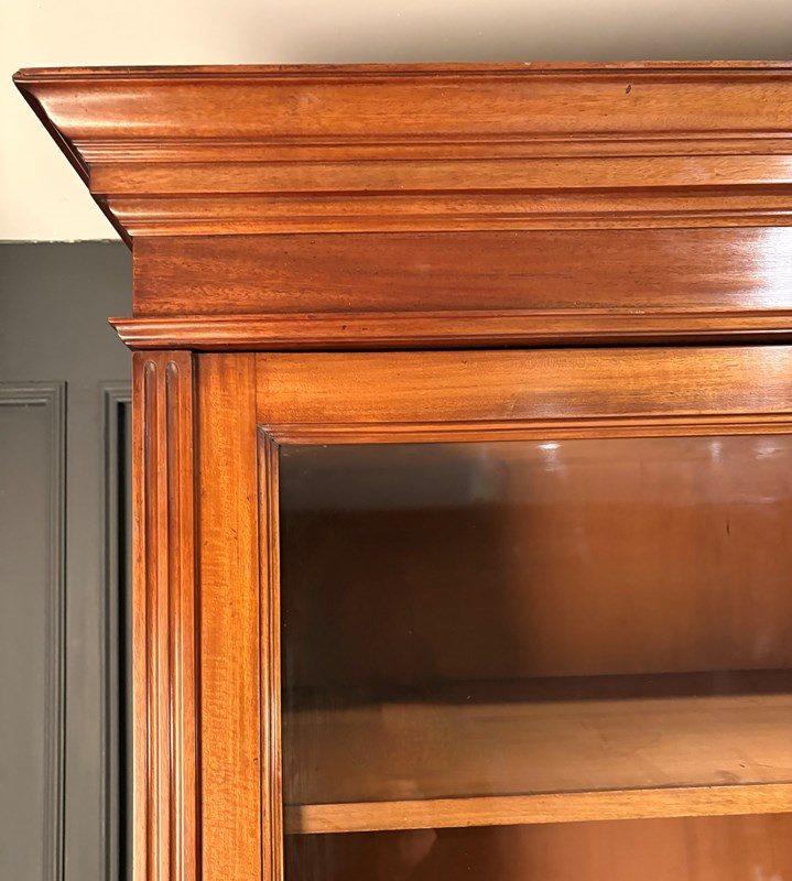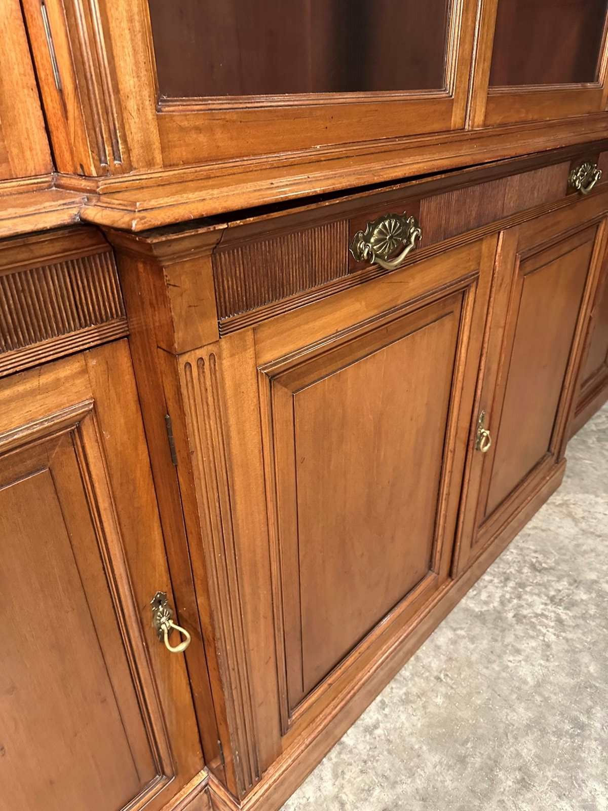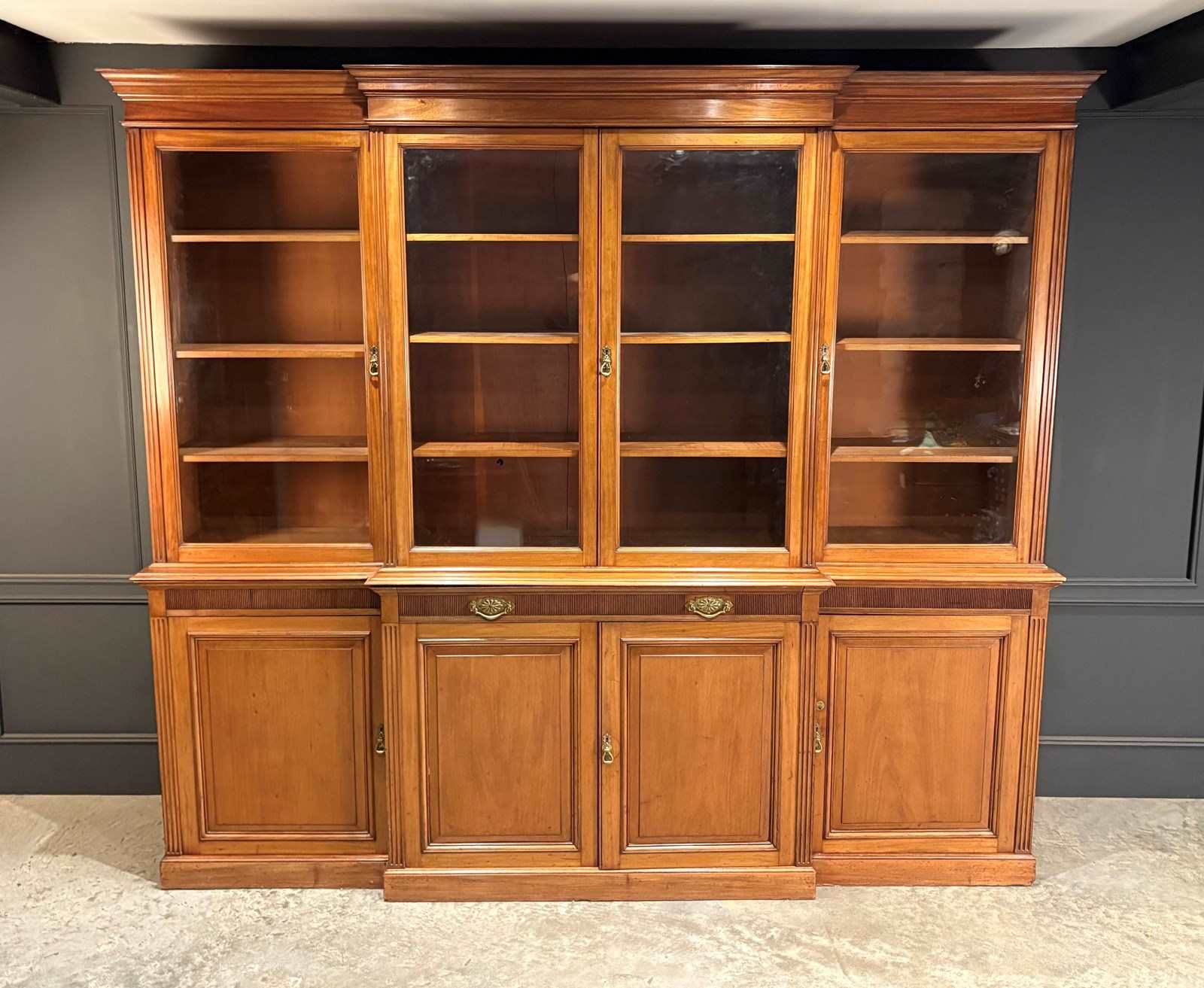 This impressive mahogany bookcase features a classic breakfront design with 4 glazed upper doors, all fitted with height-adjustable shelves.