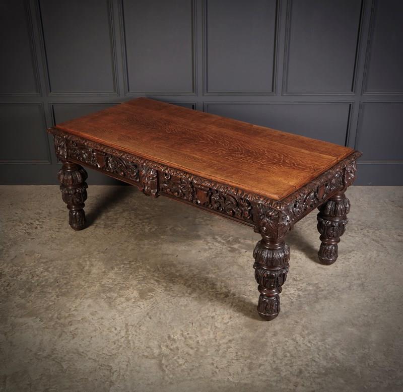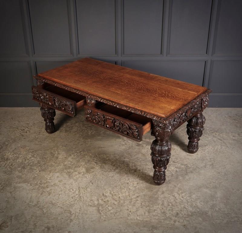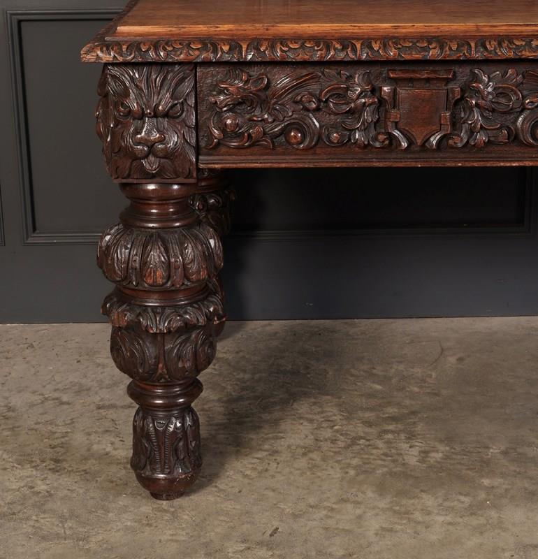 Large Impressive Carved Oak Writing Table