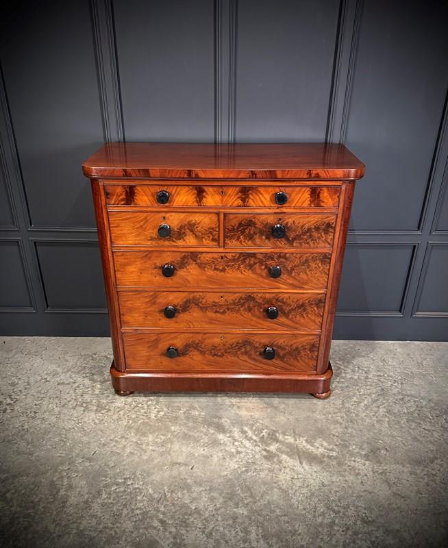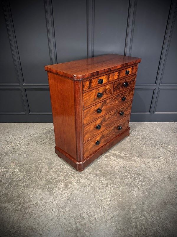 Large Victorian Flame Mahogany Chest Of Drawers