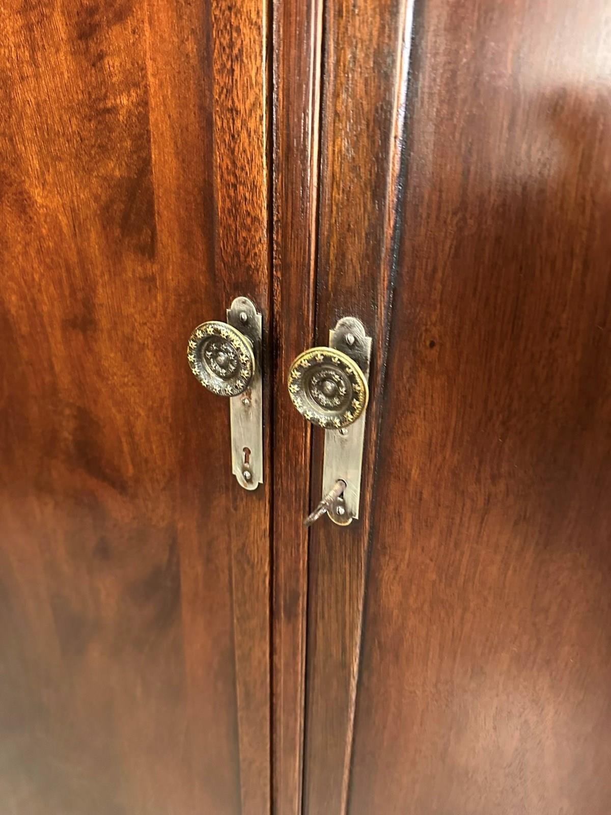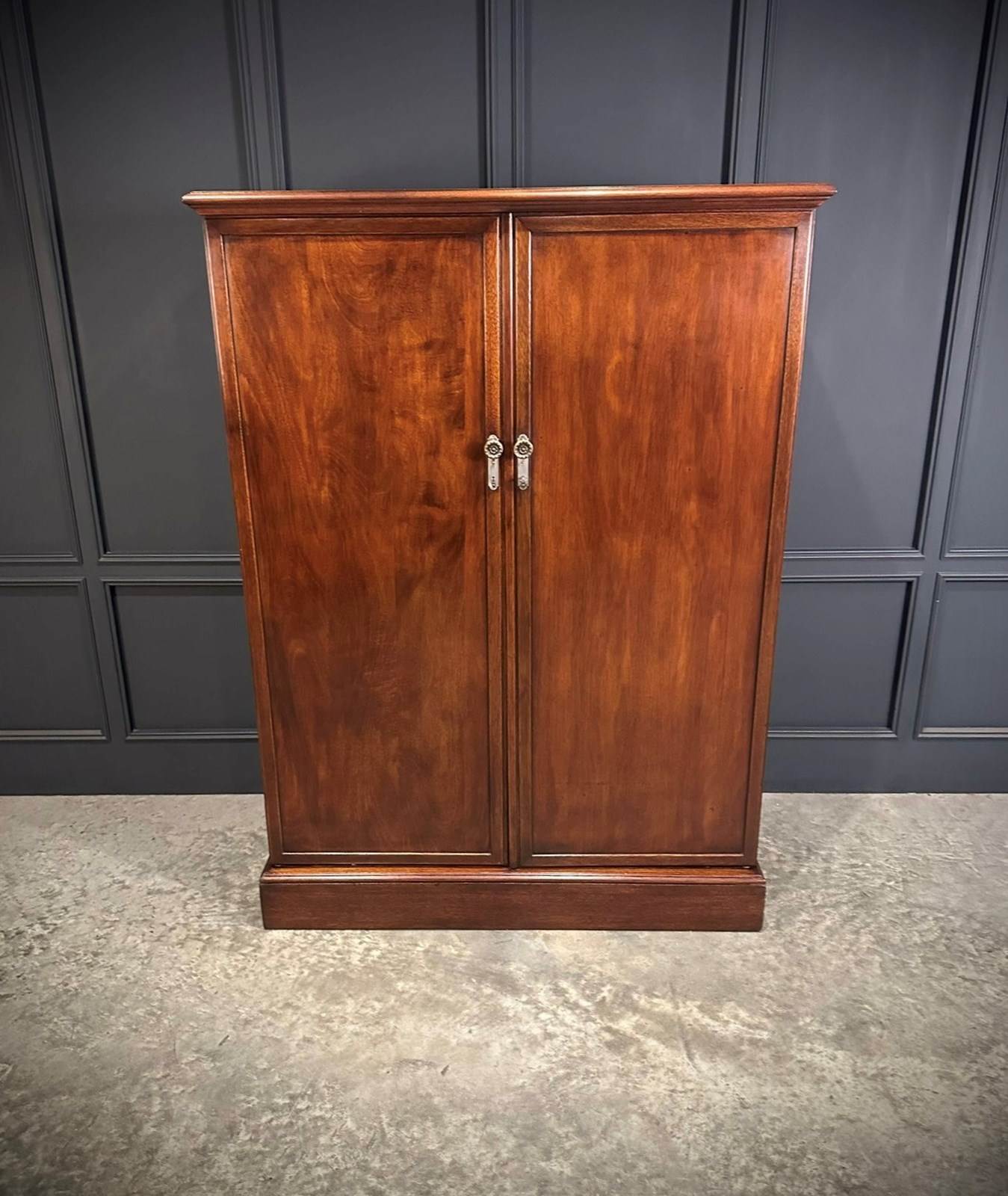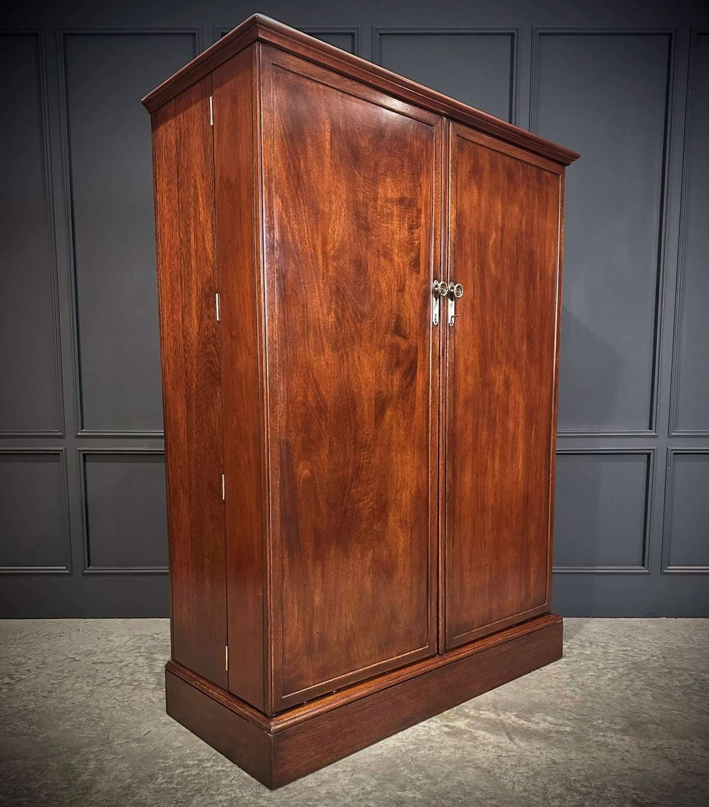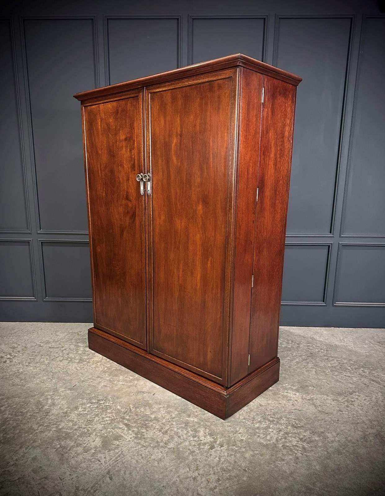 An excellent quality circa 1920 mahogany compactum wardrobe, beautifully proportioned and finished with notably deep, clean panelled doors, allowing for generous and practical storage. The wardrobe has been professionally repolished and now presents in excellent condition, with a rich colour and attractive grain throughout.