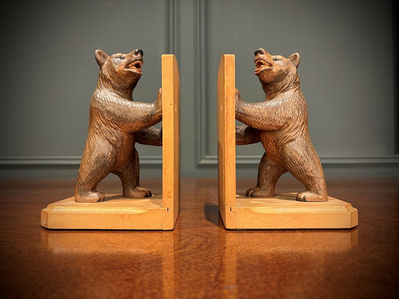 Pair Of Carved Black Forest Bear Bookends