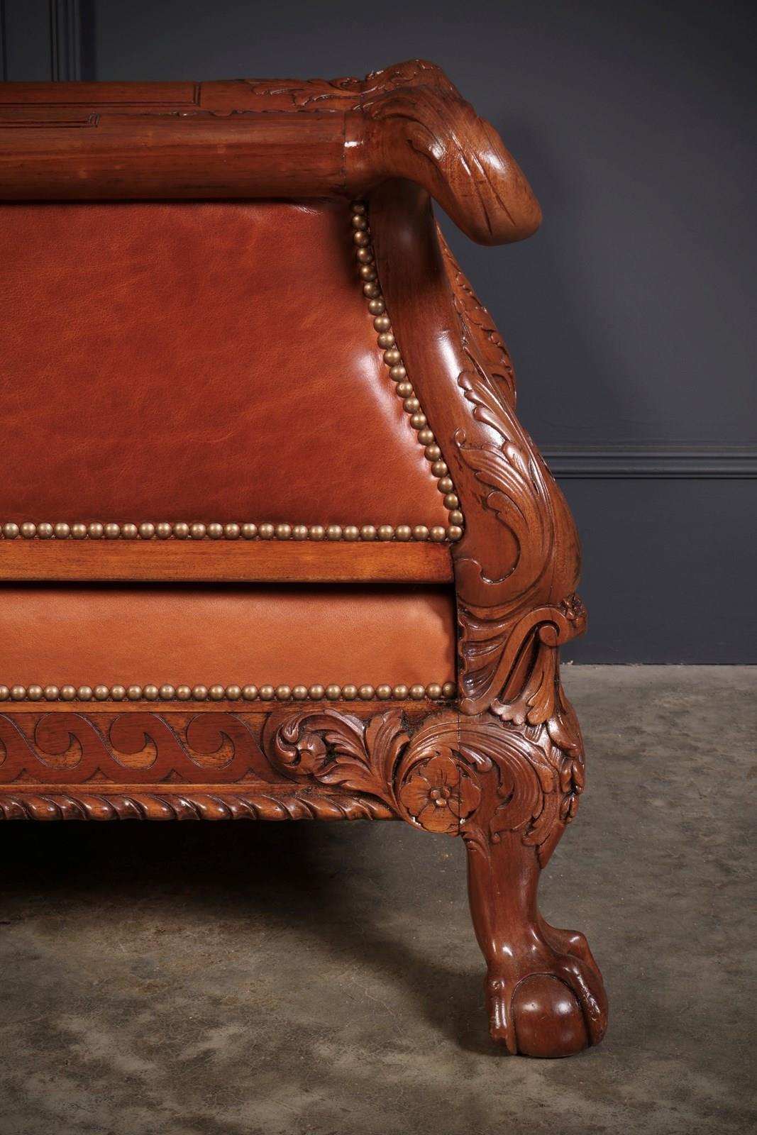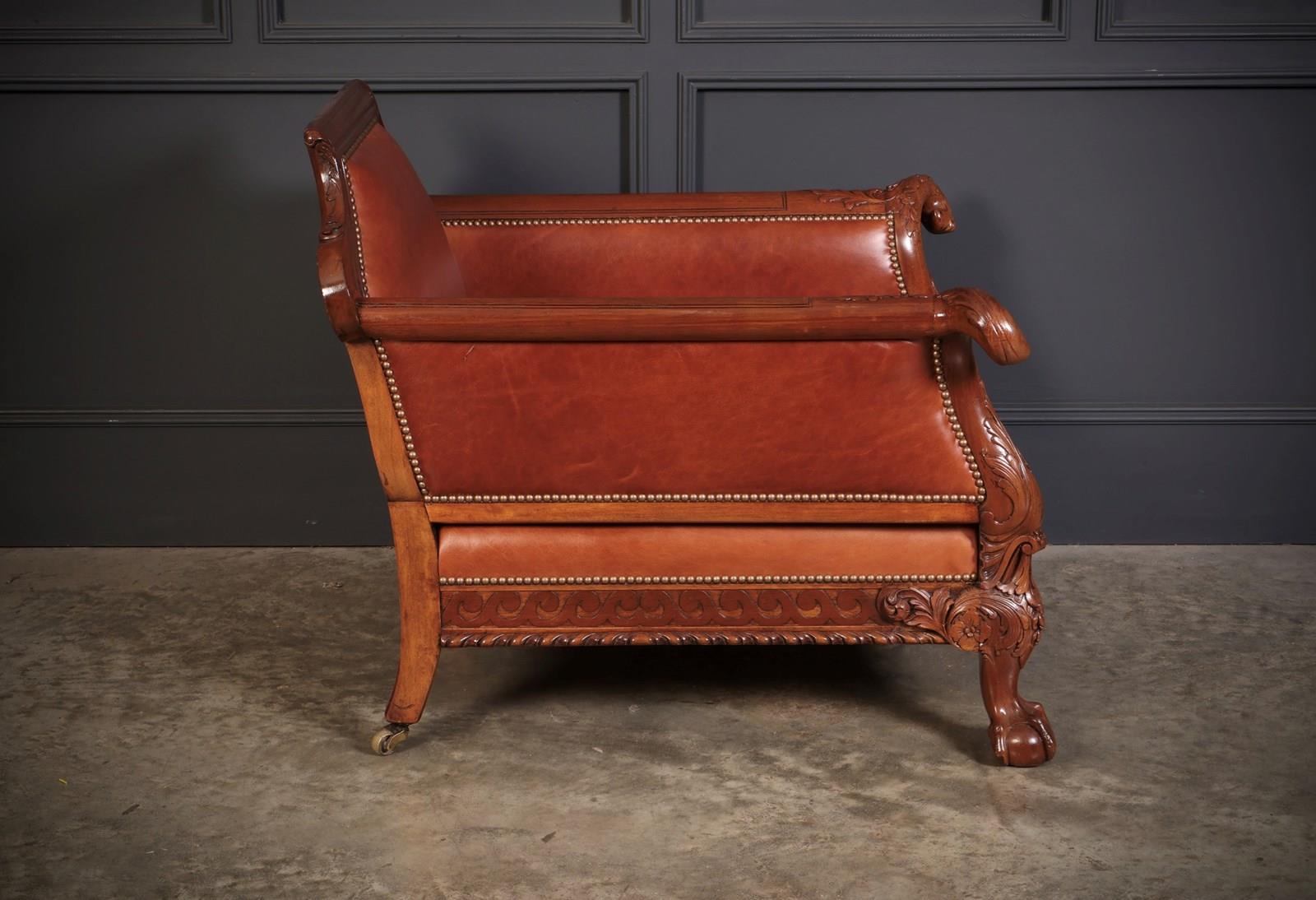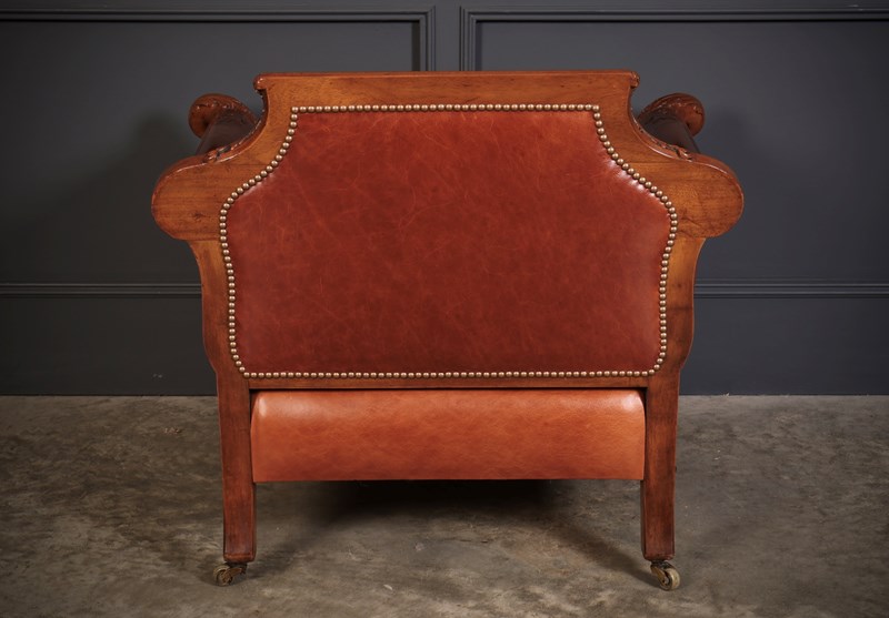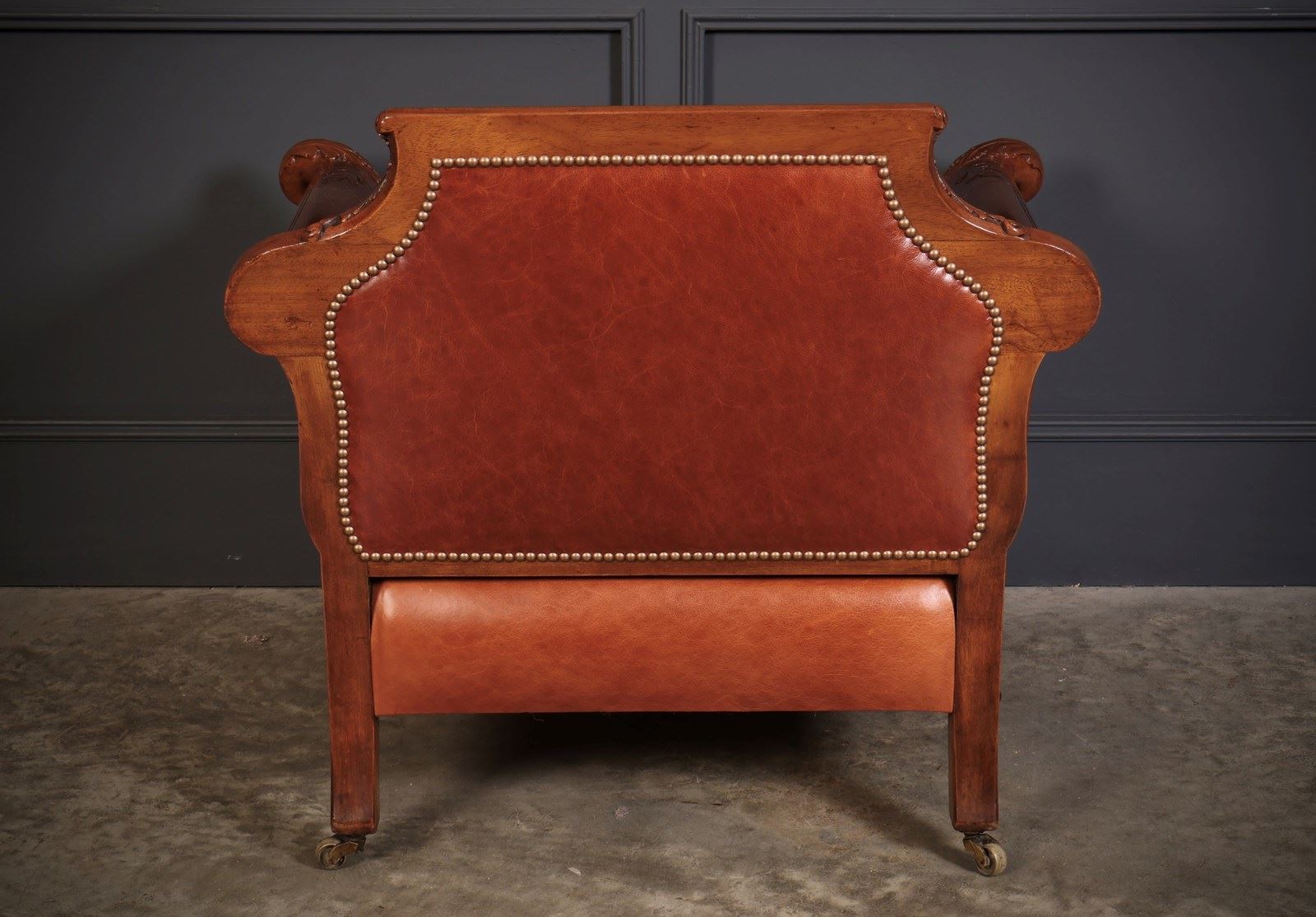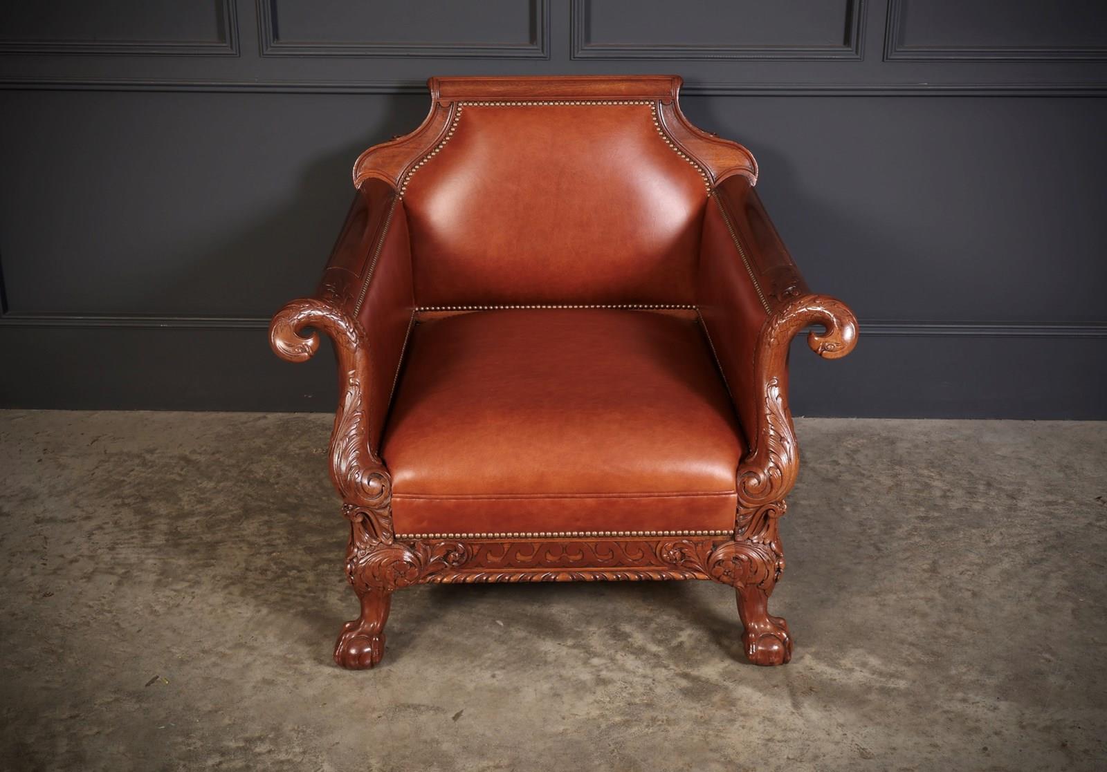 Pair Of Carved Mahogany & Leather Library Armchairs