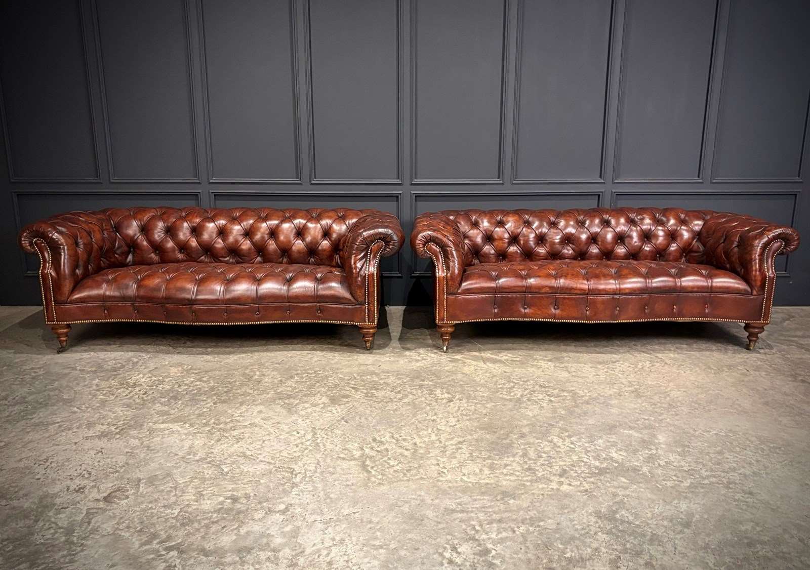 A rare opportunity to acquire a matching pair of Chesterfields of such quality, colour, and presence.