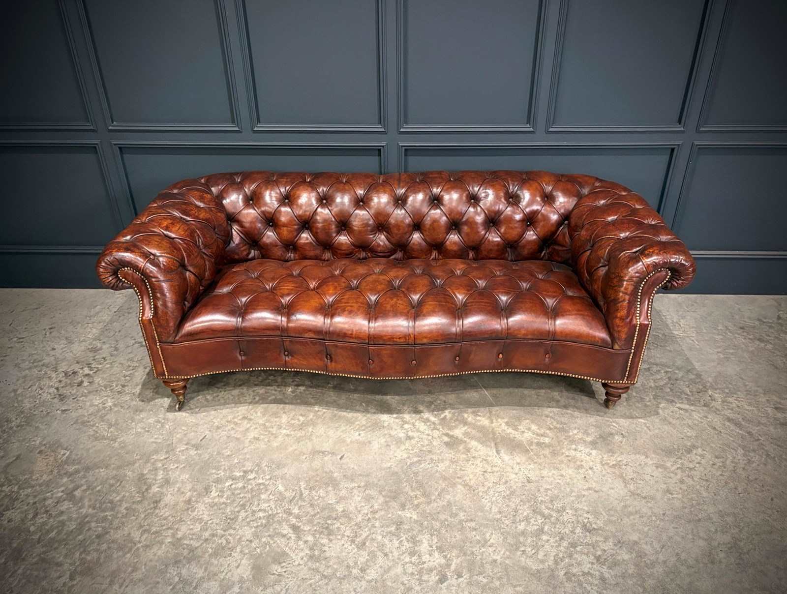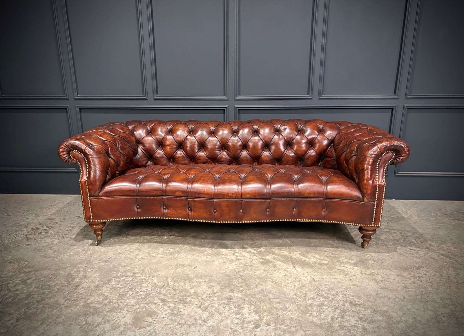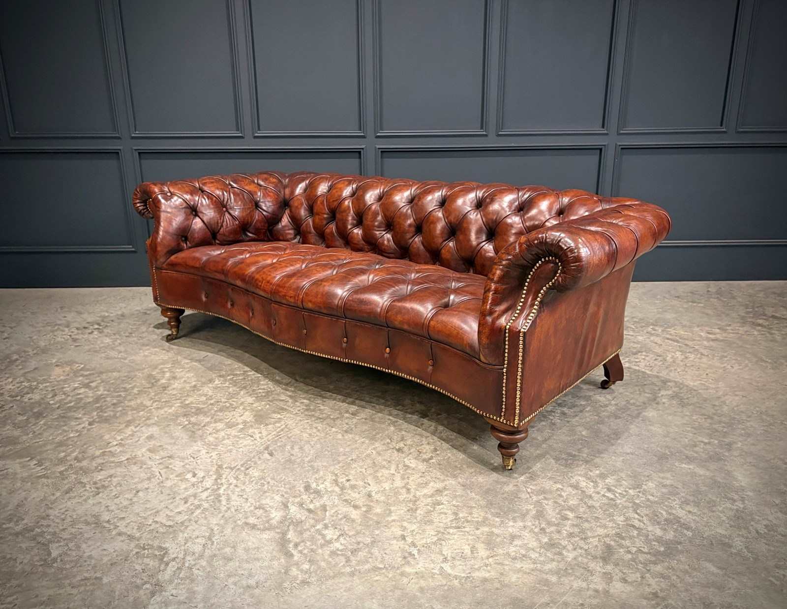 Raised on finely turned wooden legs with brass casters, they offer the perfect balance of grandeur, comfort, and timeless English design.