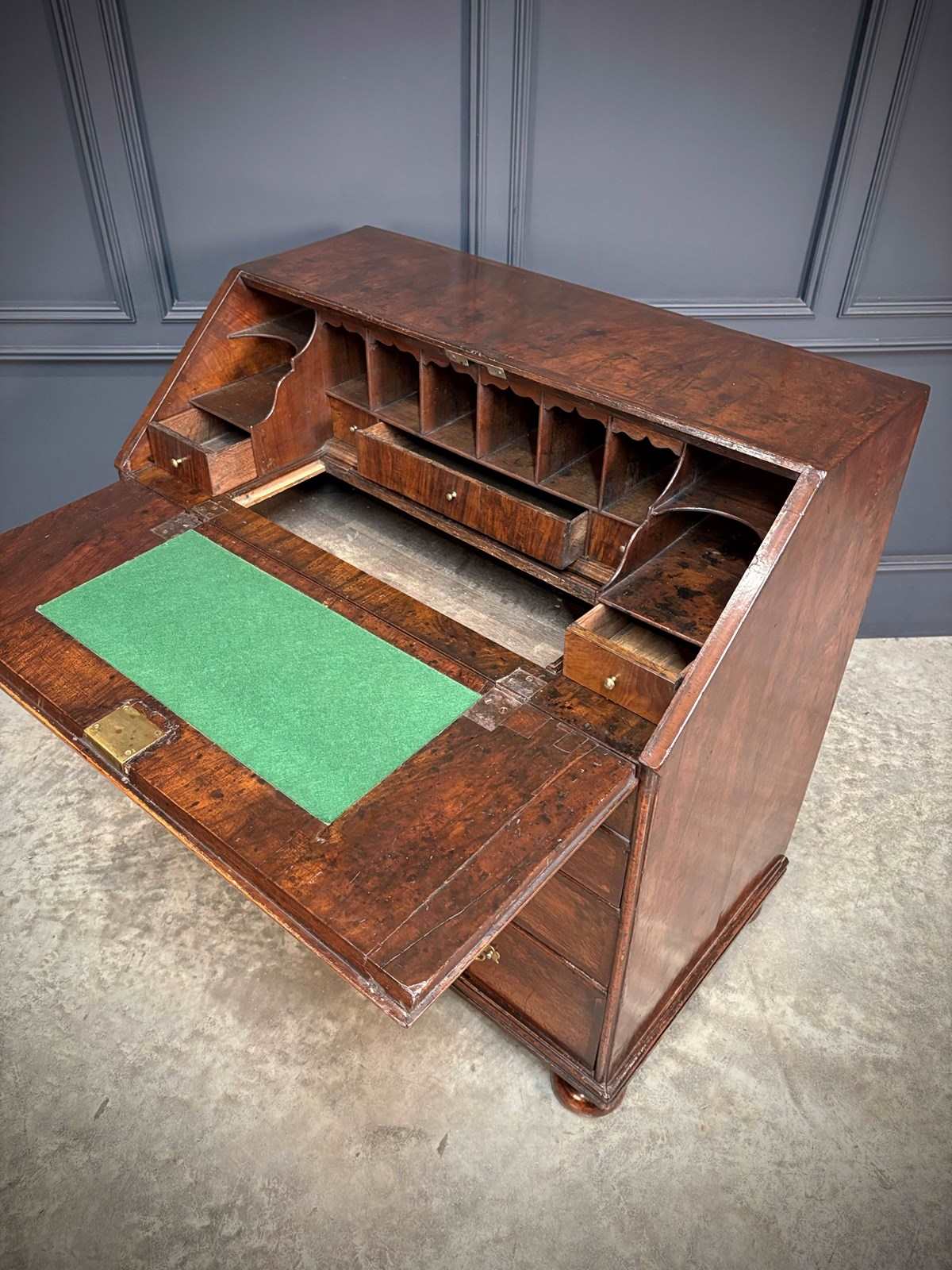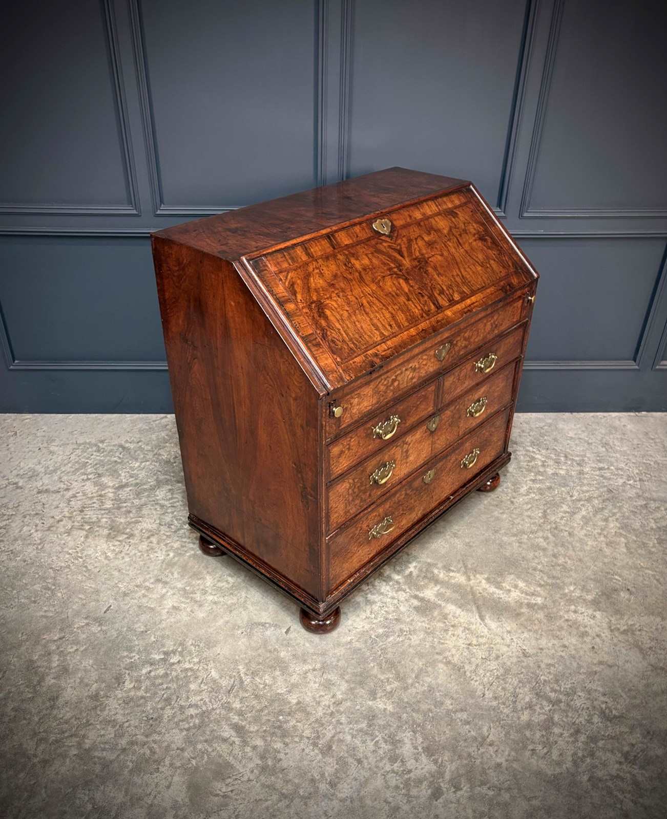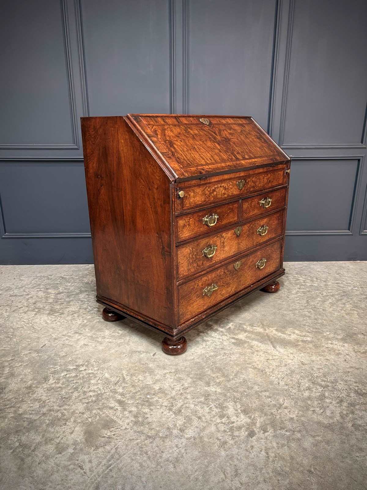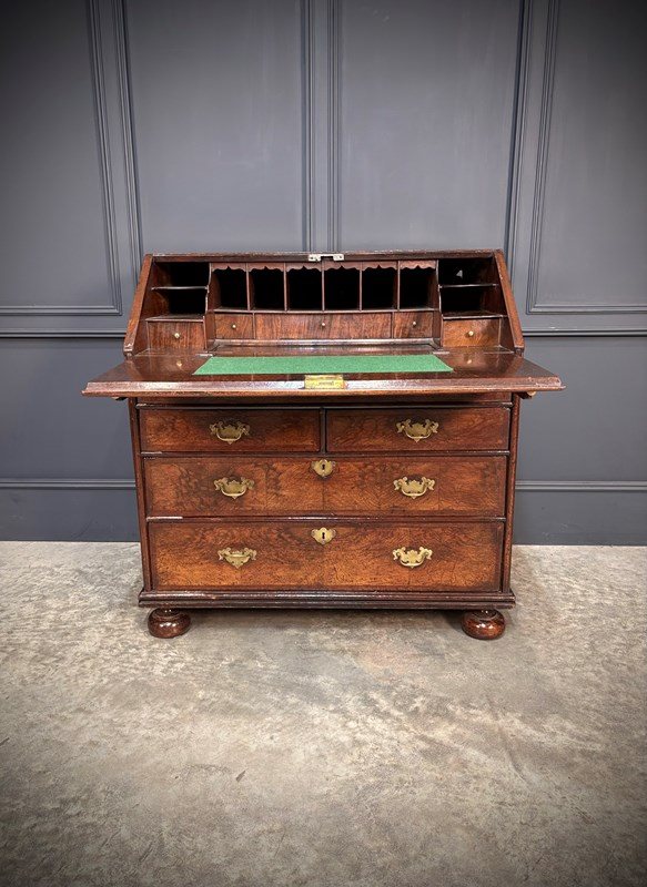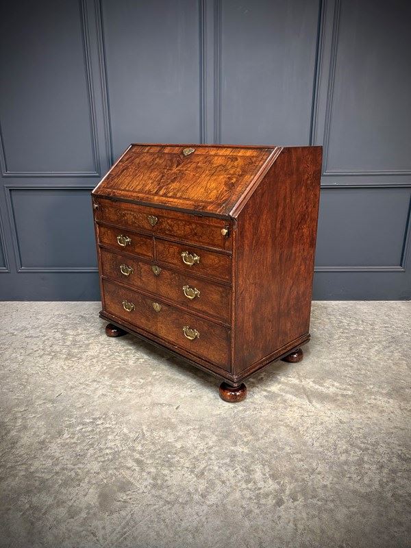 A fine early 18th century Queen Anne walnut bureau of excellent colour and figuring, dating to circa 1710.