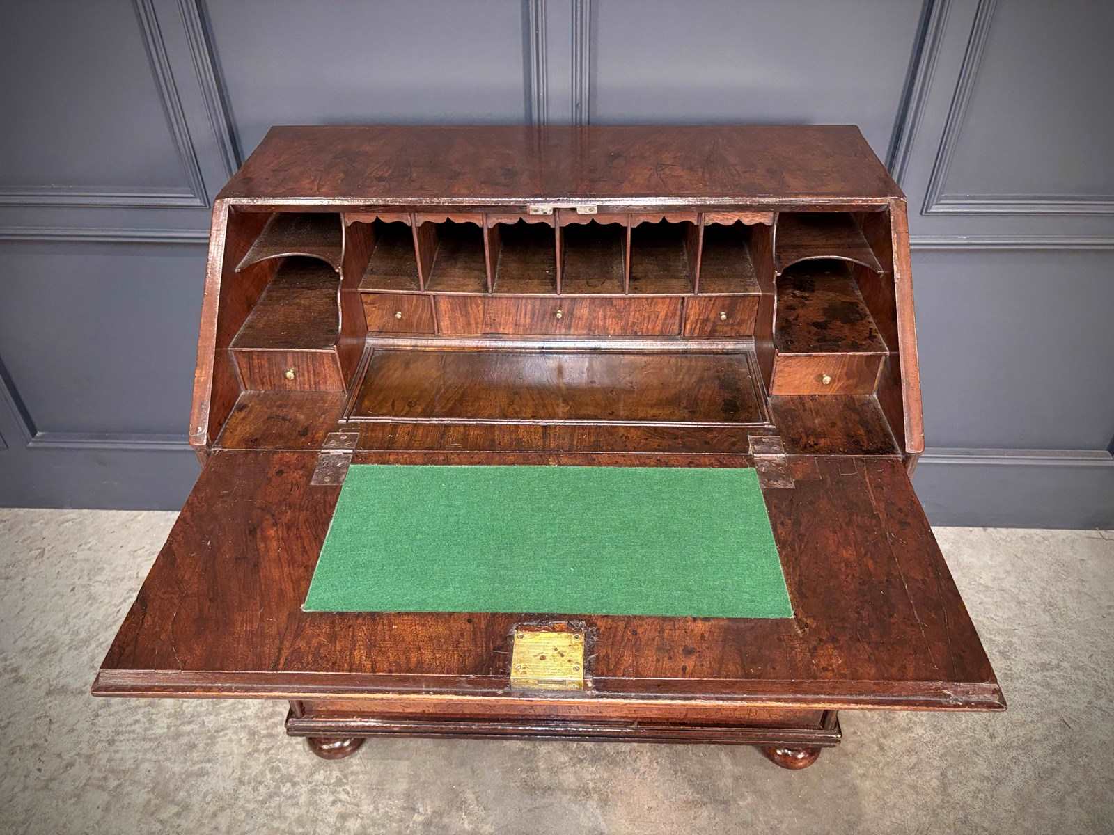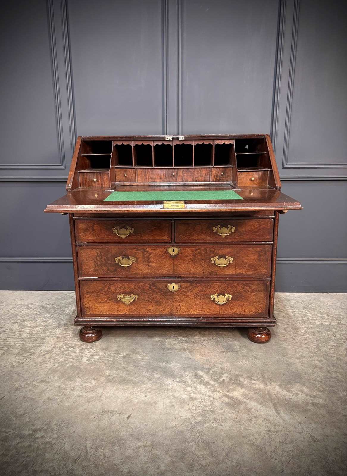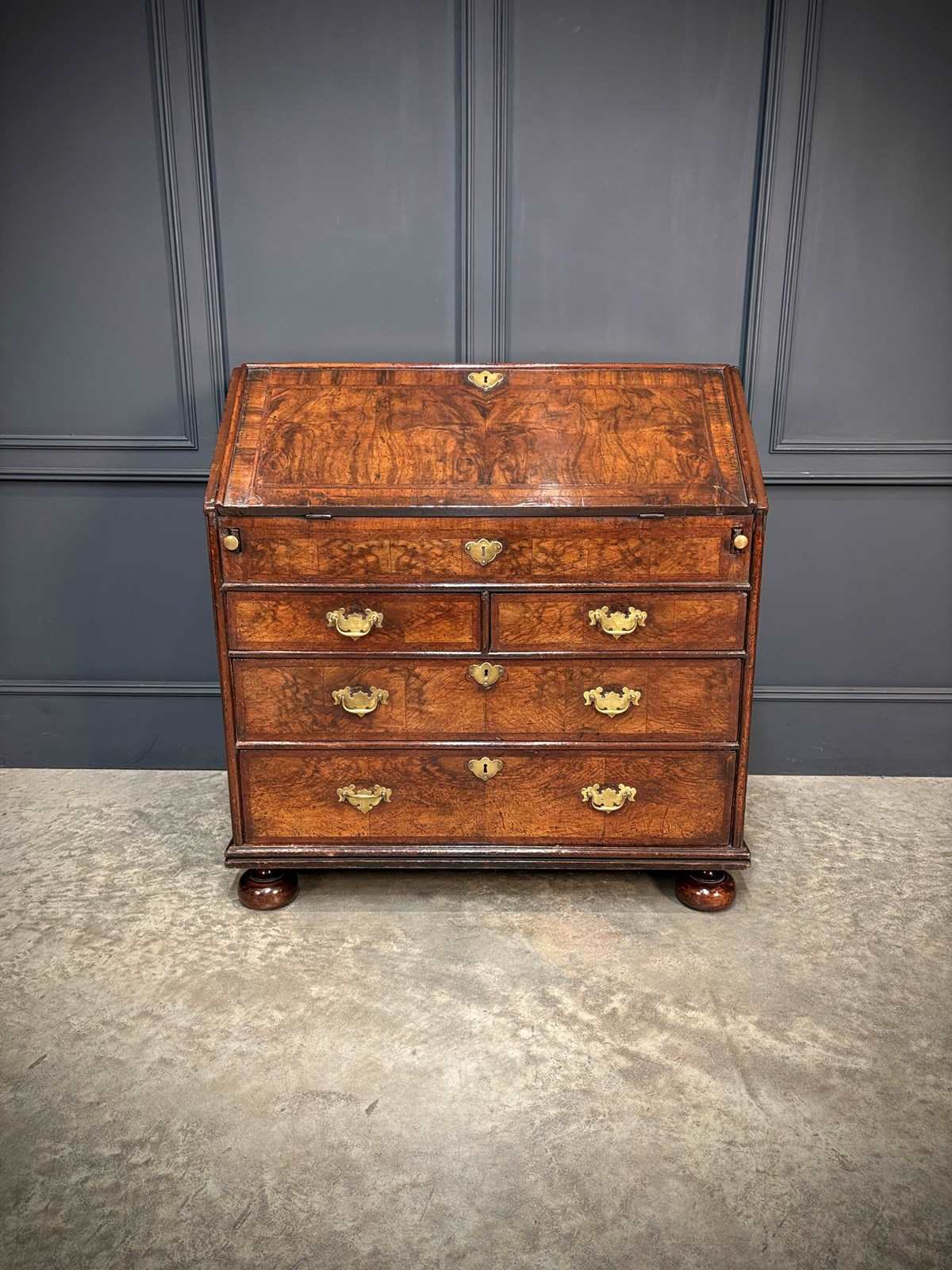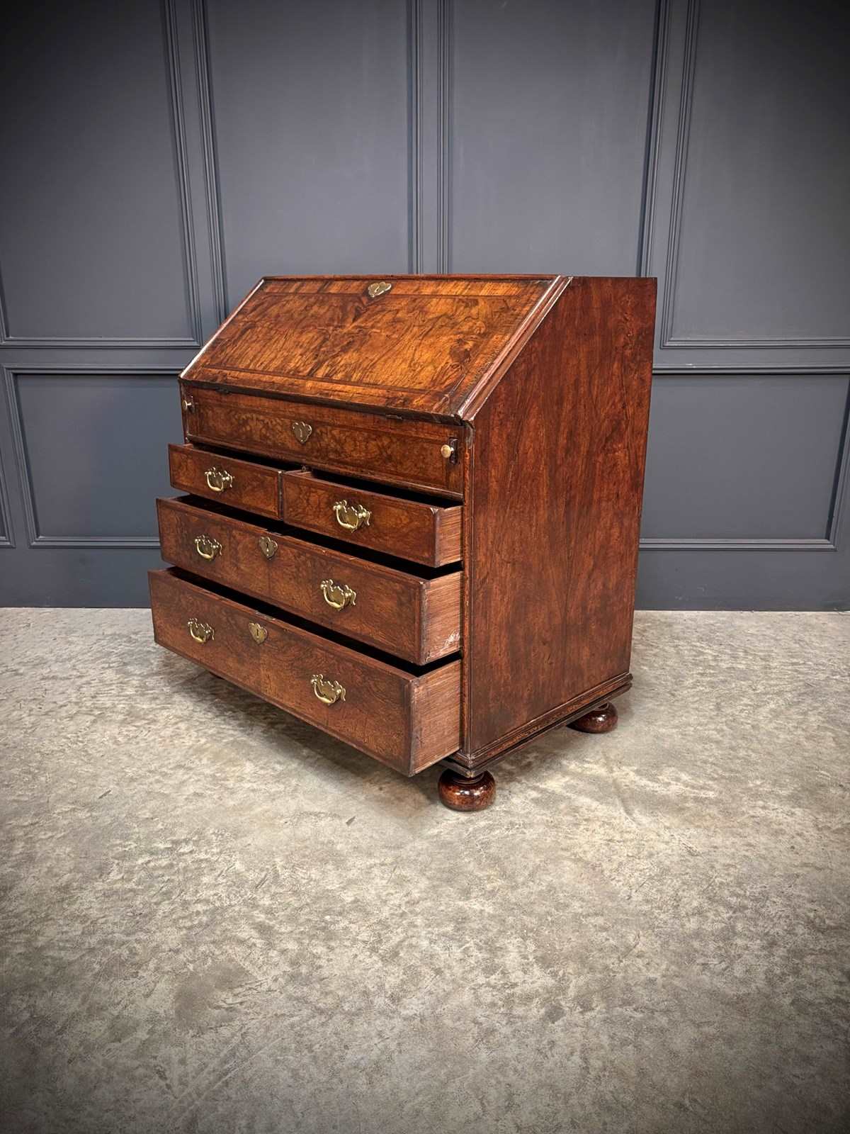 A fine early 18th century Queen Anne walnut bureau of excellent colour and figuring, dating to circa 1710.