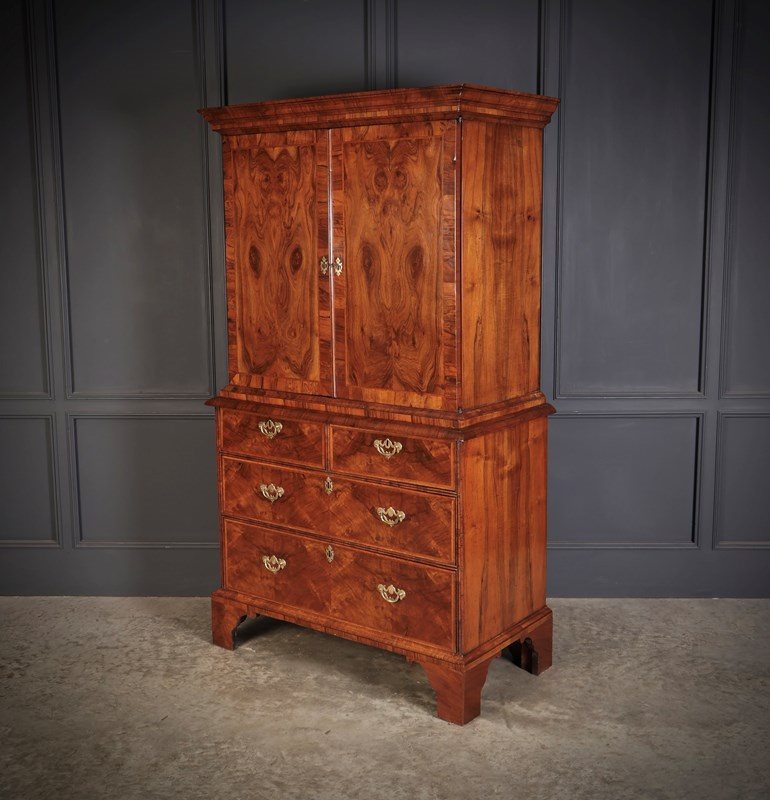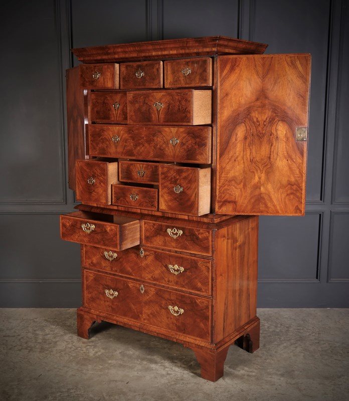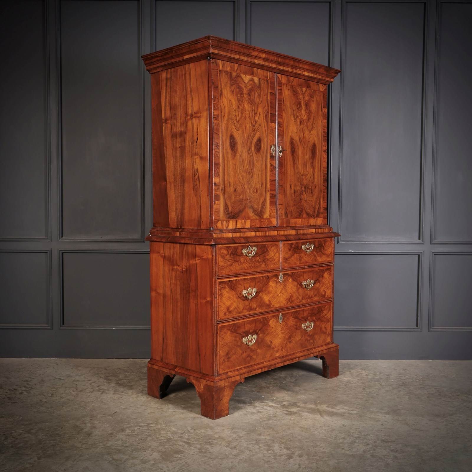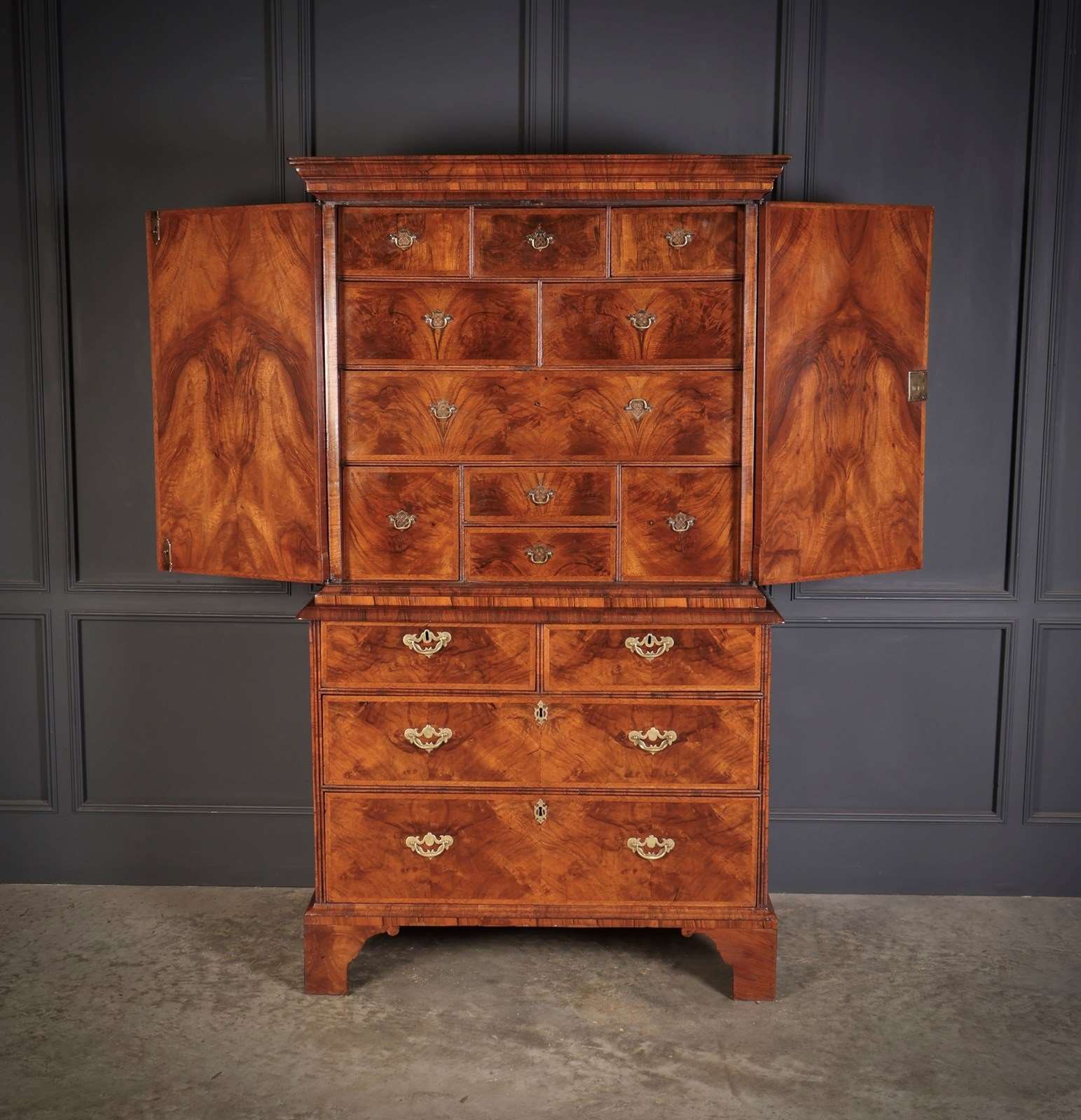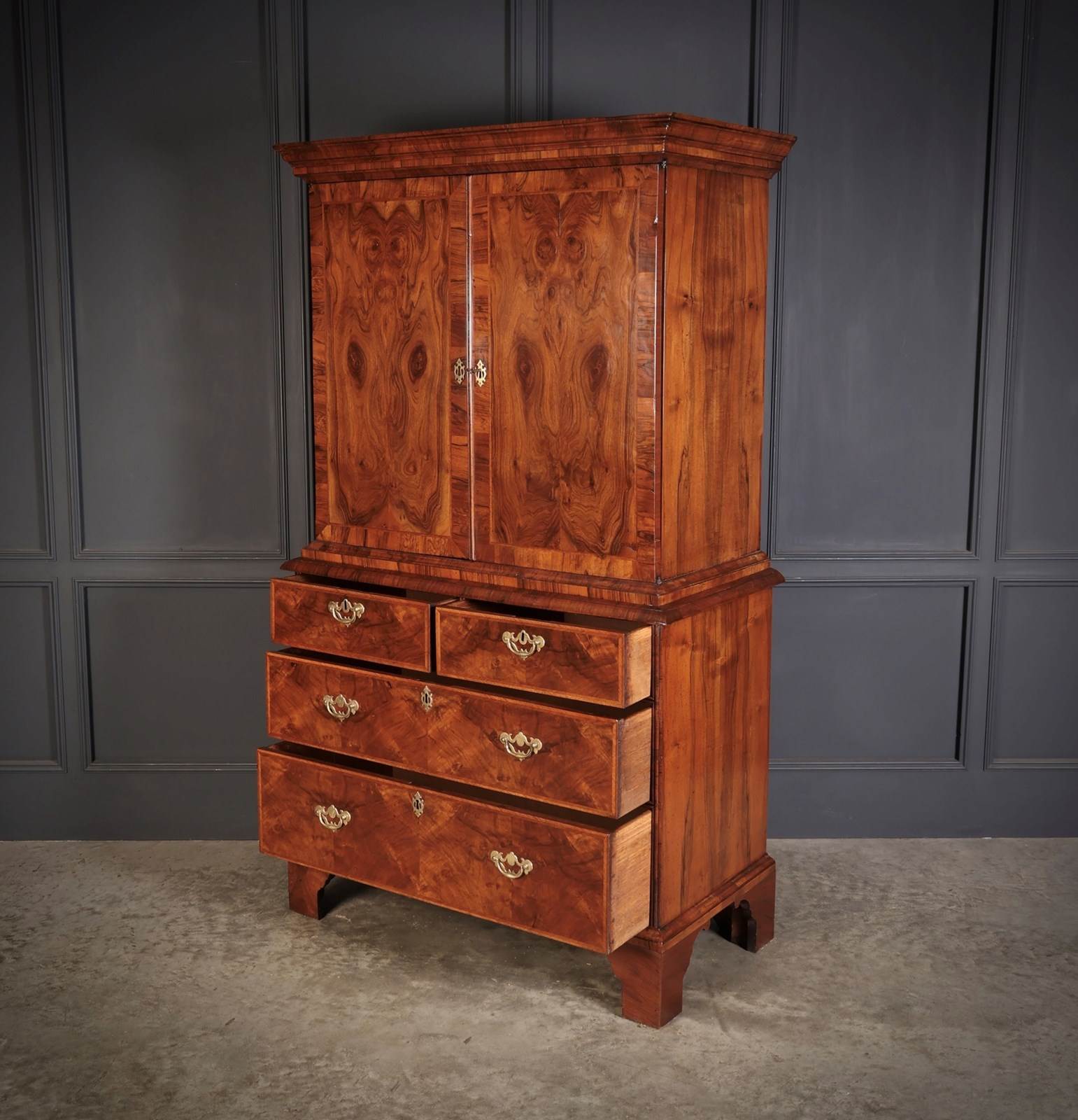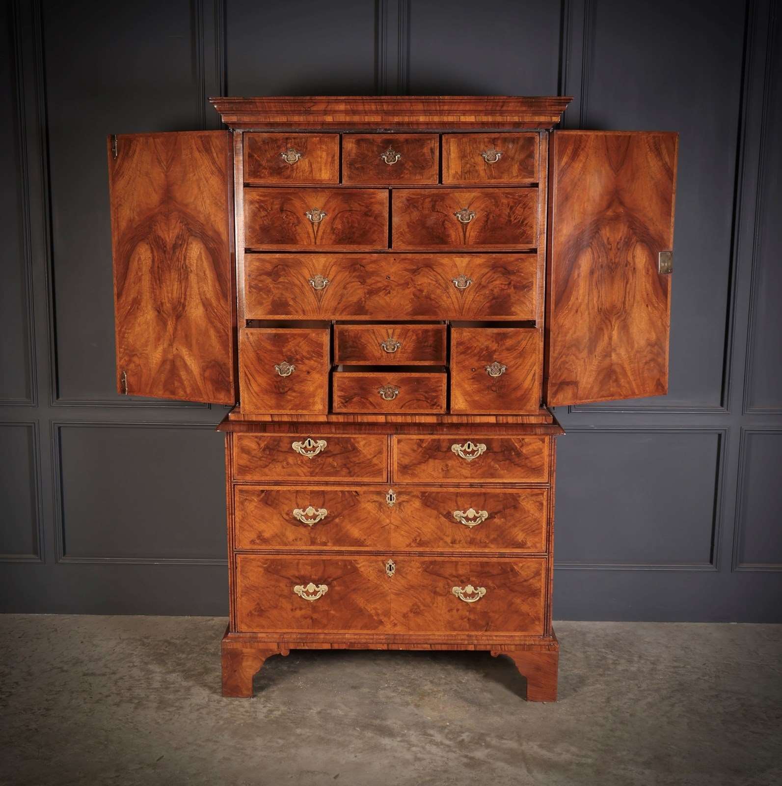 A superb Queen Anne period walnut cabinet on chest of excellent colour and grain.
