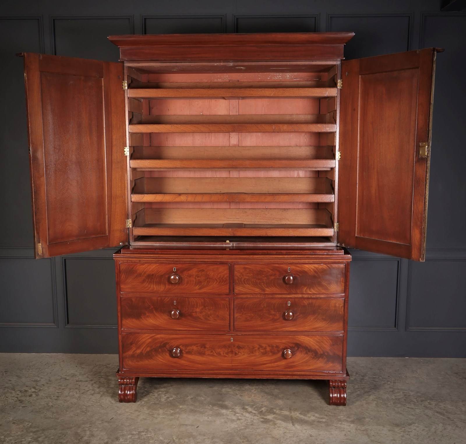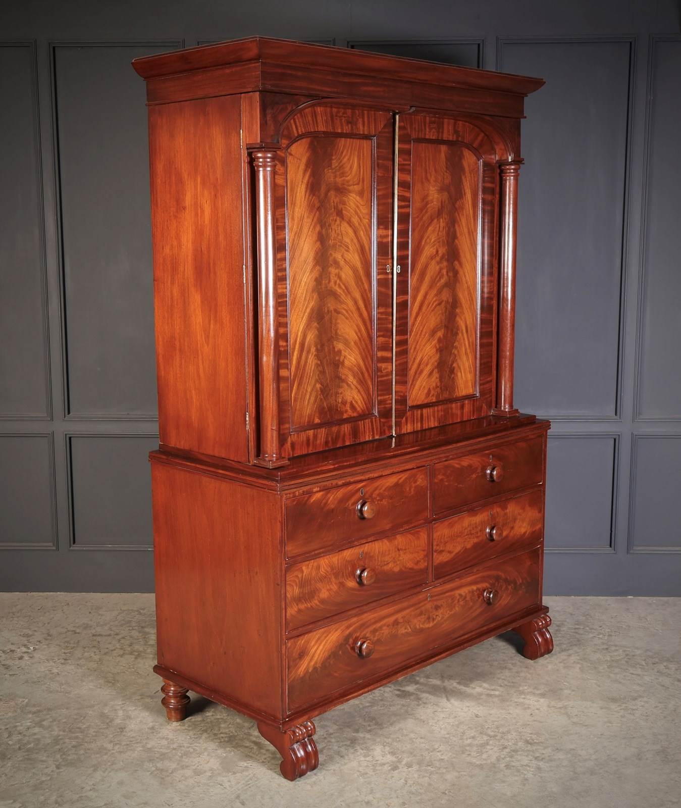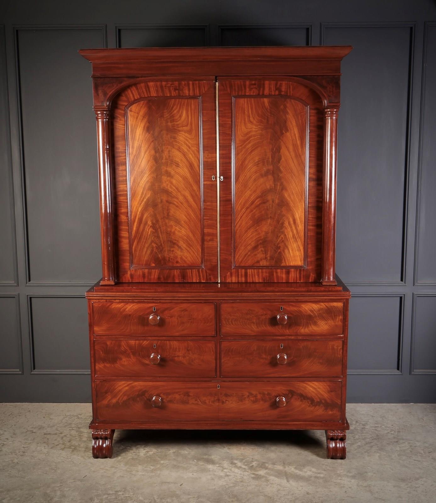 A fine early 19th-century Scottish mahogany linen press of excellent colour and figure, offered in very good condition.