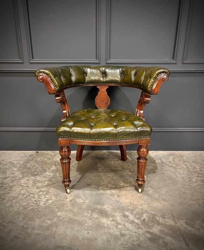 Victorian Mahogany & Green Leather Desk Chair