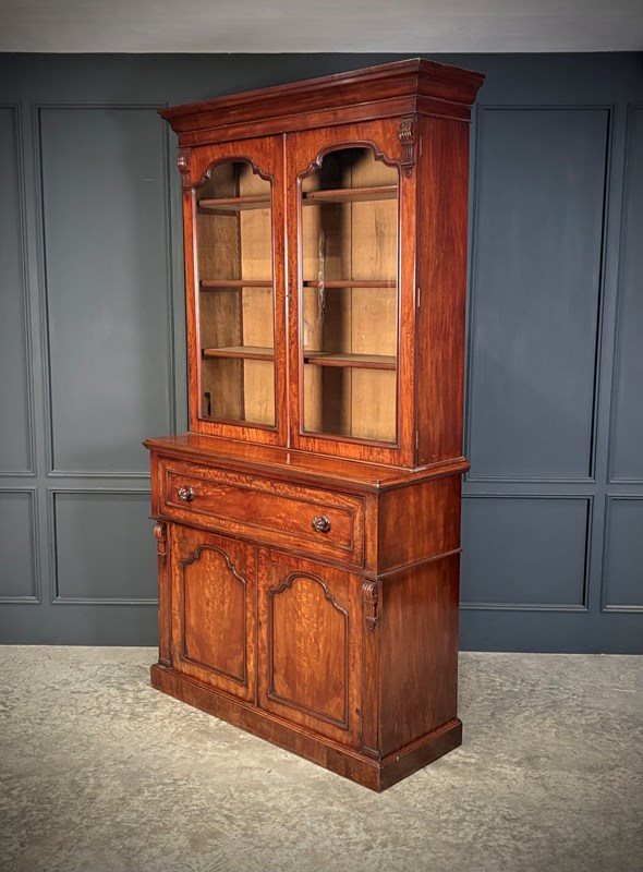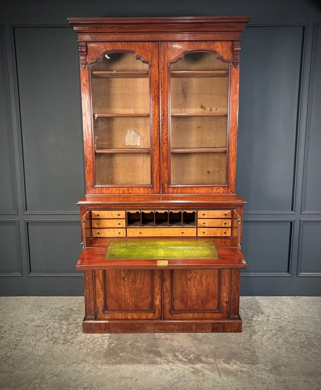 A handsome Victorian mahogany secretaire bookcase in very good condition, presented in two sections for ease of transport.