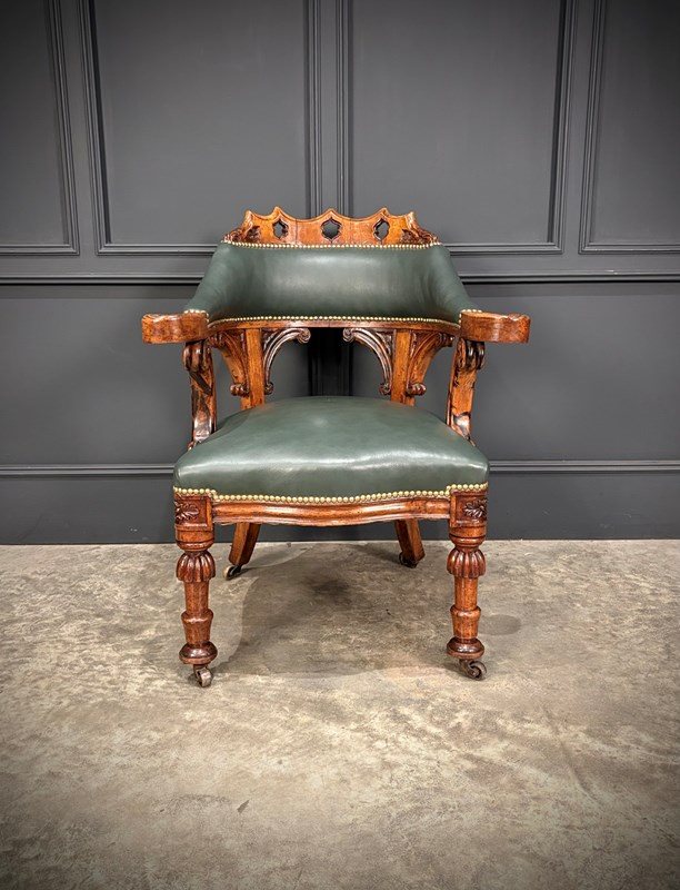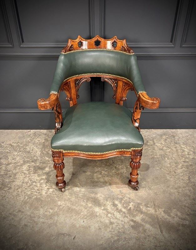 Victorian Walnut & Leather Desk Chair