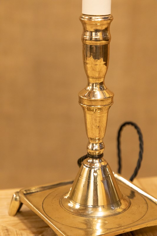 A fantastic early 18th century cast brass candlestick converted to an elegant table lamp. Fully rewired and PAT tested.