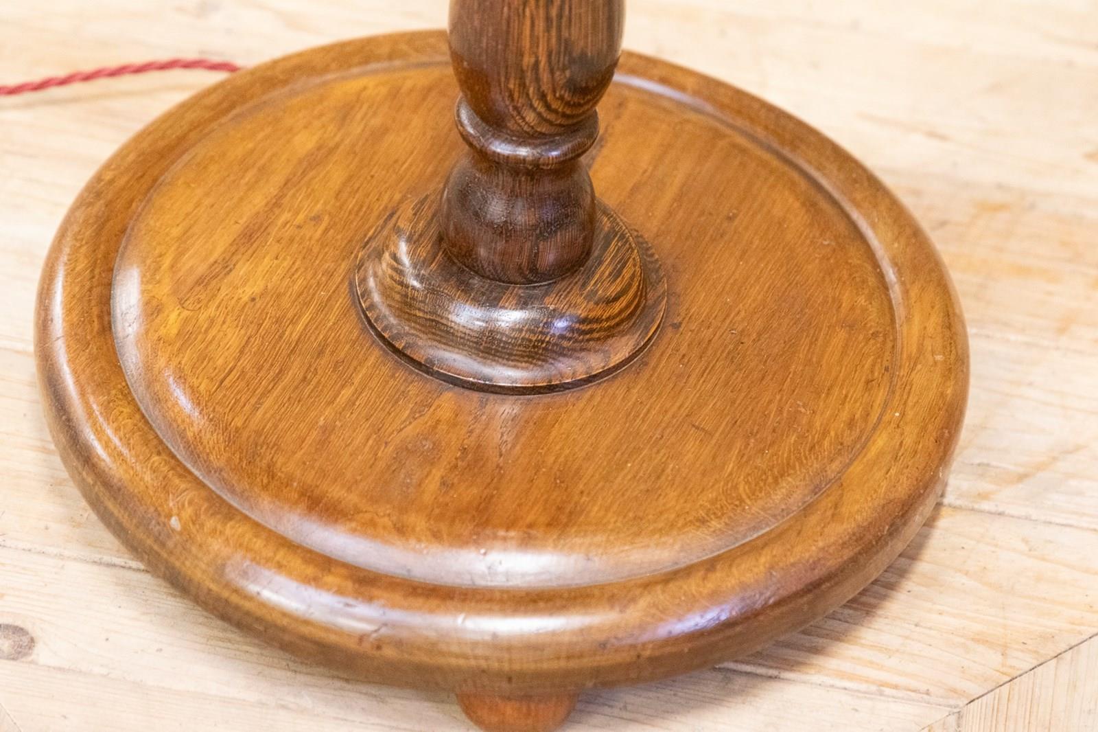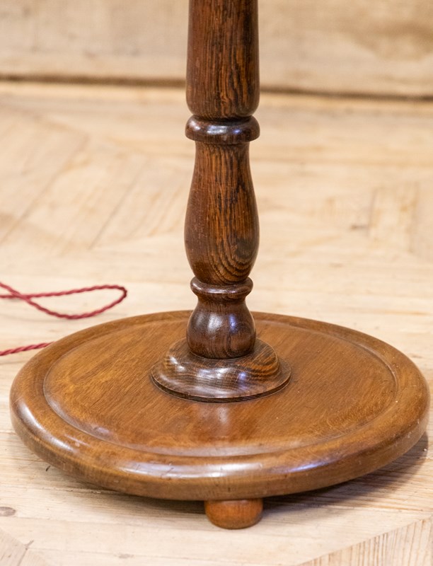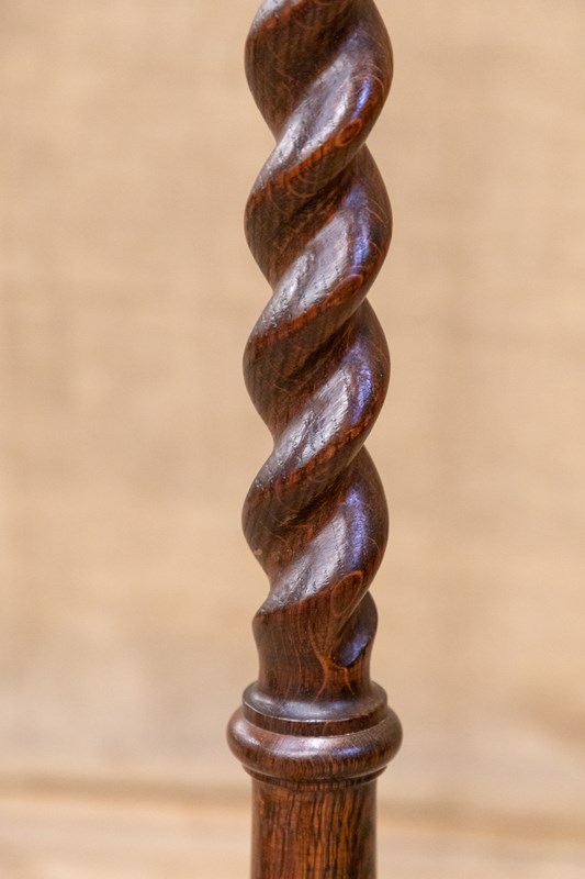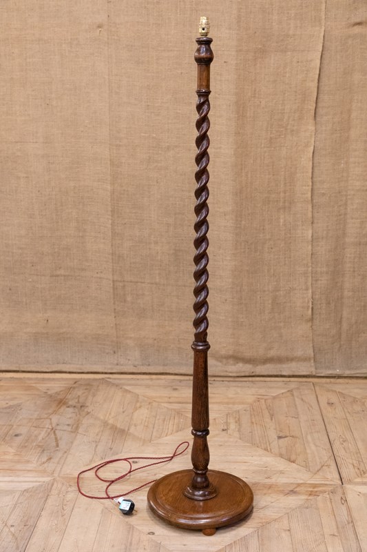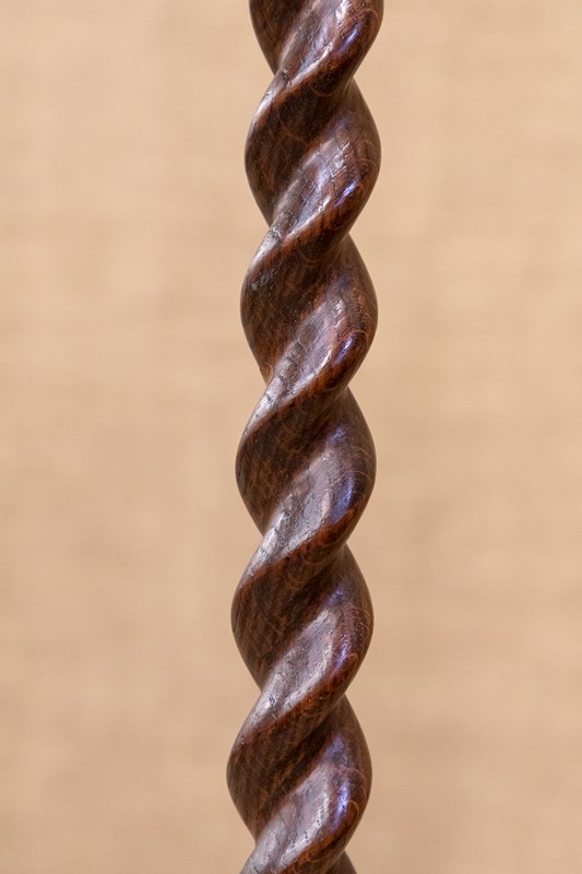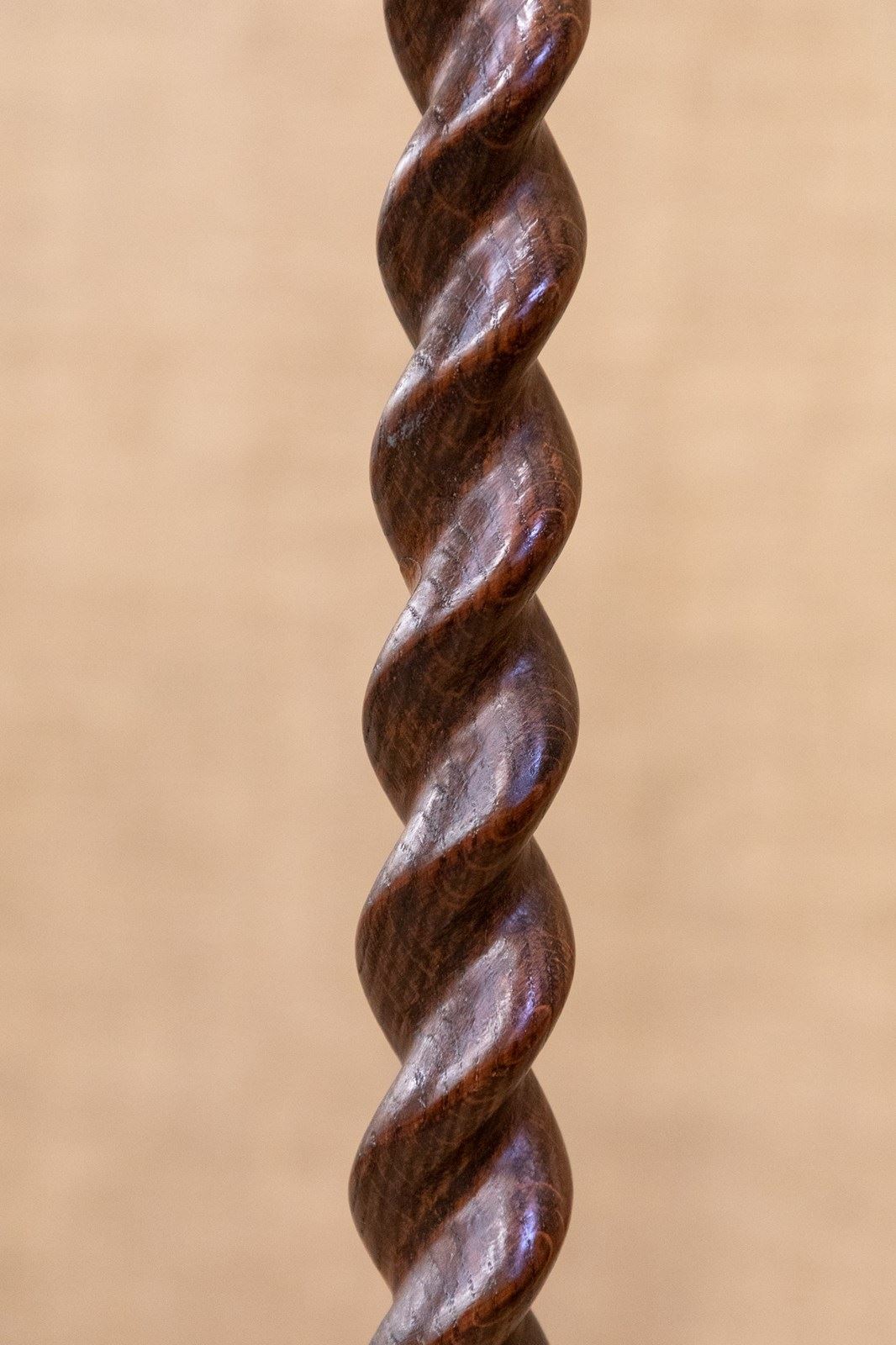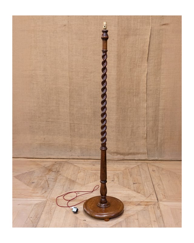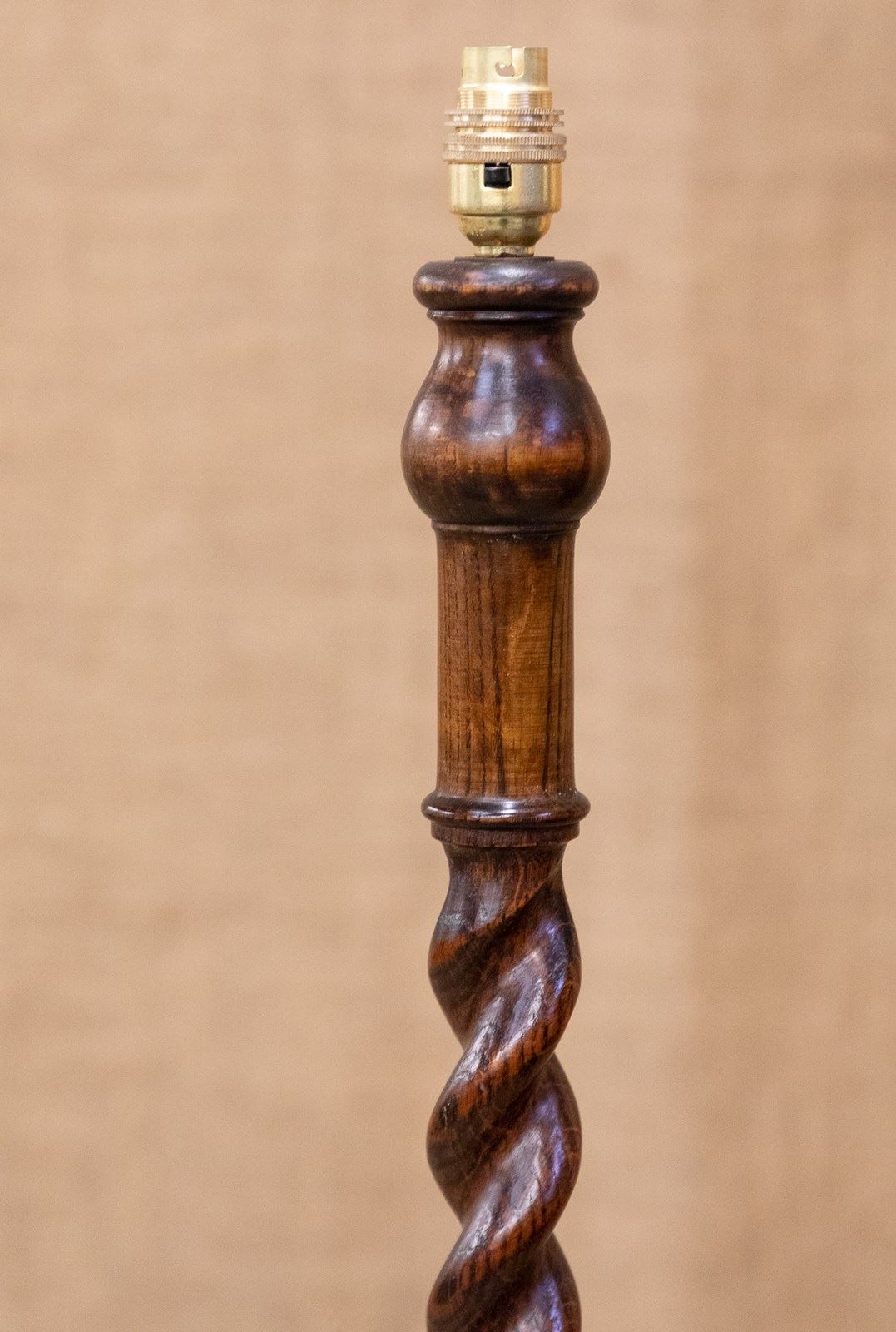 A stunning dark oak standard lamp with central column turned and carved wit ha fabulous barley twist. Fully rewired and PAT tested.