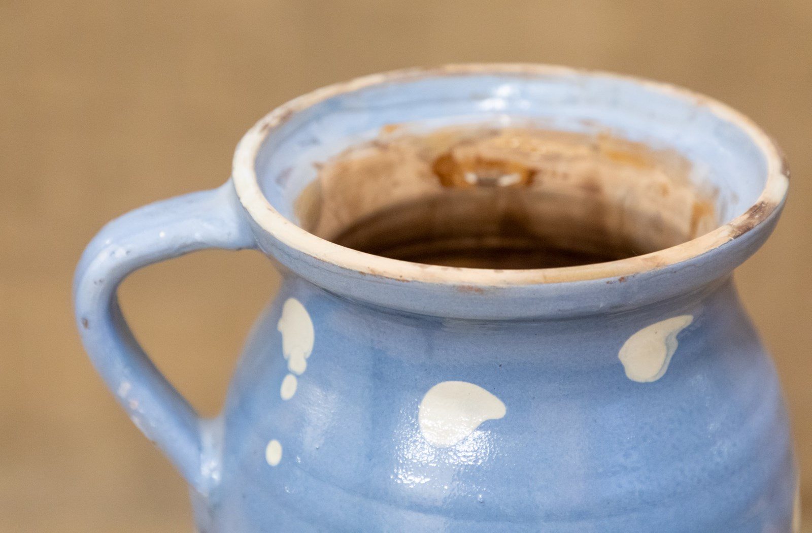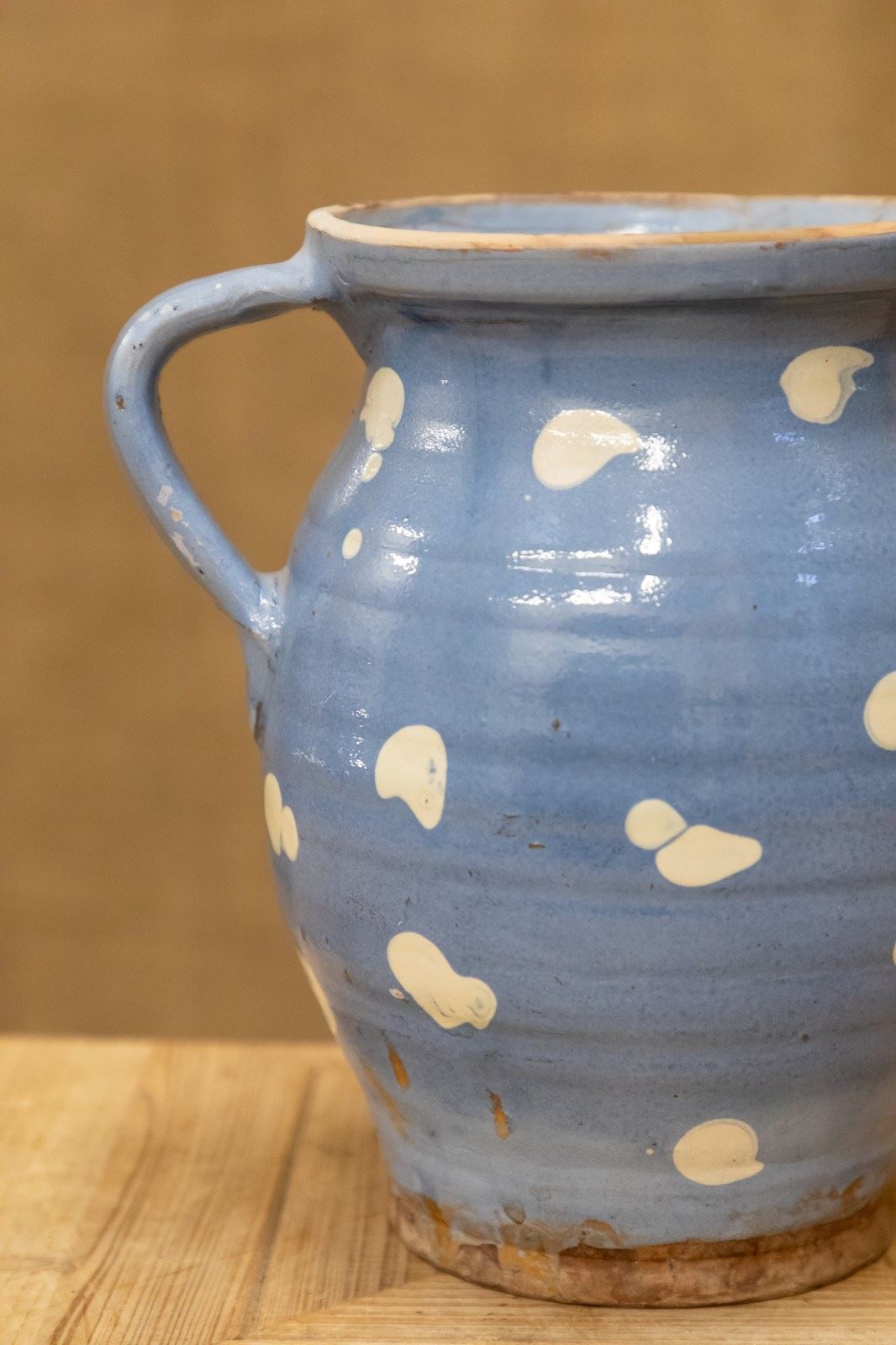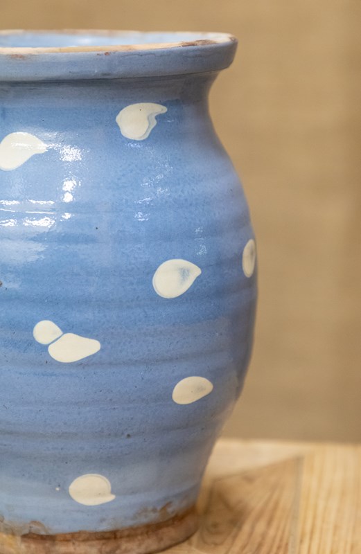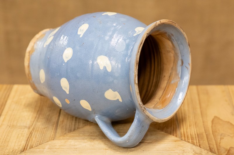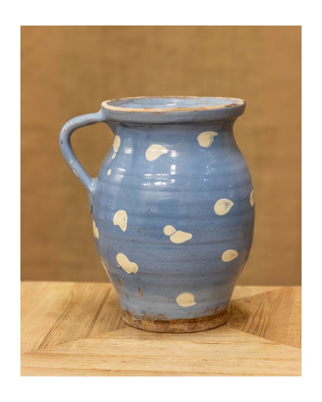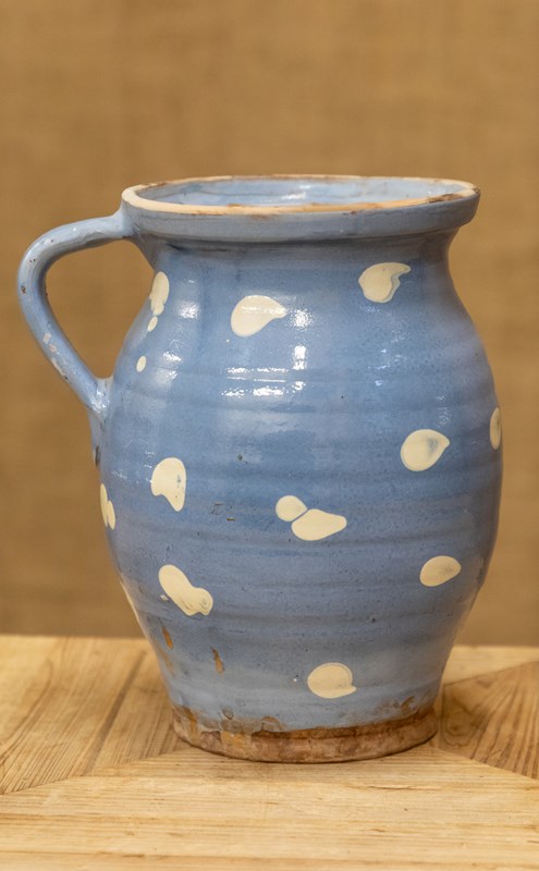 A fantastic Hungarian glazed spotted Jug, in blue with cream spots.