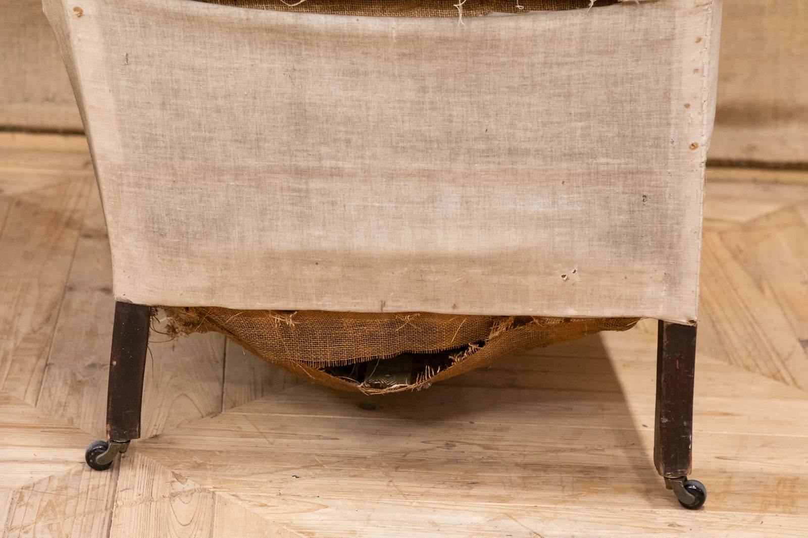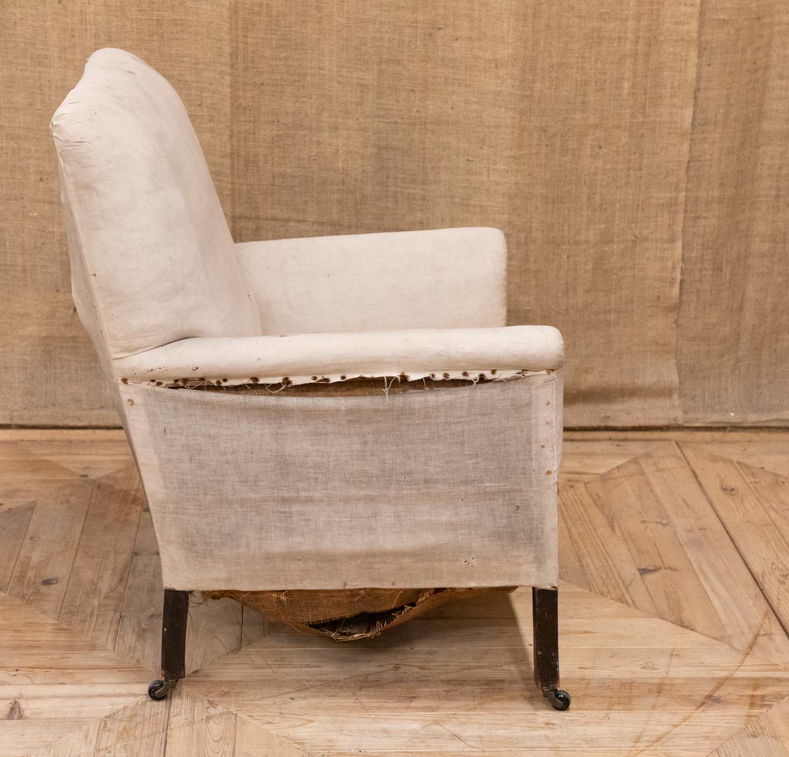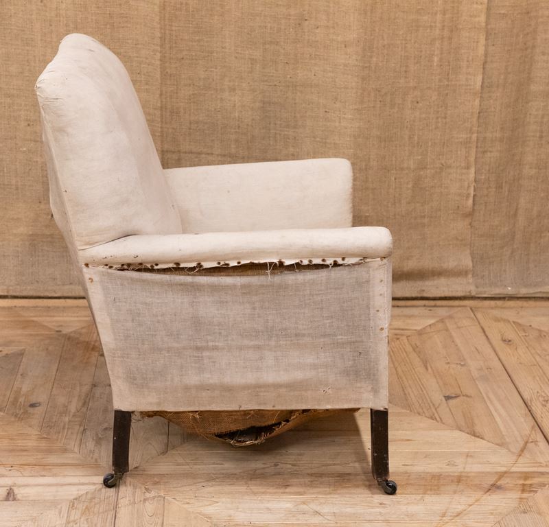 A lovely early 20th century country house tub chair. Of traditional square tub shape raised on square legs with the original castors. Originally made for Carlton Towers, Yorkshire the chair is in as found country house condition and although the frame is solid the chair would benefit from re upholstery.
