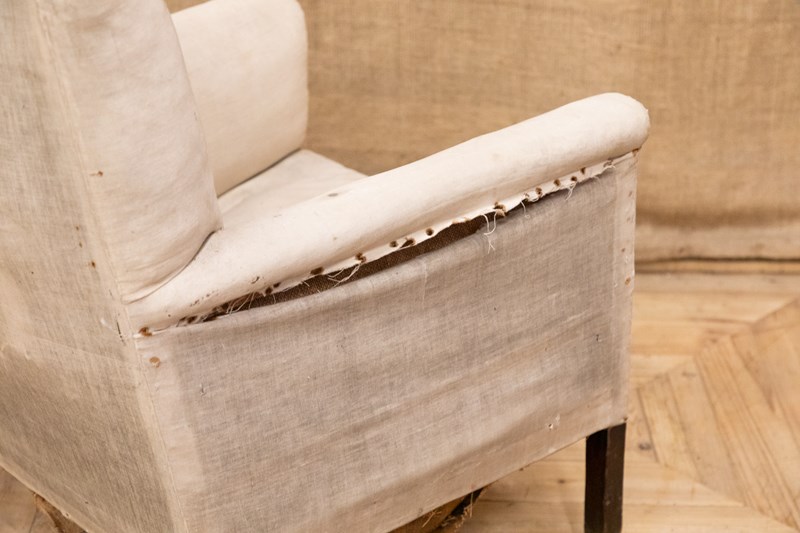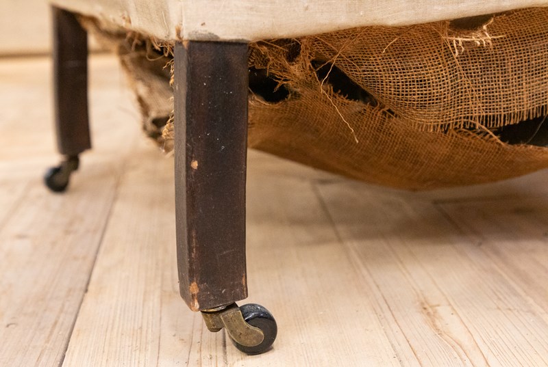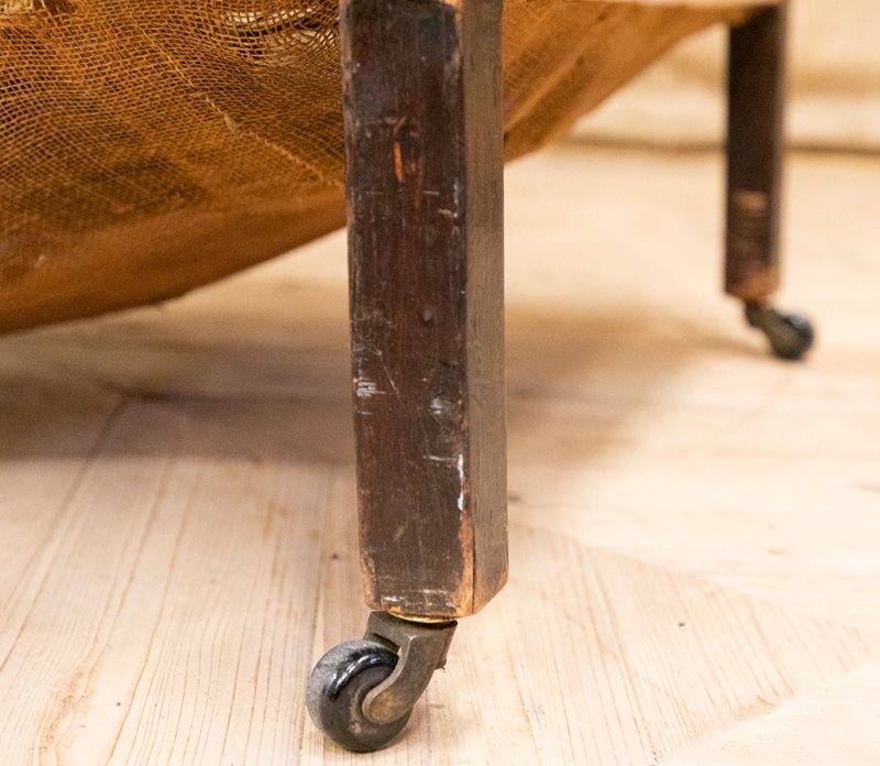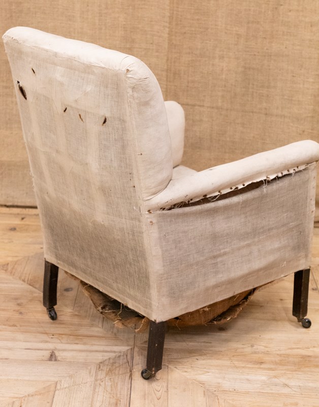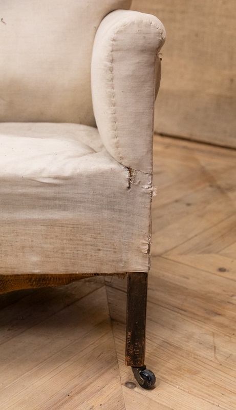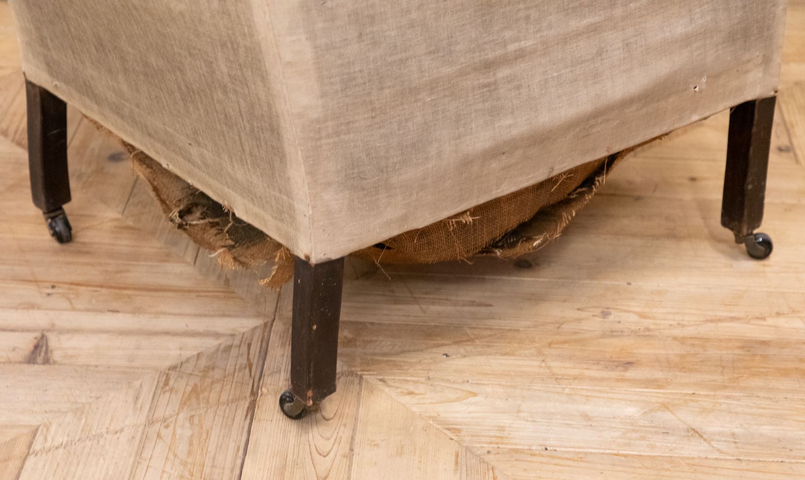 A lovely early 20th century country house tub chair. Of traditional square tub shape raised on square legs with the original castors. Originally made for Carlton Towers, Yorkshire the chair is in as found country house condition and although the frame is solid the chair would benefit from re upholstery.