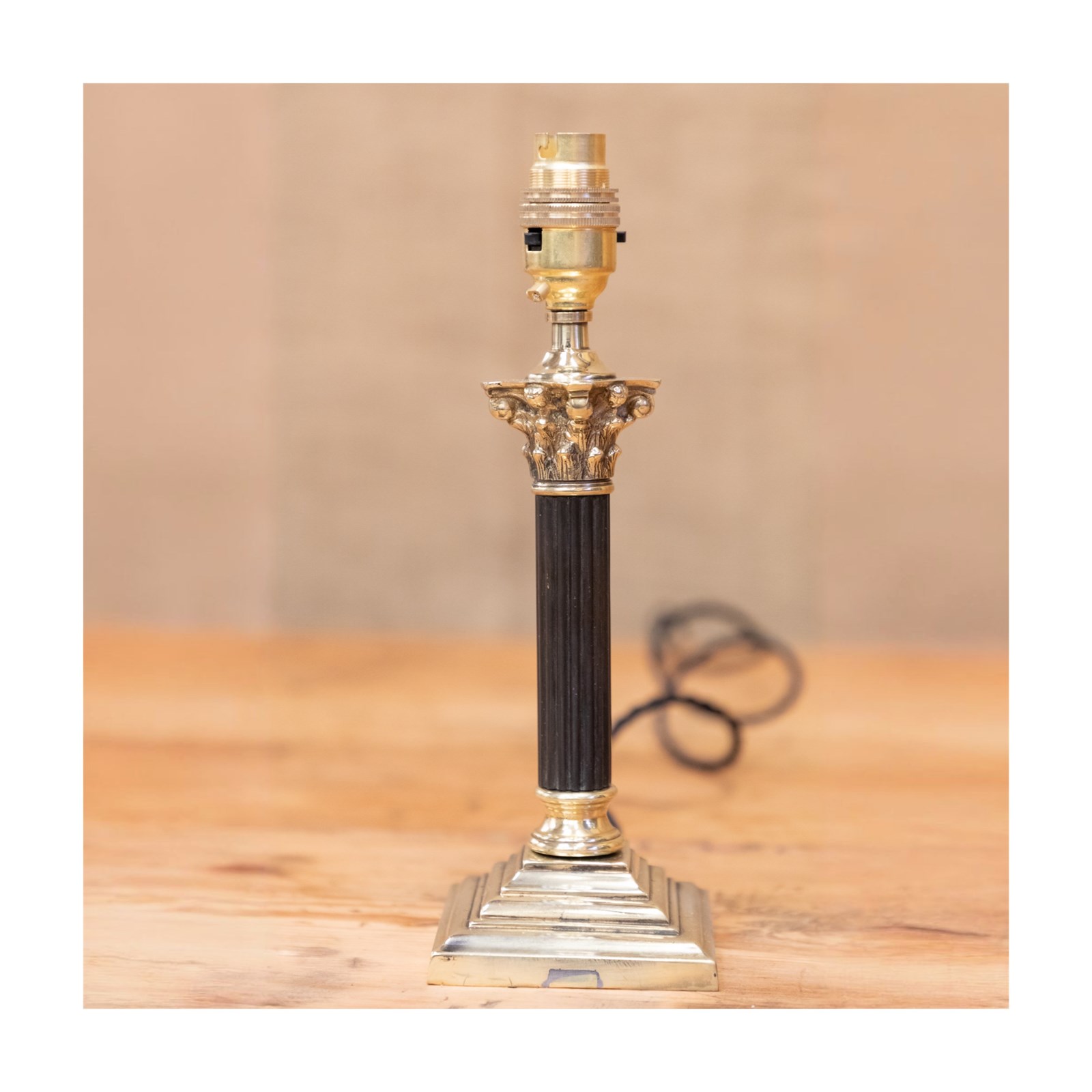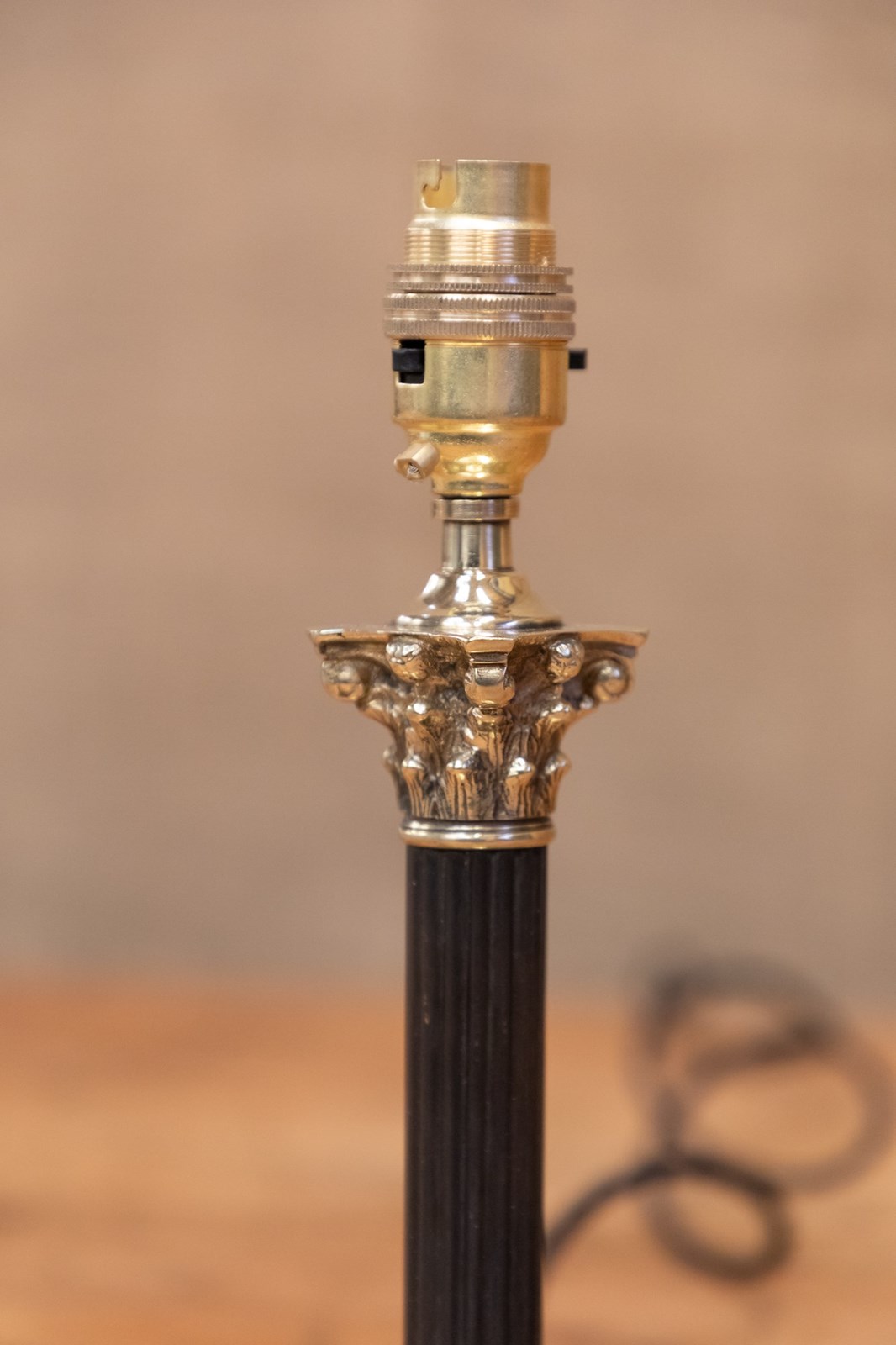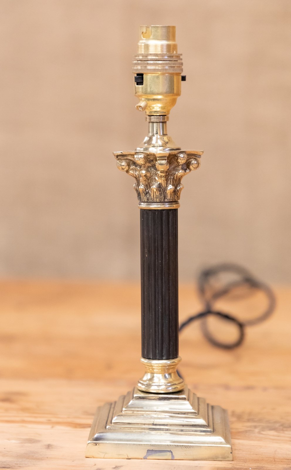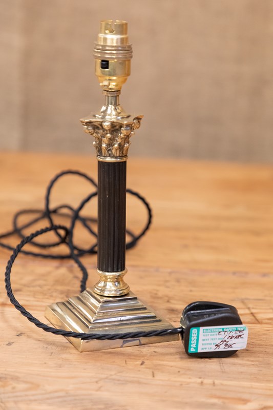 Ebony & Brass Corinthian Column Table Lamp