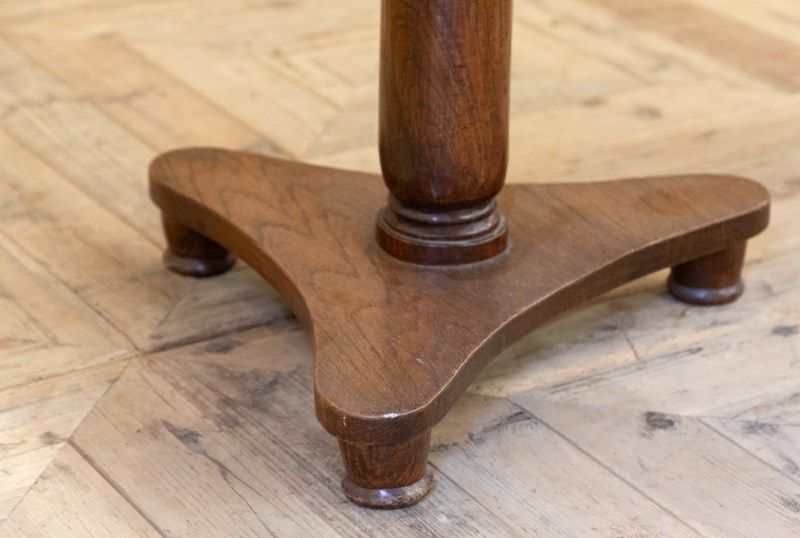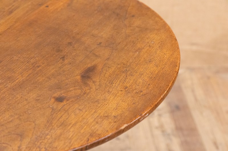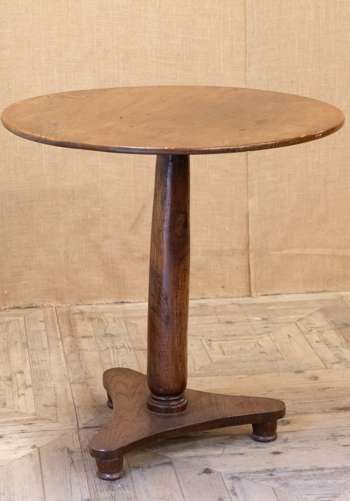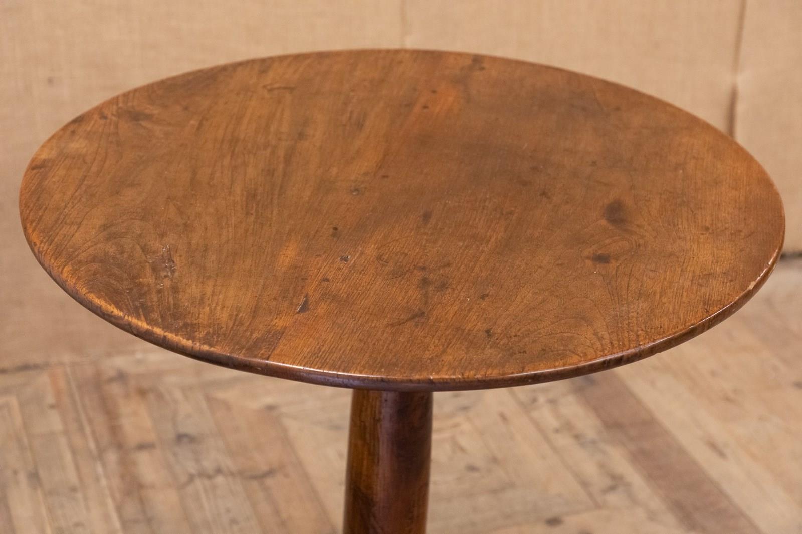 A stunning elm country table with a solid two plank top and original dowelled fixings. Supported on a substantial solid elm column and triform base with turned feet. An ideal side, lamp or centre table.