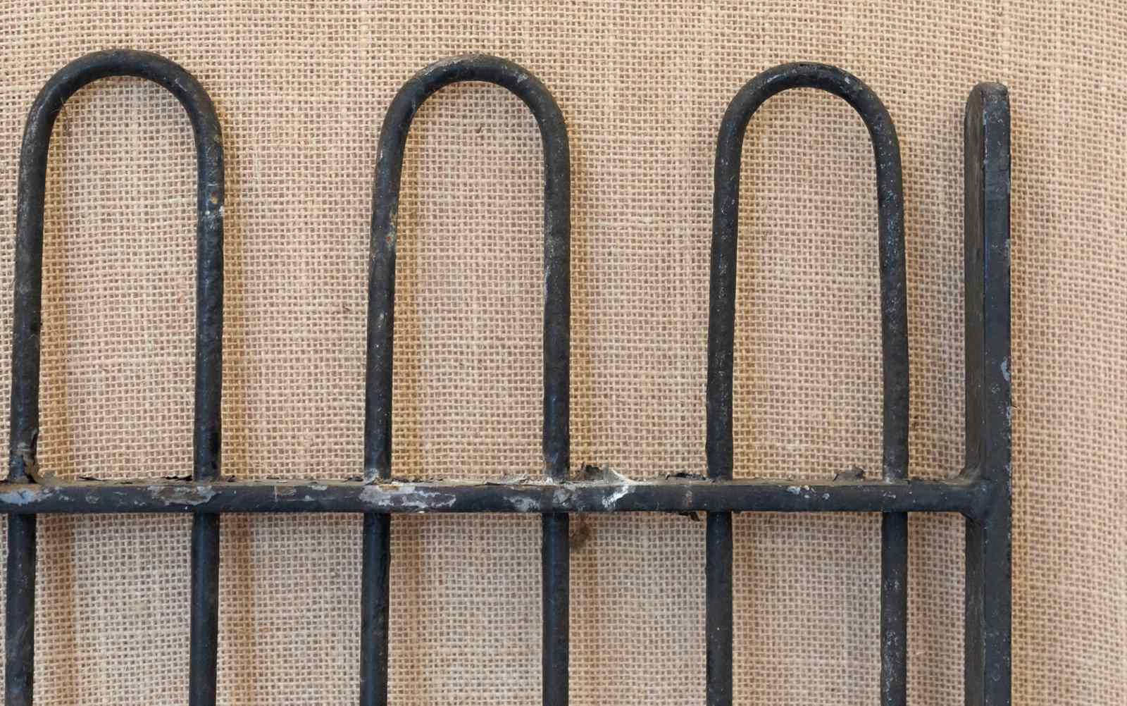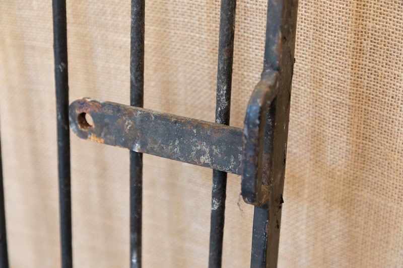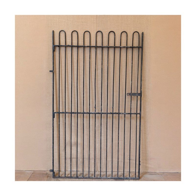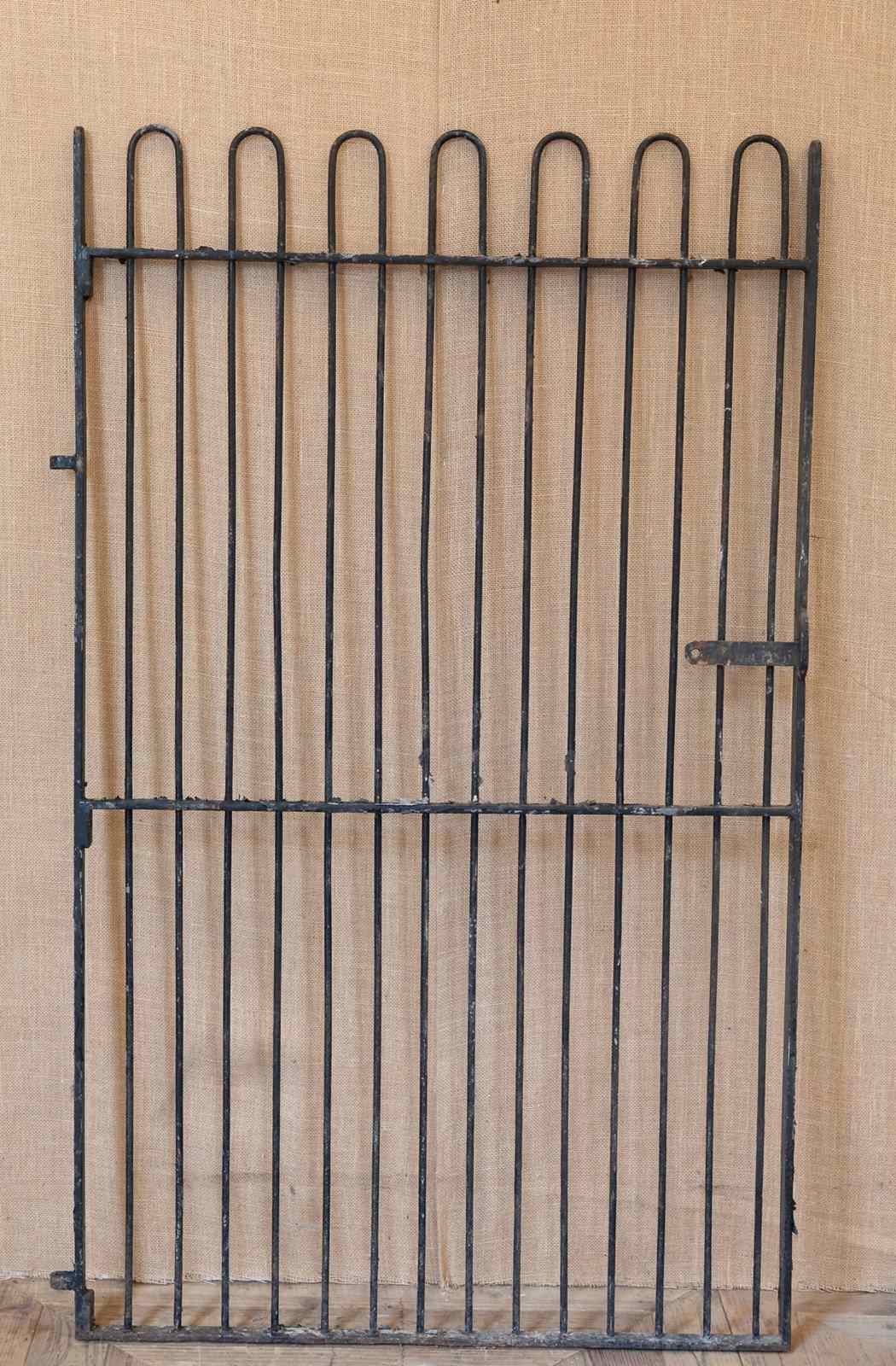 A fabulous mid 19th century iron kennel gate originally from a hunt kennels. Of traditional form with narrow stiles and hooped tops.