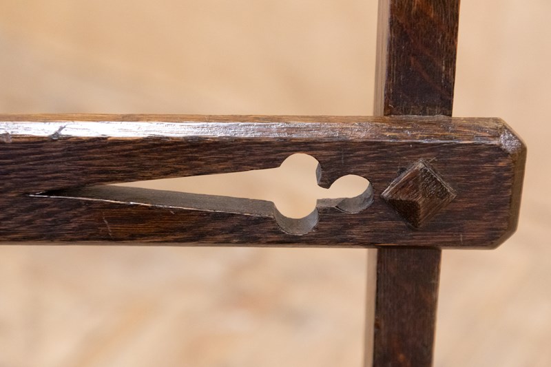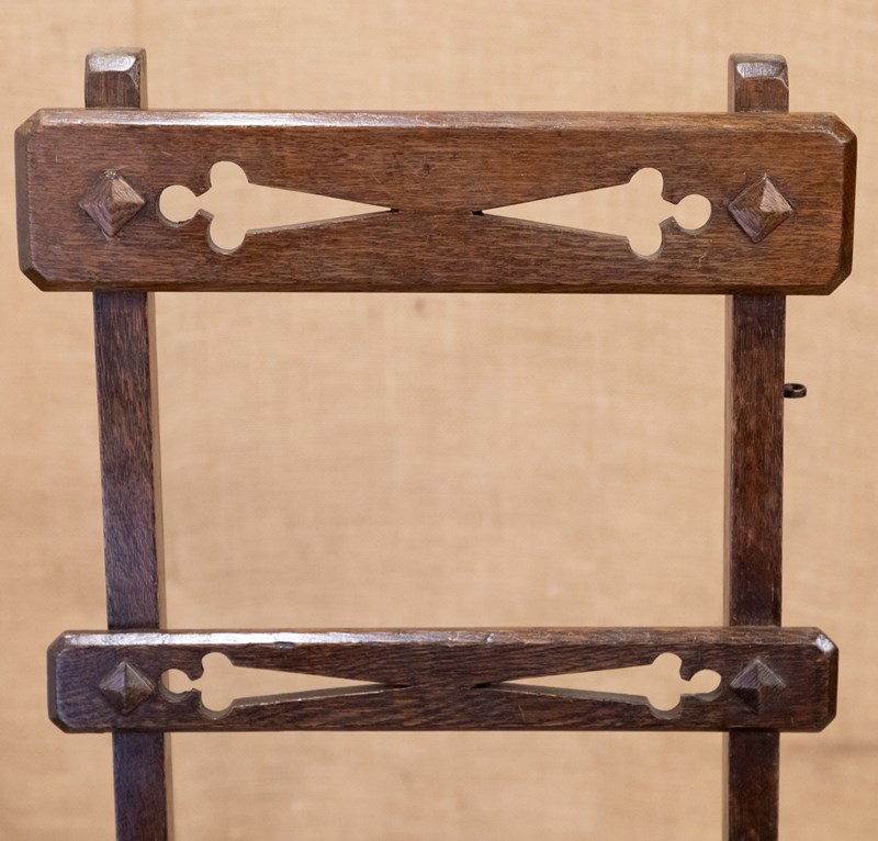 A fantastic set of metamorphic library steps in the form of a gothic revival side chair. Constructed entirely in oak with simple gothic detailing.