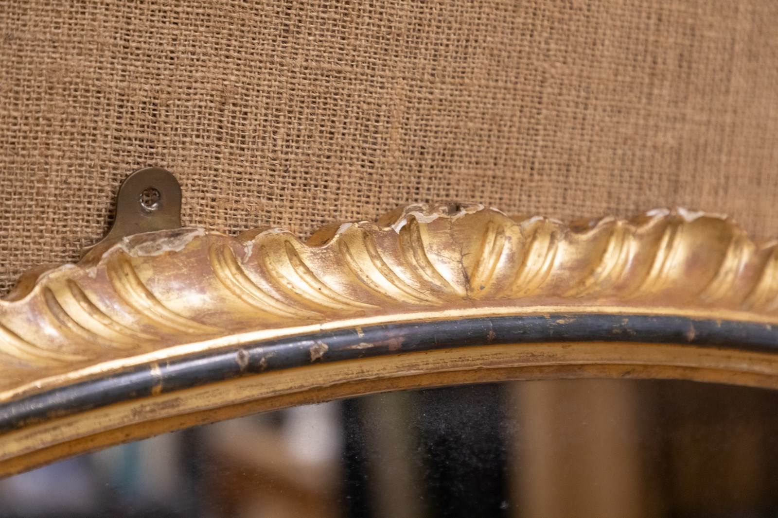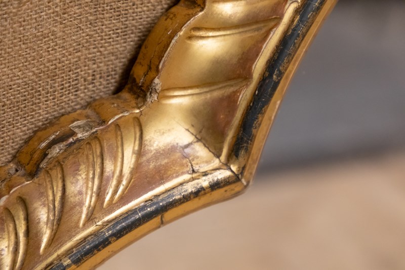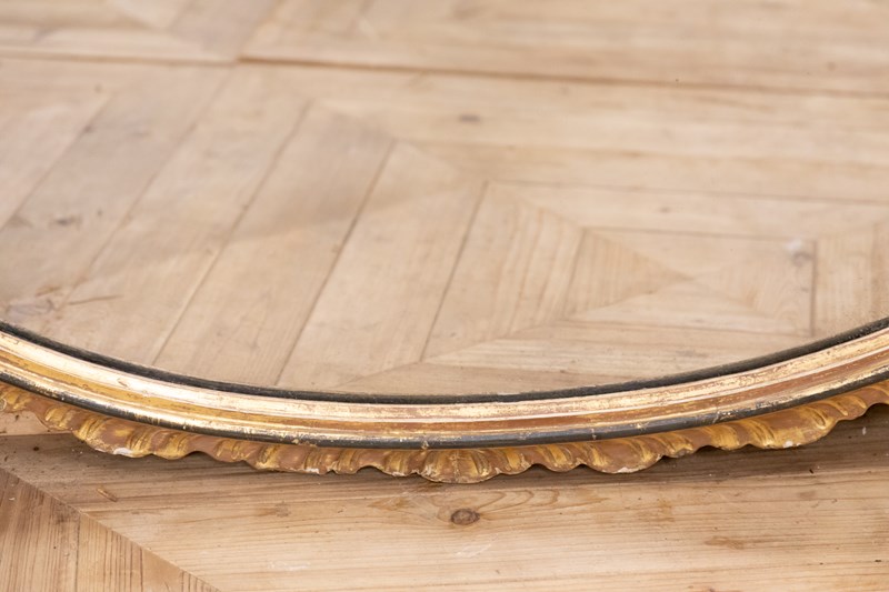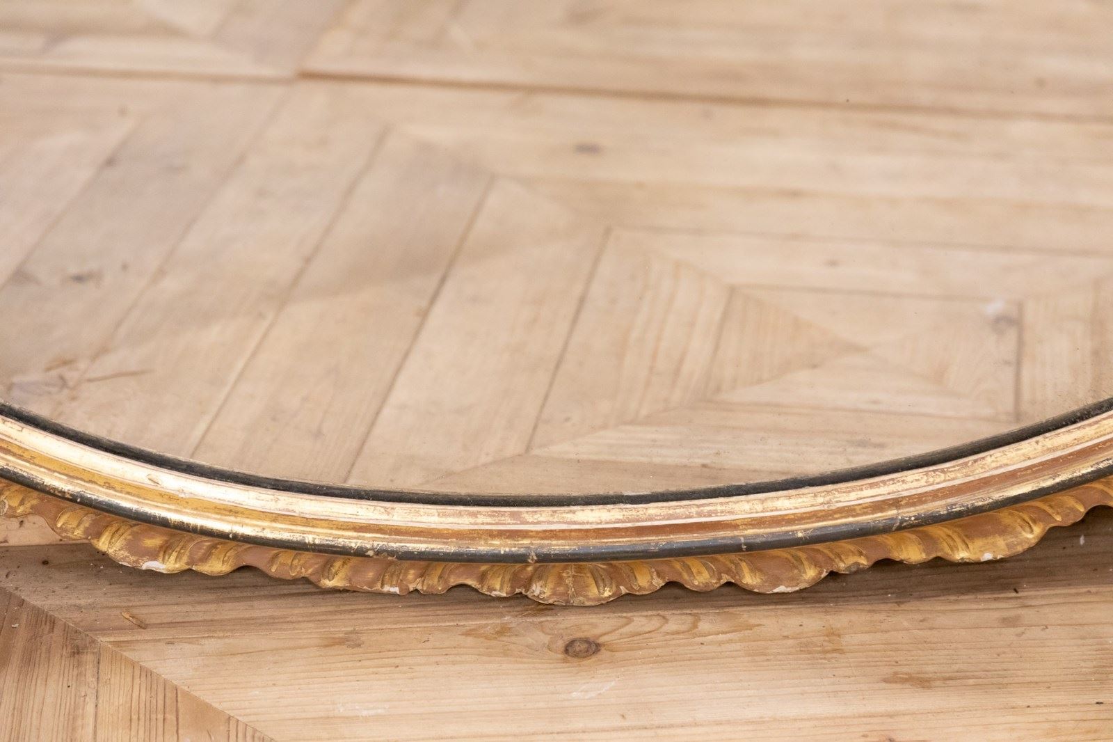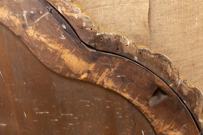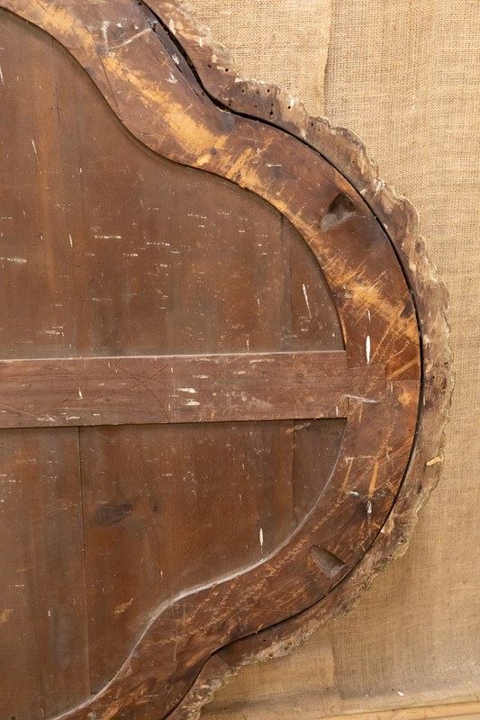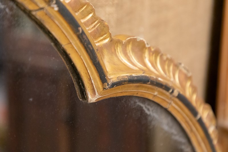 A superb late 18th or early 19th century English country house giltwood mirror in the Gothic revival taste. The mirror is of quatrefoil shape and retains the original mirror plate that has minor foxing to areas and also the original panelled backboards. Retaining all the original gilding the frame has a wonderful colour and patina, carved with a simple rococo scrollwork repeating pattern. In untouched as found country house condition. Can be hung either portrait or landscape.