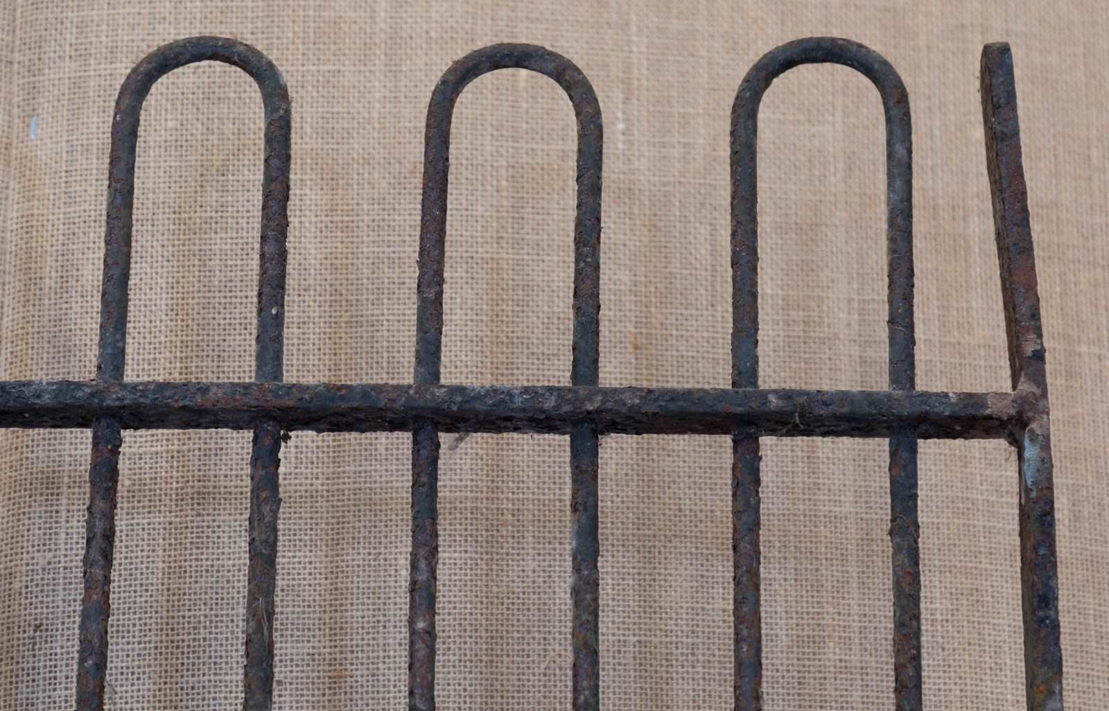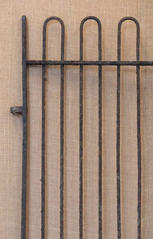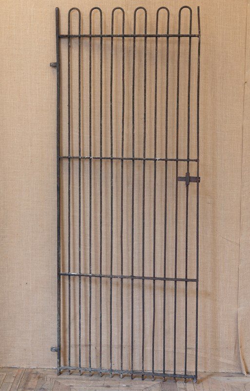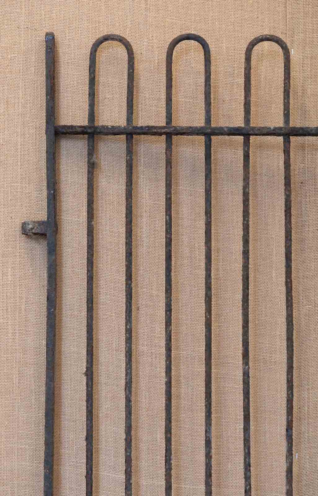 A fabulous mid 19th century iron kennel gate originally from a hunt kennels. Of traditional form with narrow stiles and hooped tops.