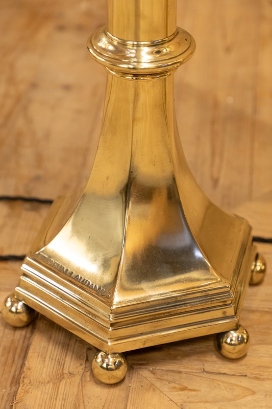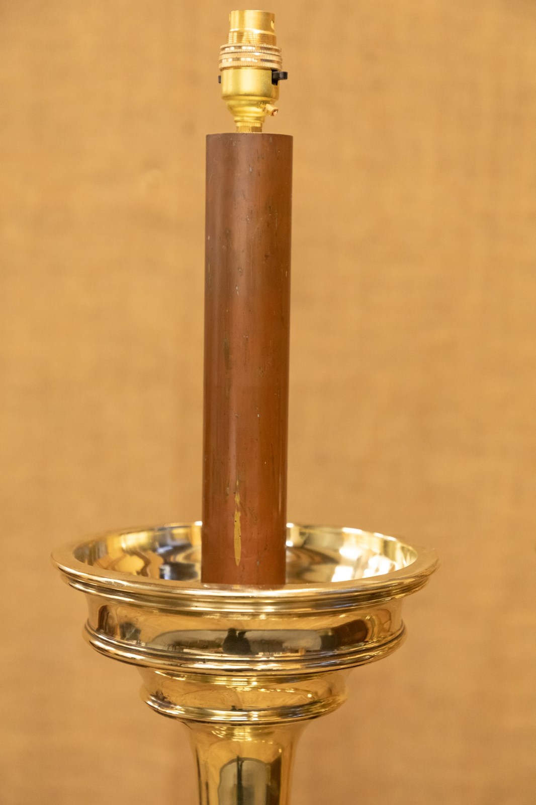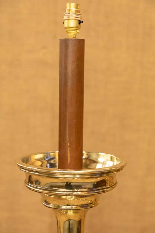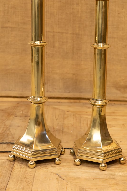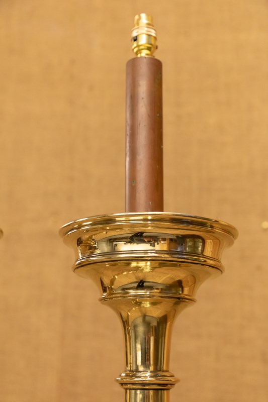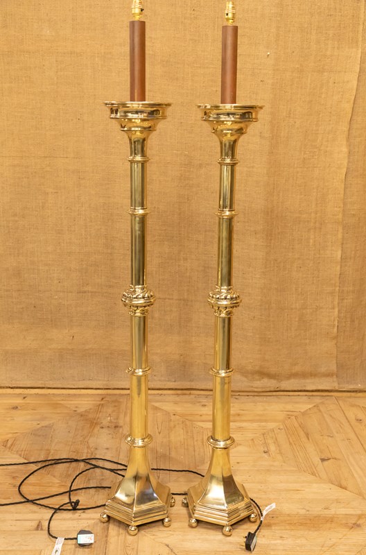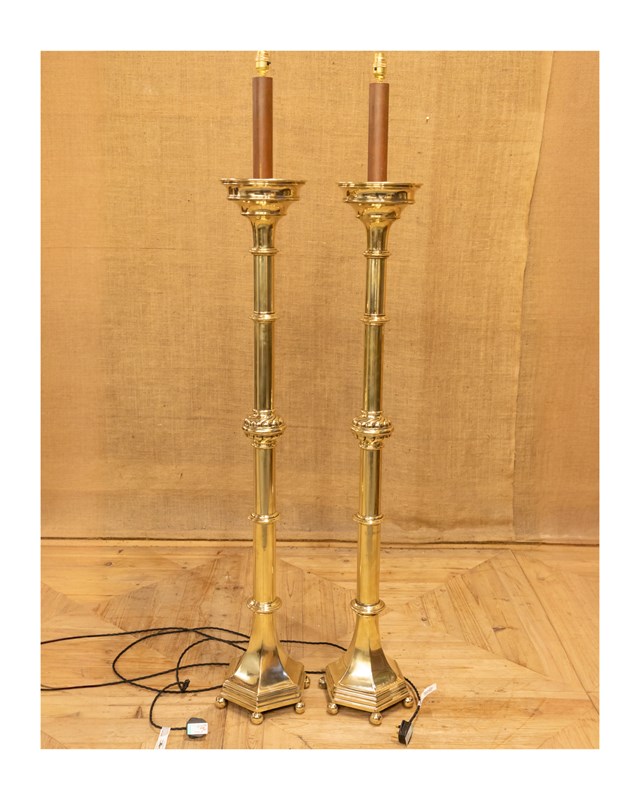 Large Pair Of Brass Gothic Candlesticks Converttred To Standard Lamps