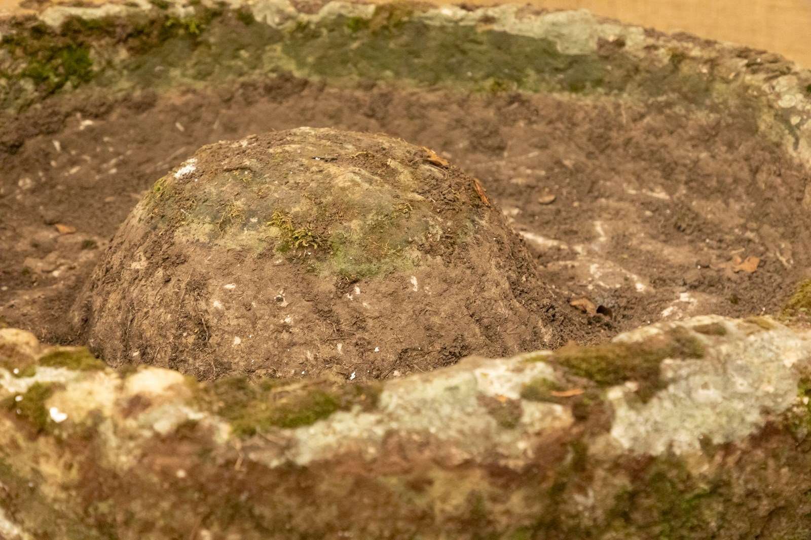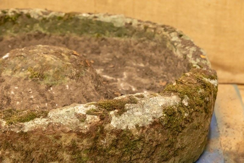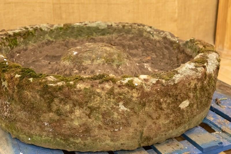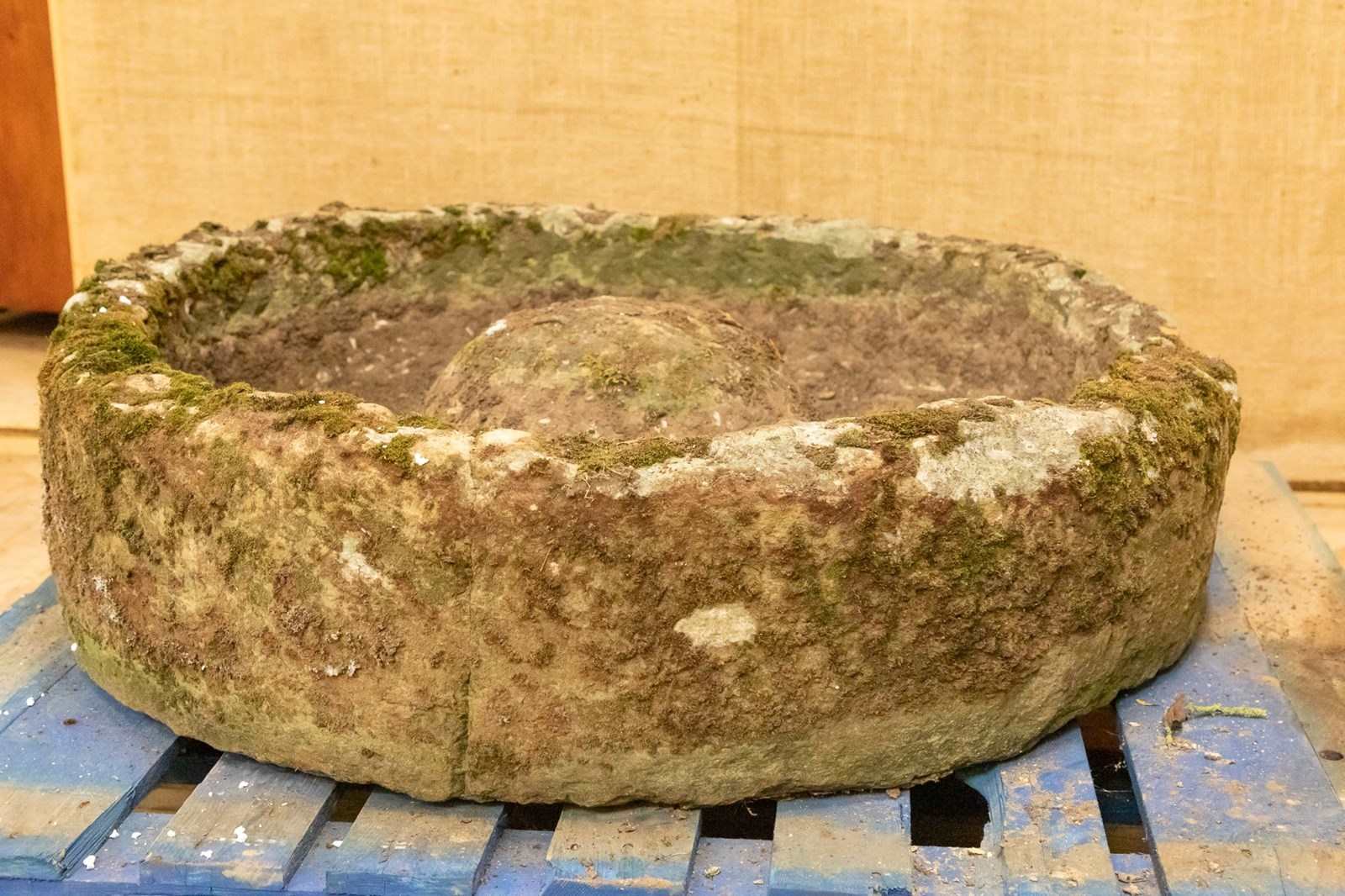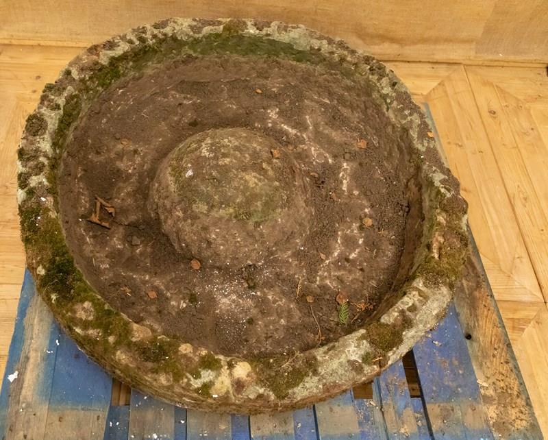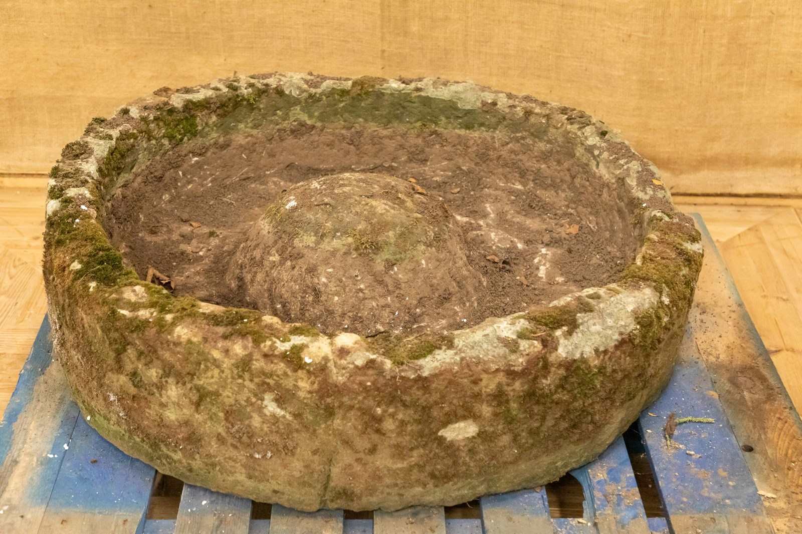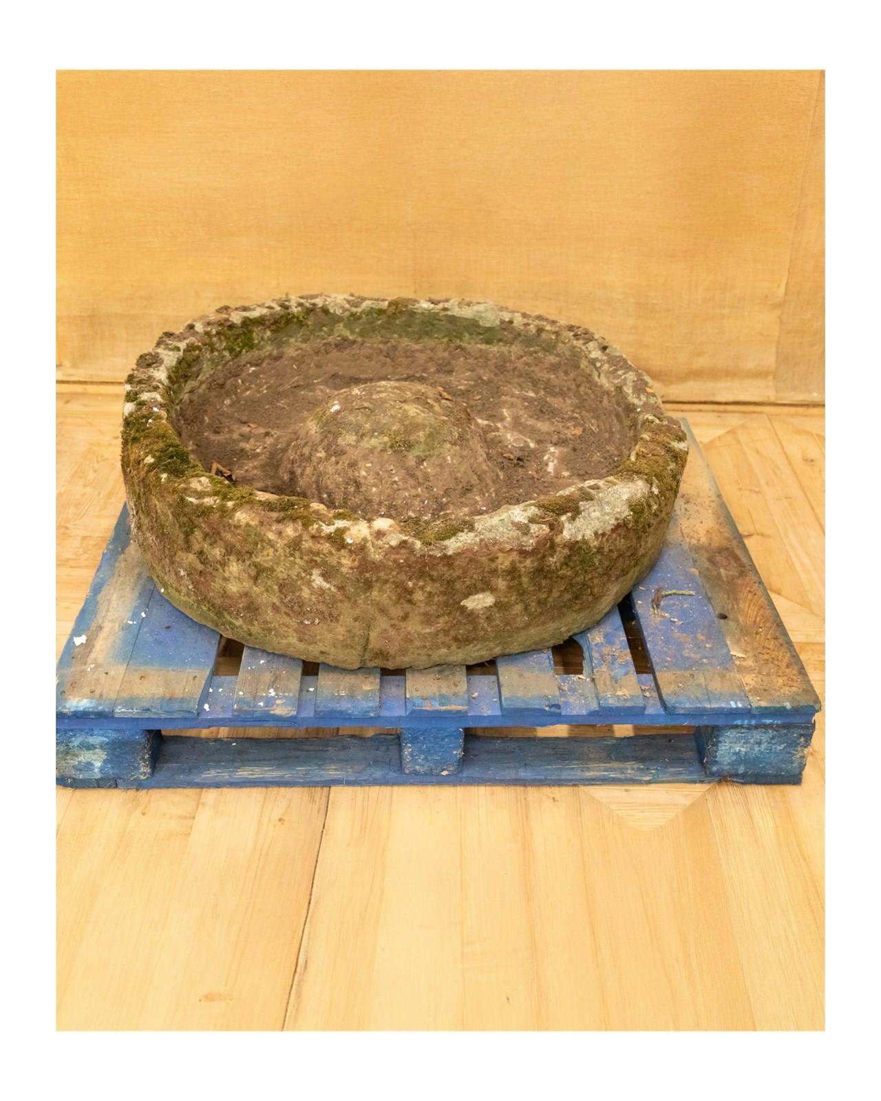 A fabulous 18th century York Stone pig trough. The hand carved sandstone trough is of traditional circular shape with a central raised roundel allowing the pigs to feed. Beautifully weathered with a fantastic colour and patina. In very good condition with some minor cracks and fault lines none of which seem to go through the trough and most likely were caused during the hand carving.