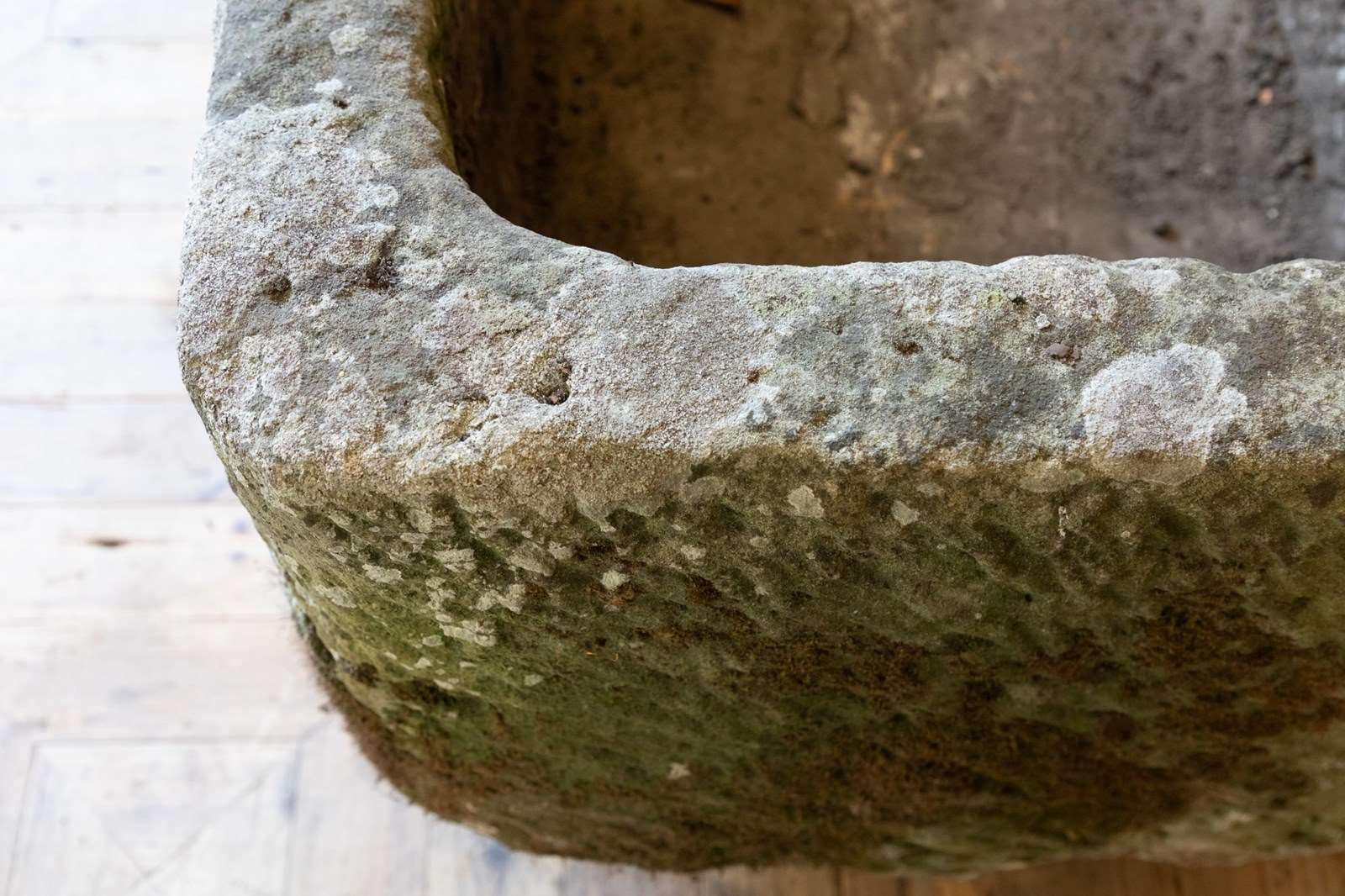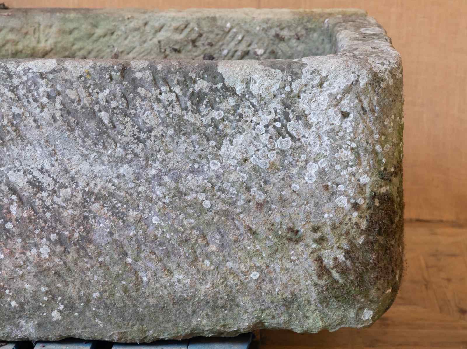 A lovely very large York Stone horse trough. Dating to the 18th century, covered in lichen with a lovely colour and patina. The back has several fracture cracks but overall the trough is still structurally sound and when planted these fractures will not been seen.