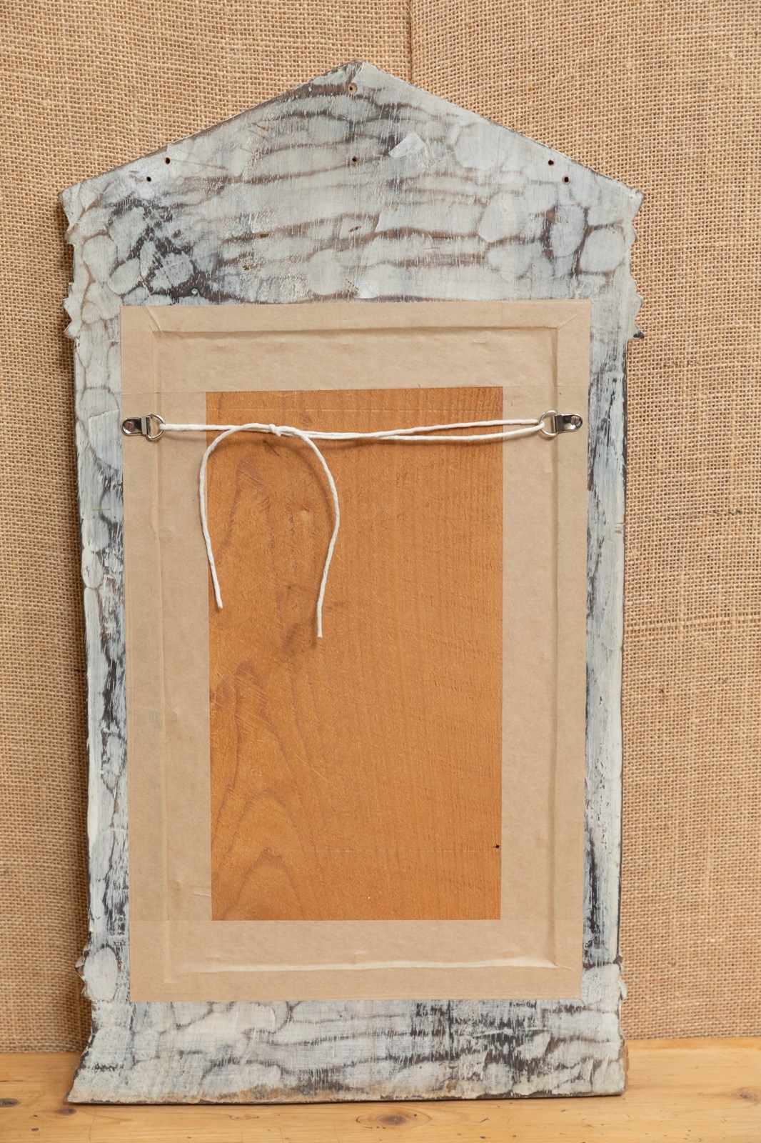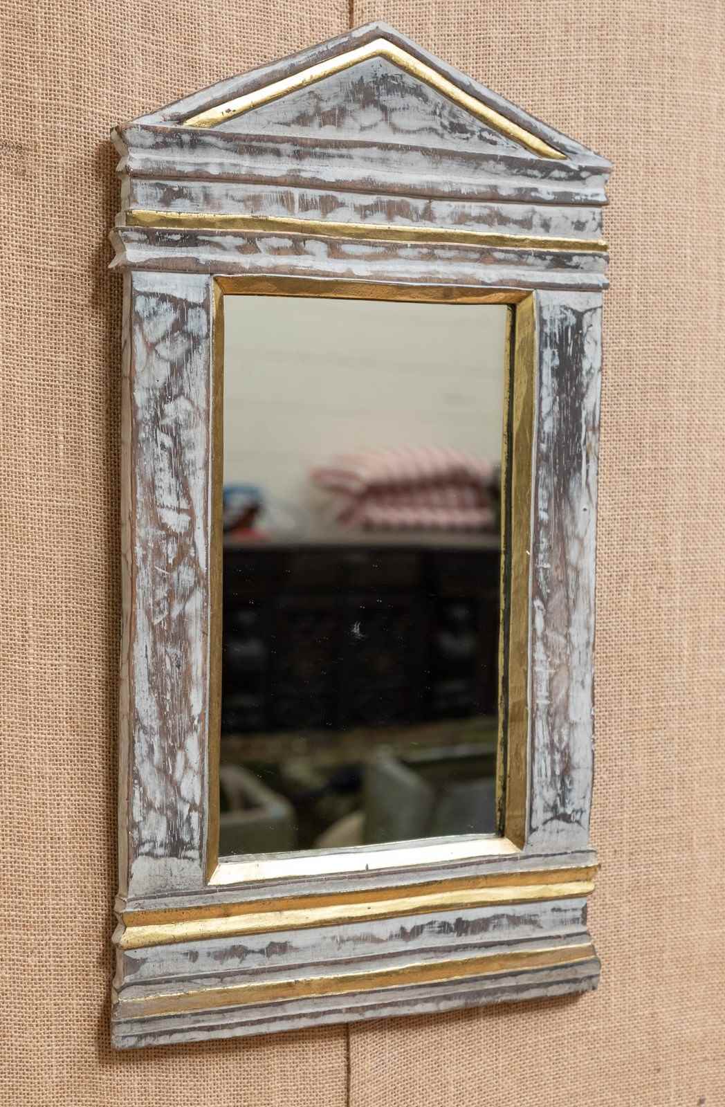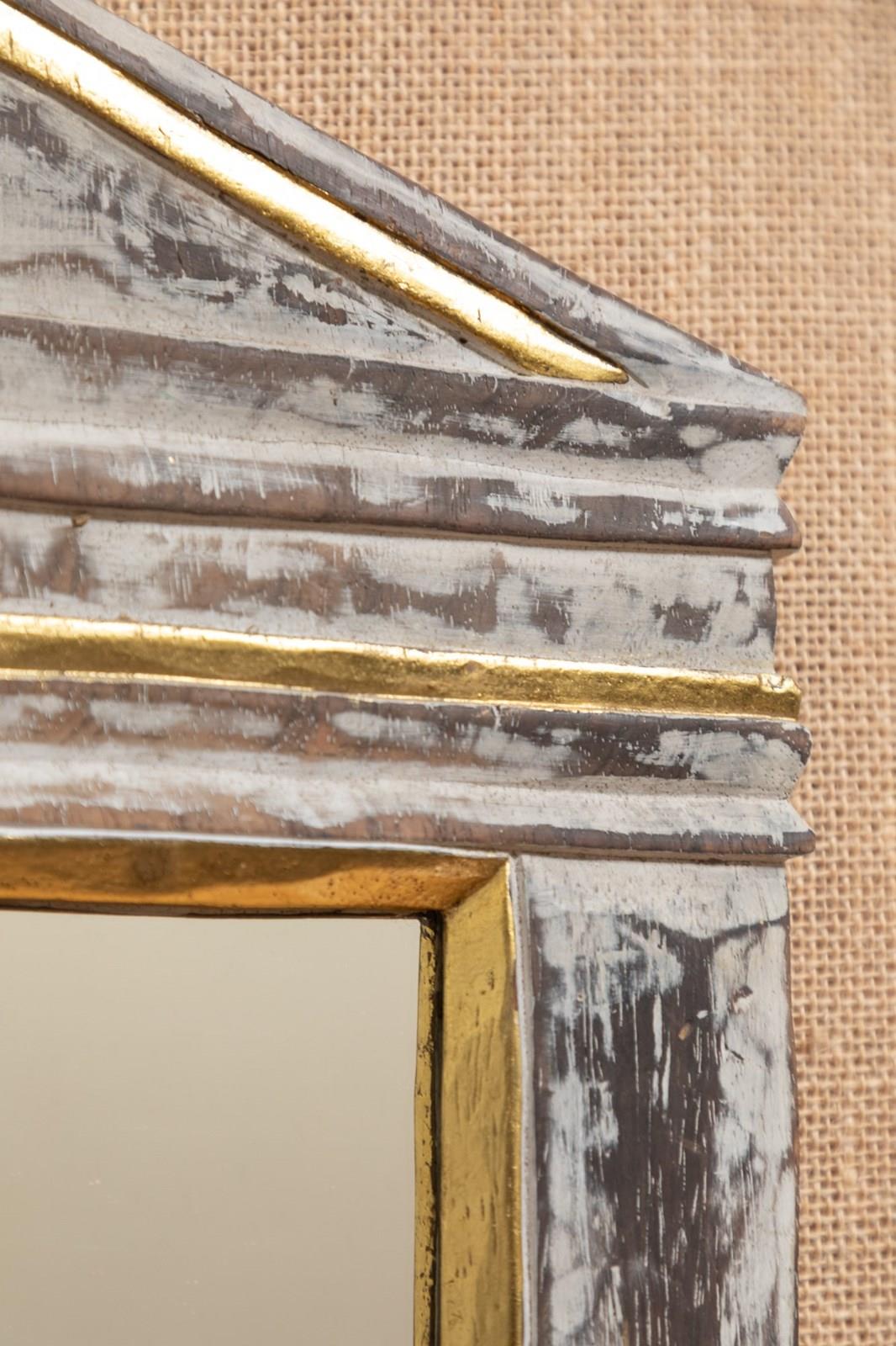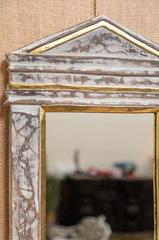 A wonderful limed and girl wood mirror in the architectural style.
