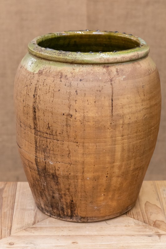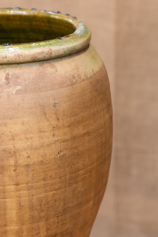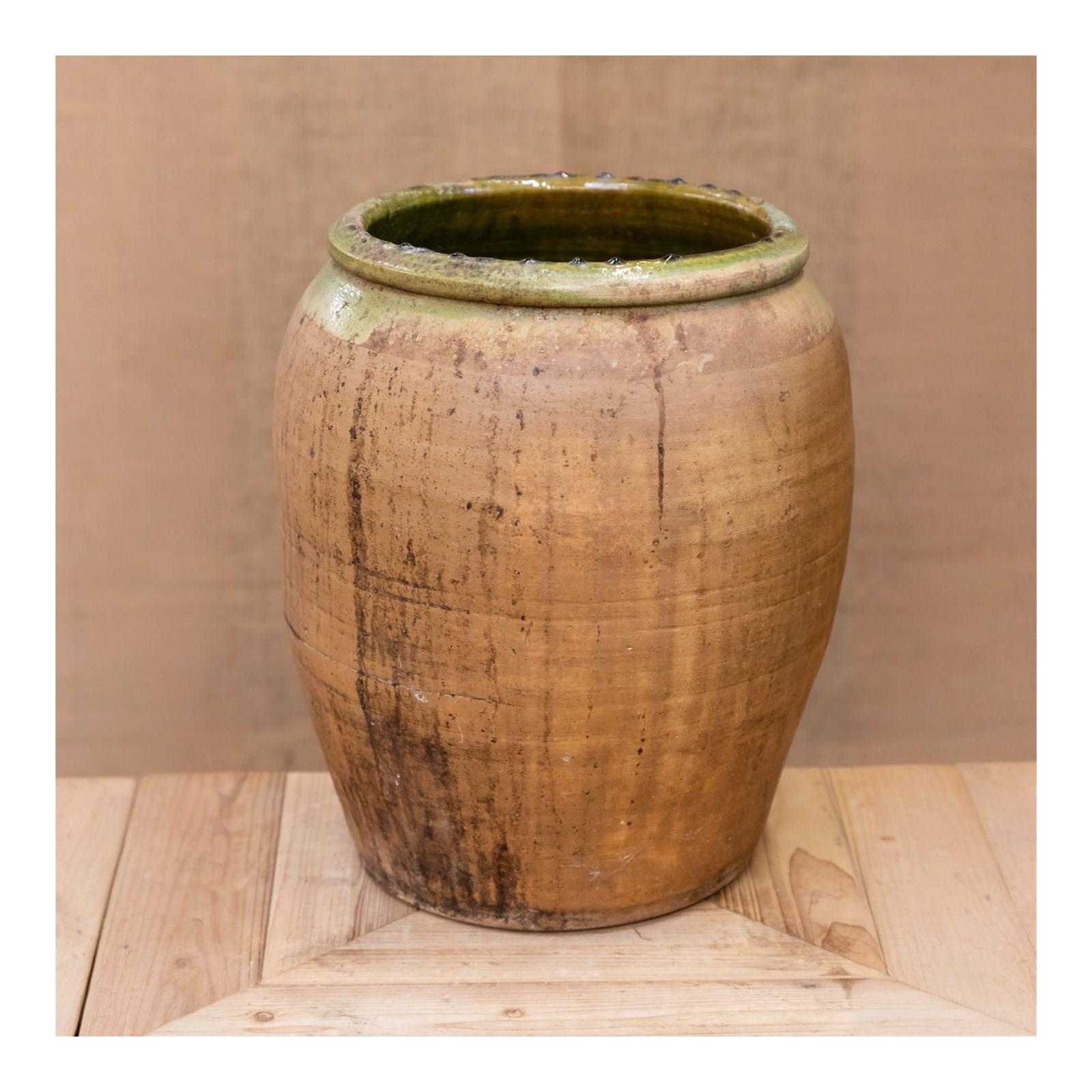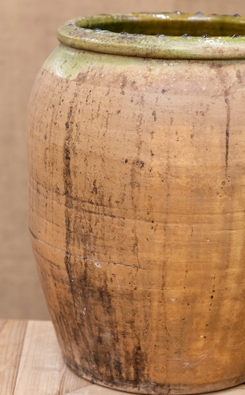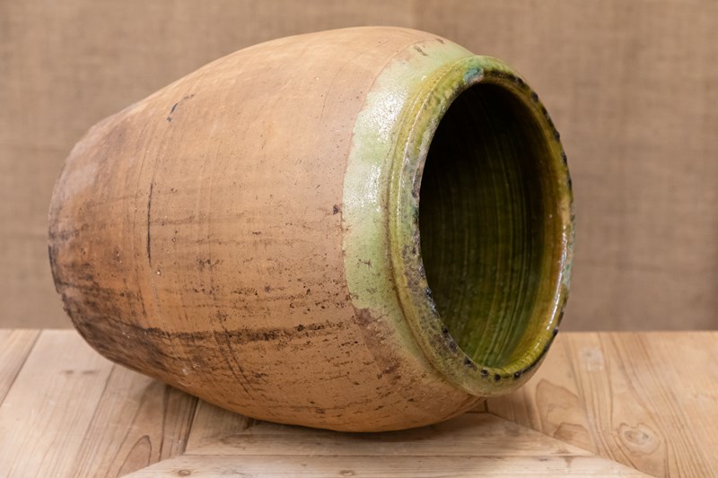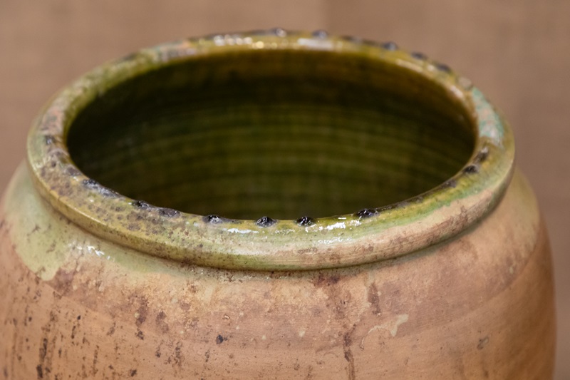 Spanish Terracotta Olive Pot With Green Glaze