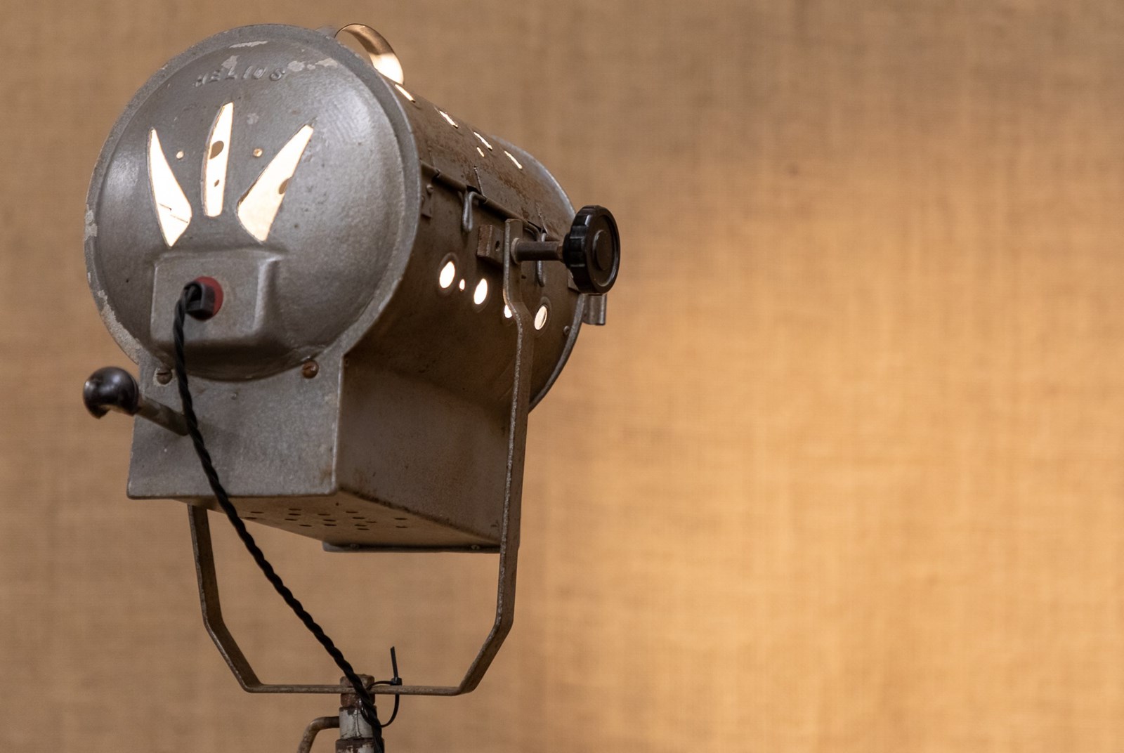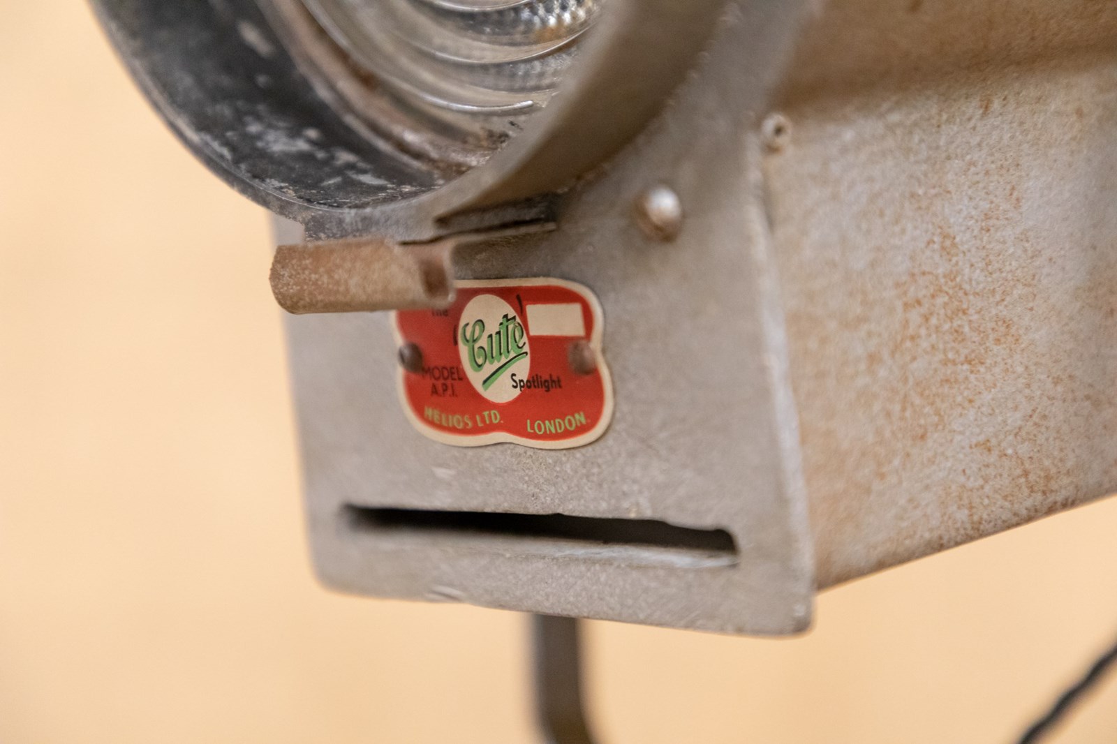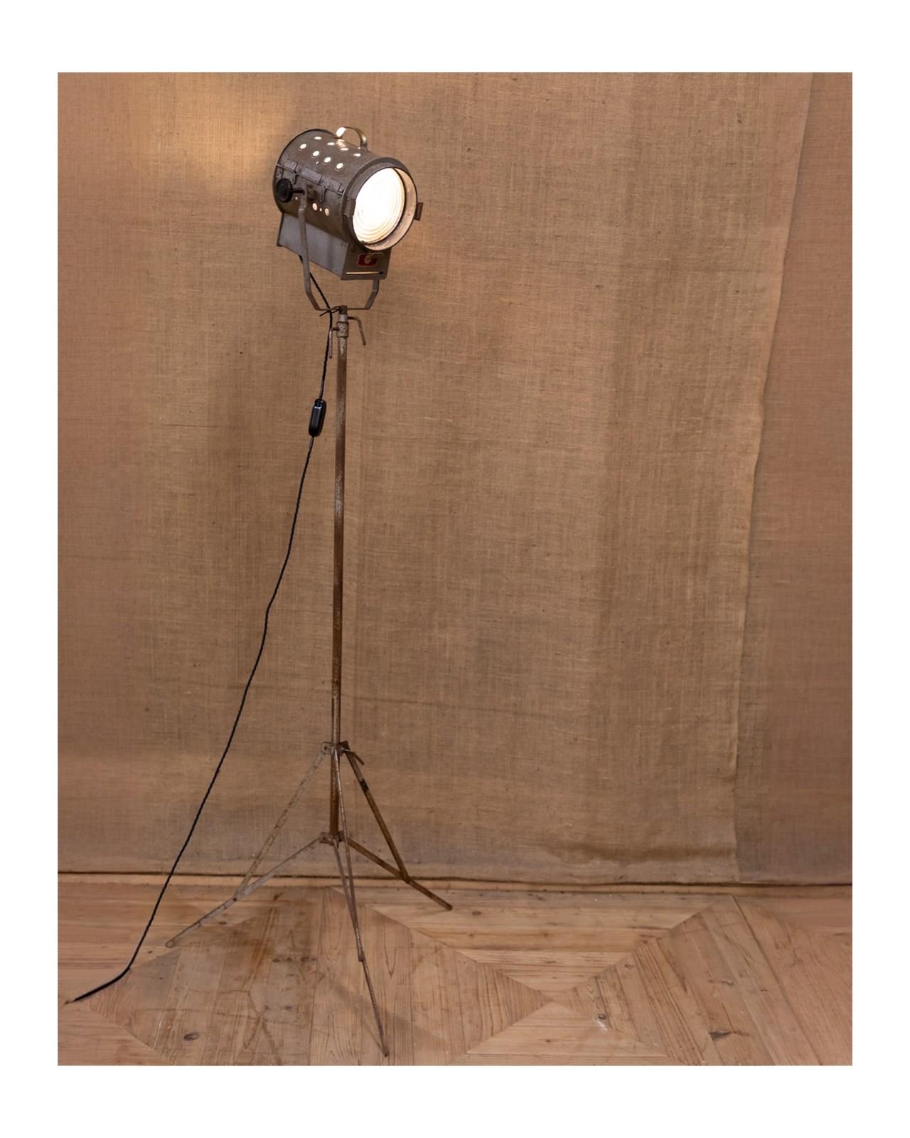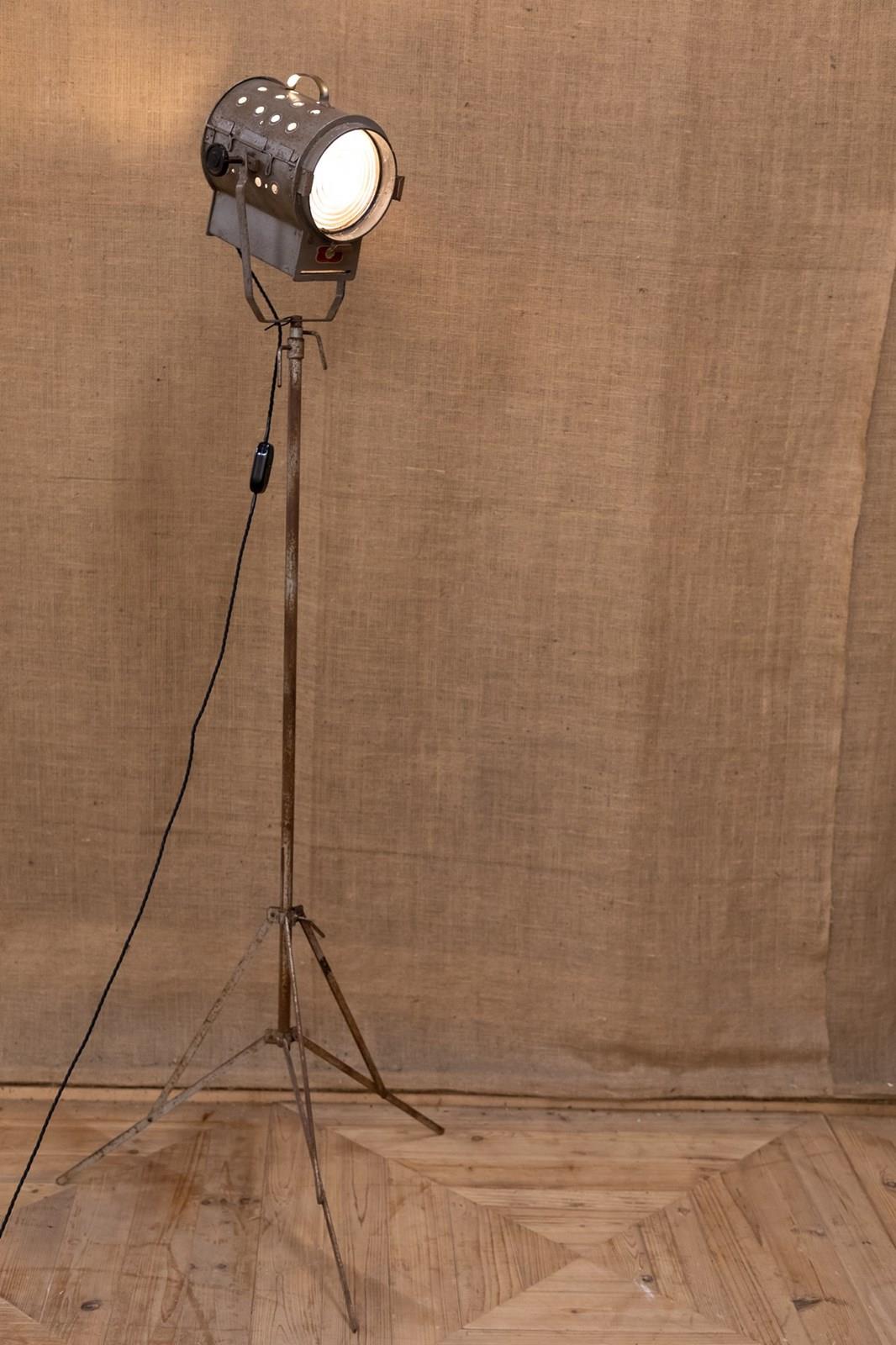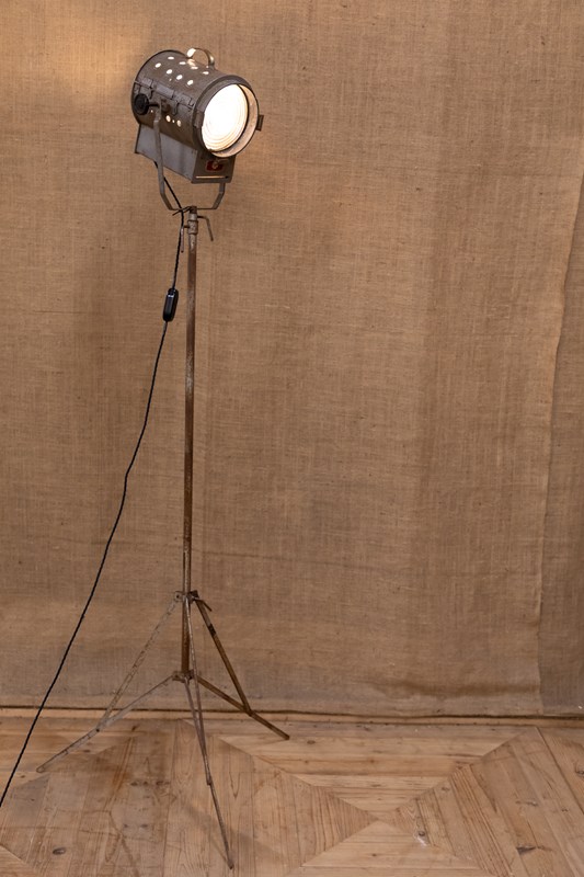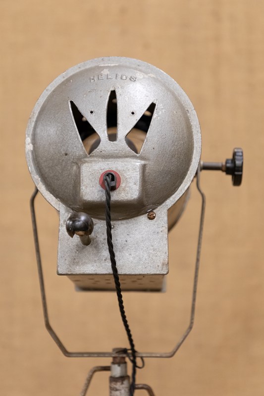A fantastic mid century stage or studio spotlight by Helios Ltd. Manufactured under the name of the 'Cute Spotlight' this lamp is model API. Fully rewired and PAT tested. Mounted on the original adjustable tripod.