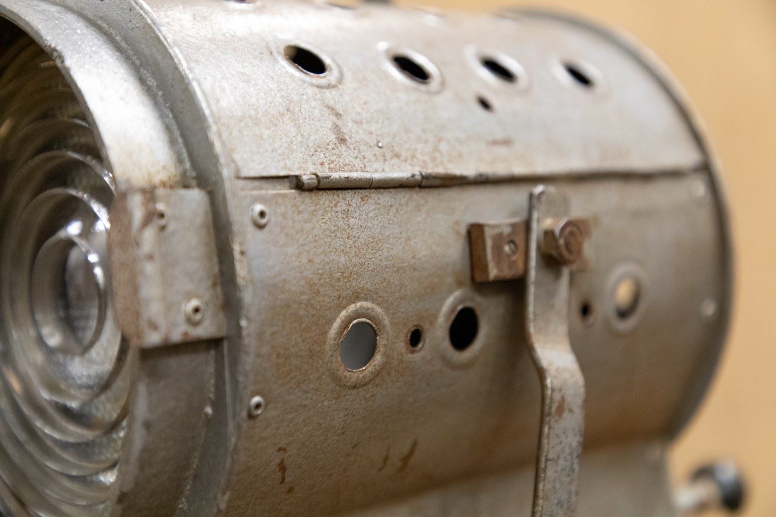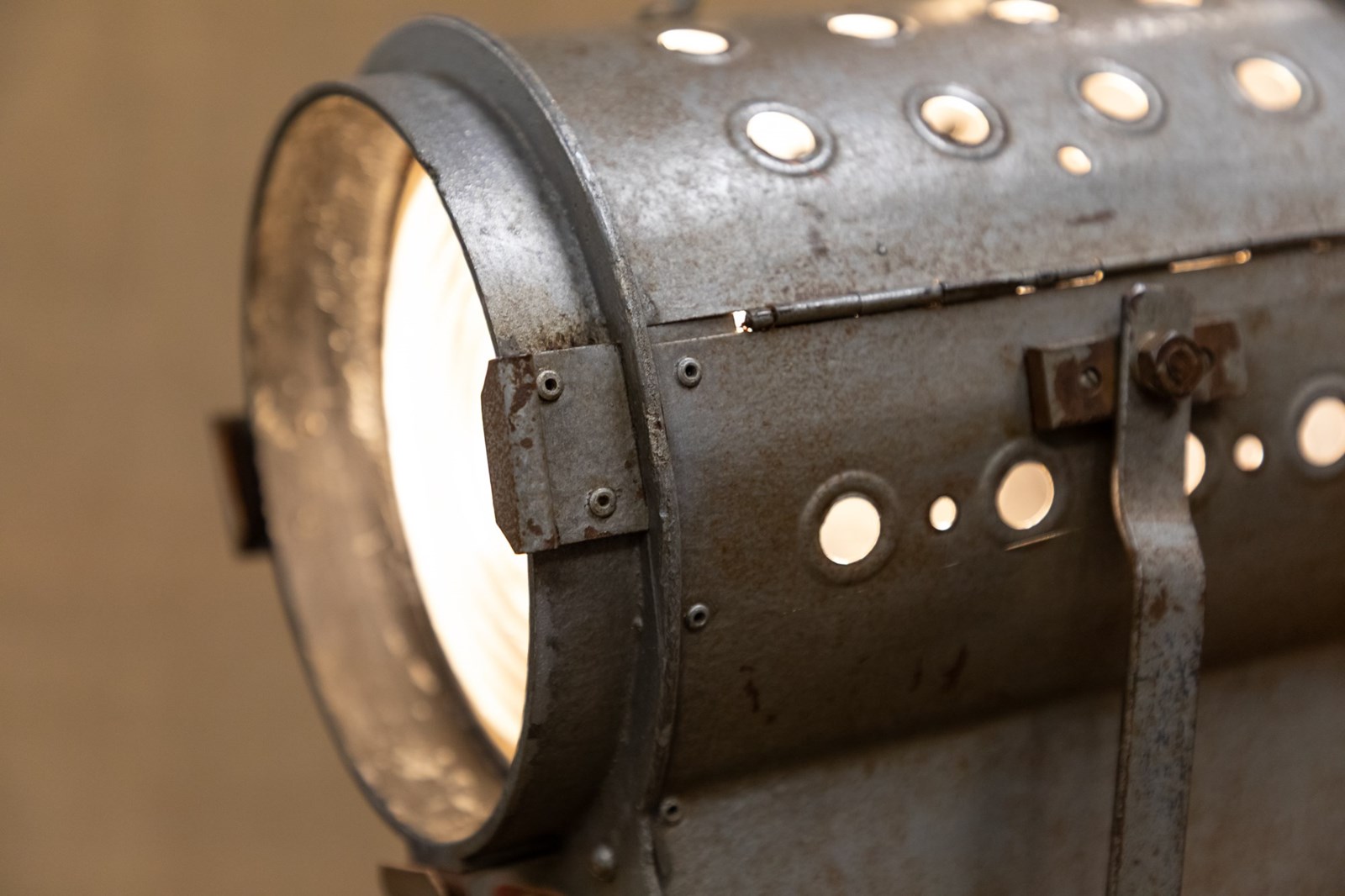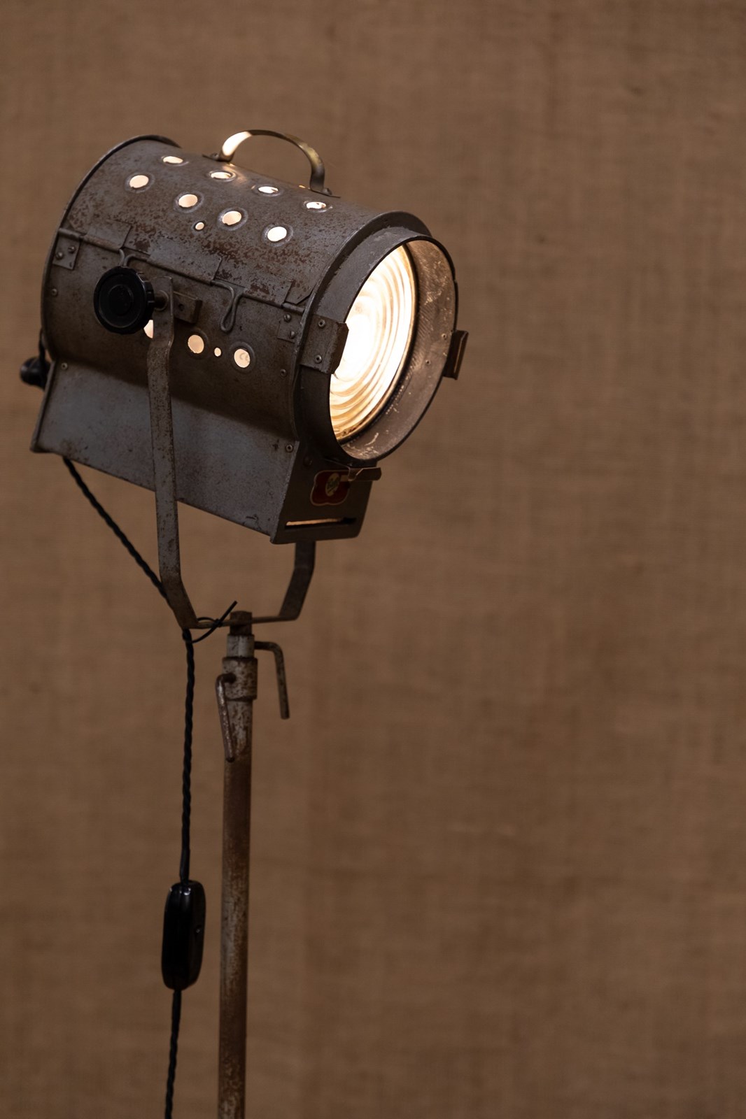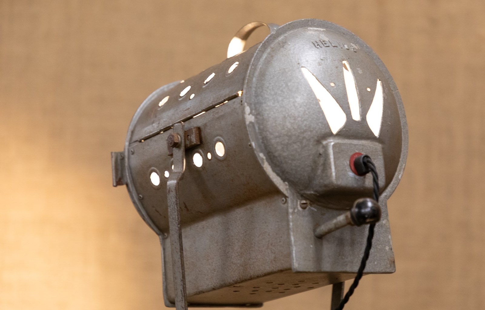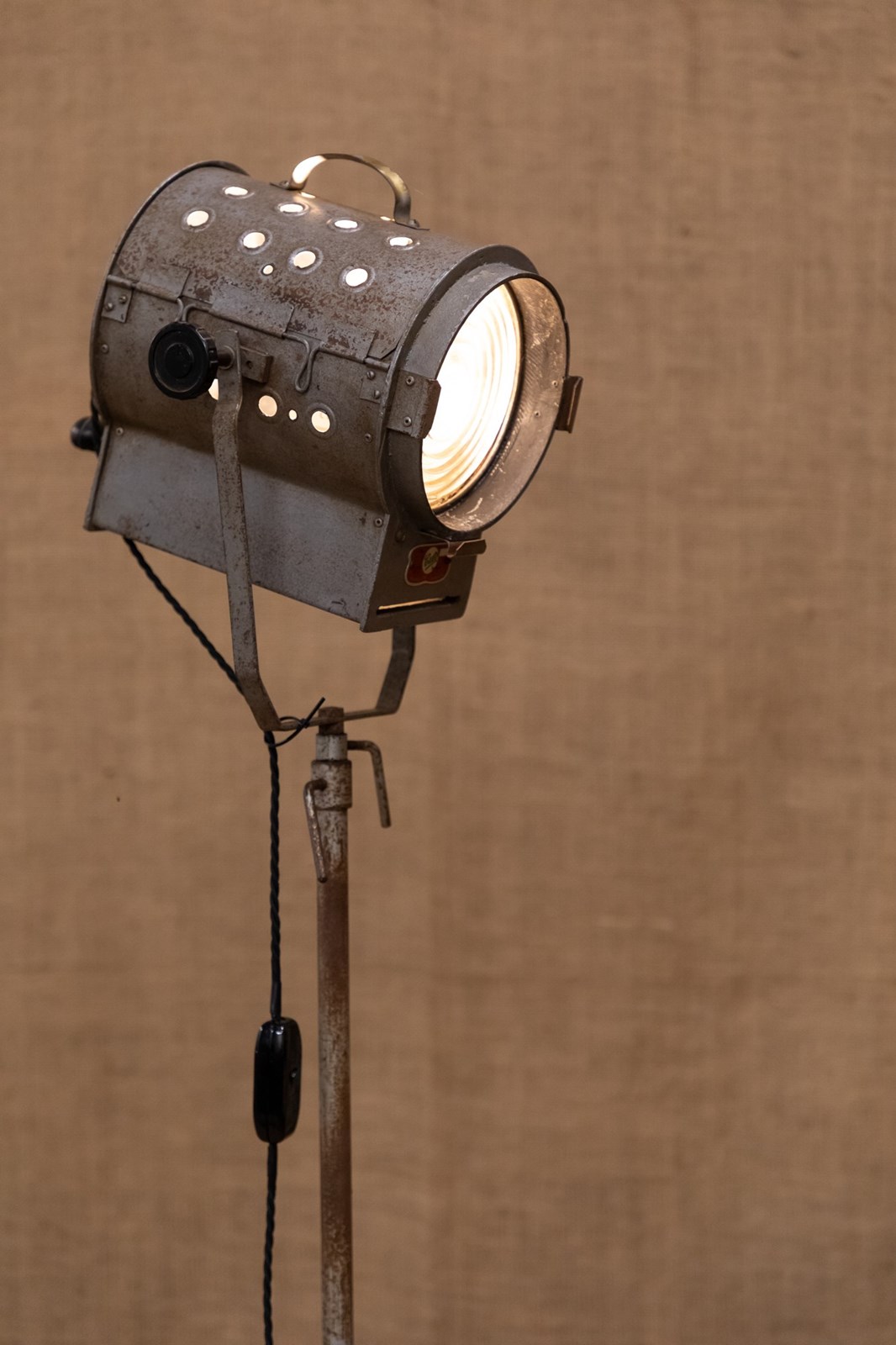 A fantastic mid century stage or studio spotlight by Helios Ltd. Manufactured under the name of the 'Cute Spotlight' this lamp is model API. Fully rewired and PAT tested. Mounted on the original adjustable tripod.