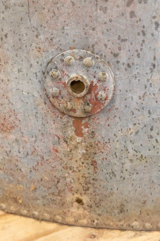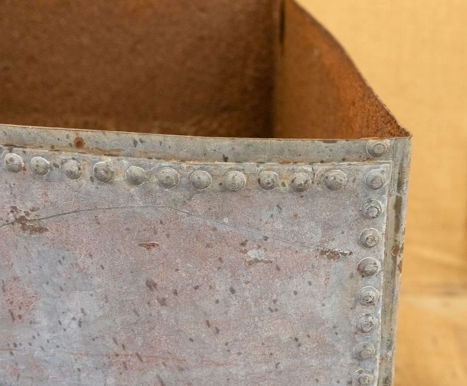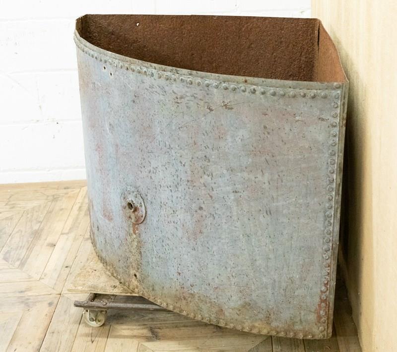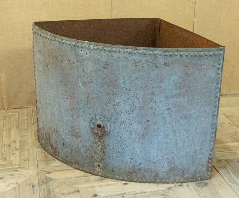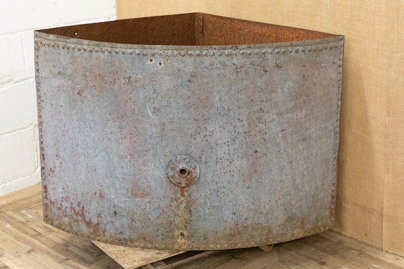 A fantastic zinc galvanised corner water tank. More recently used as a garden planter. Of traditional construction with wonderful riveted details. Fabulous surface, colour and patina.
