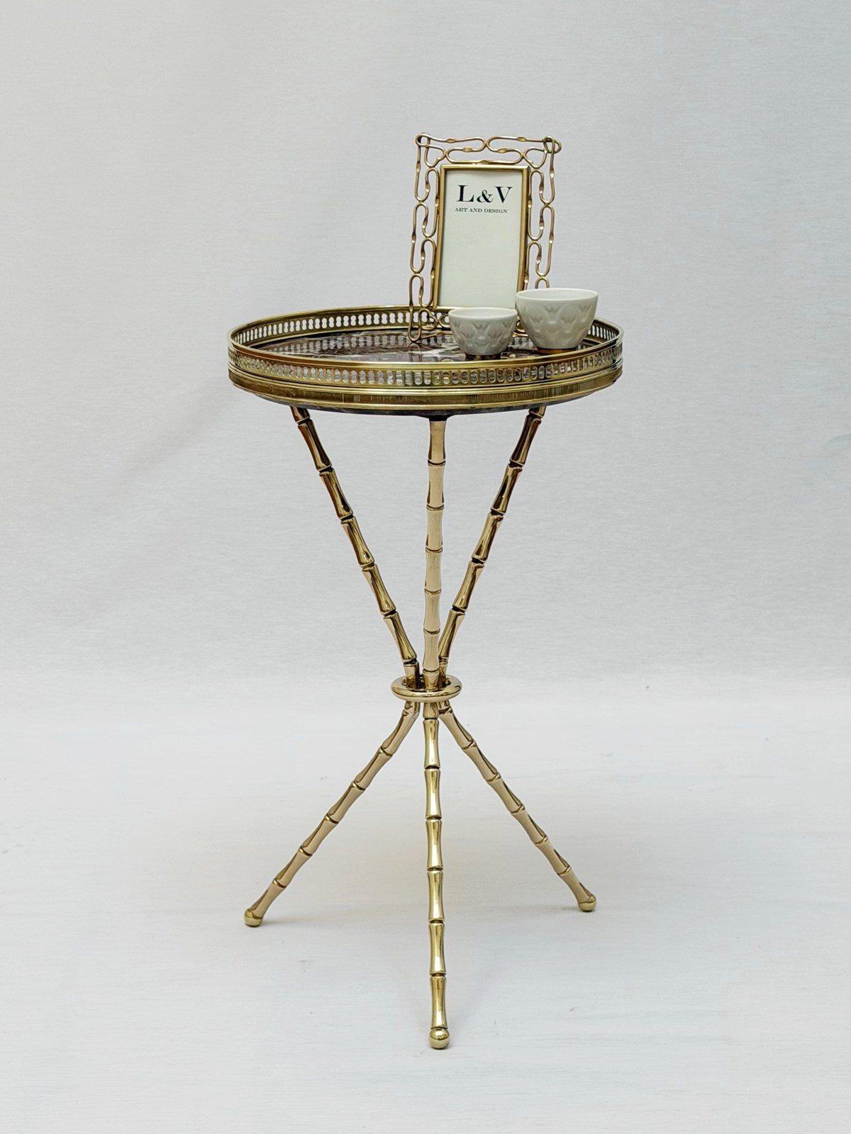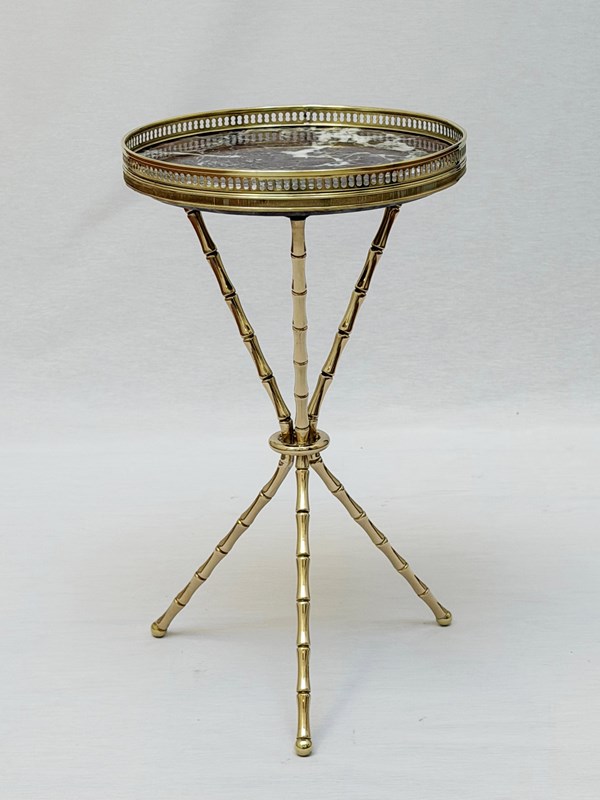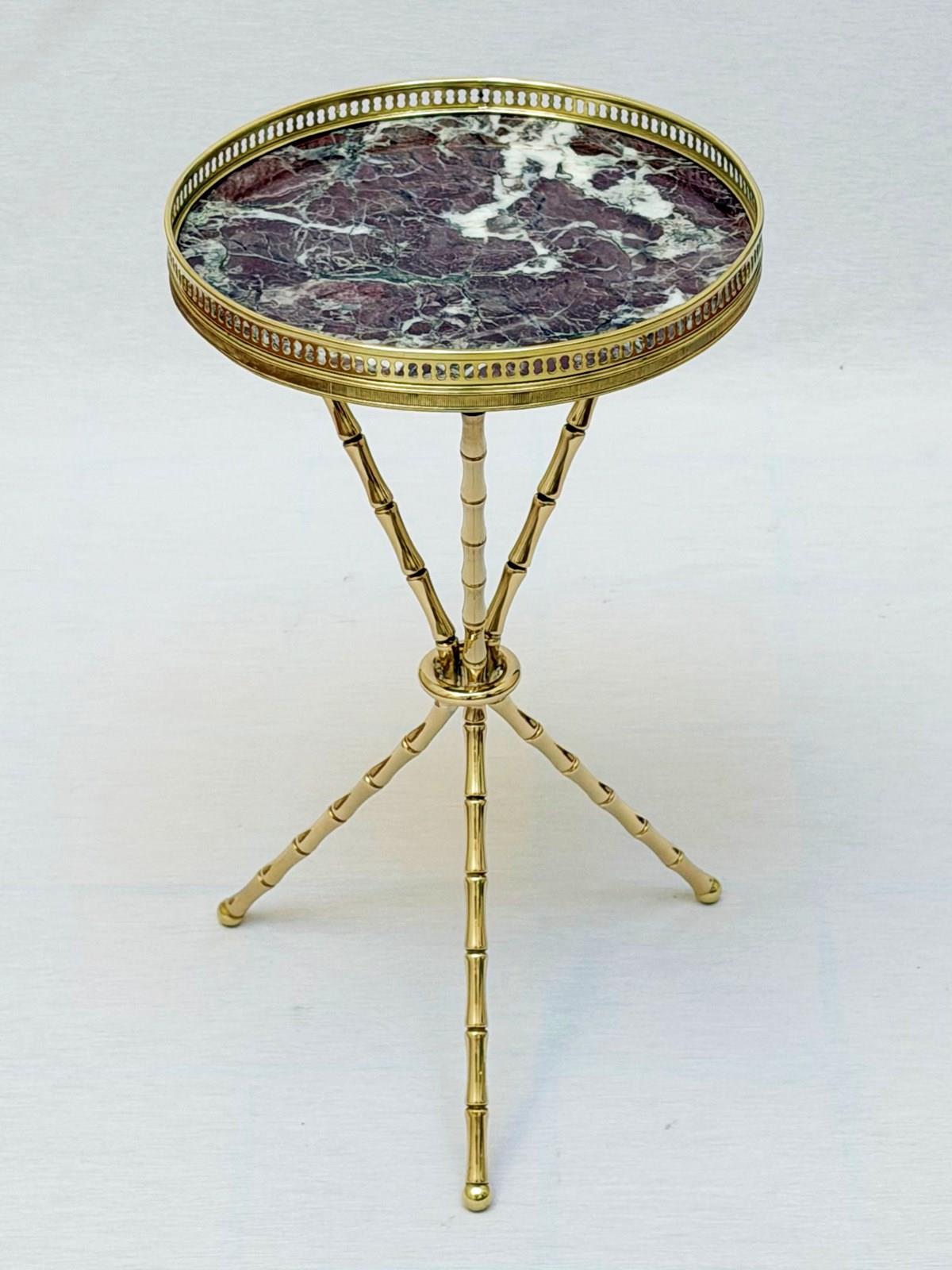 A brass faux bamboo and Rosso Levanto marble gueridon attributed to Maison Baguès