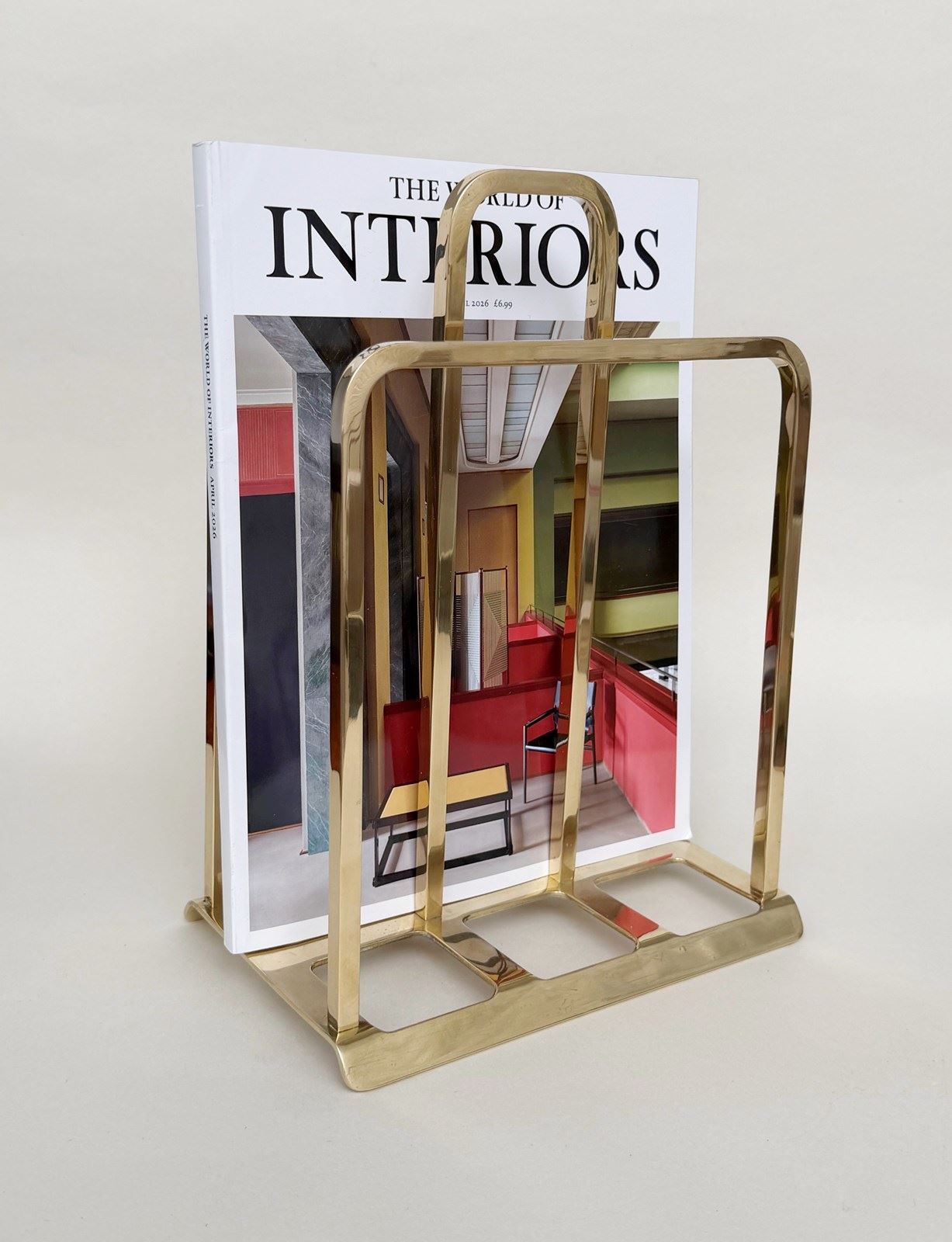 A brass magazine rack