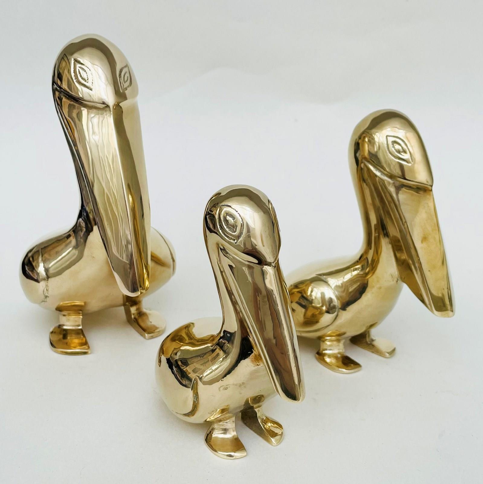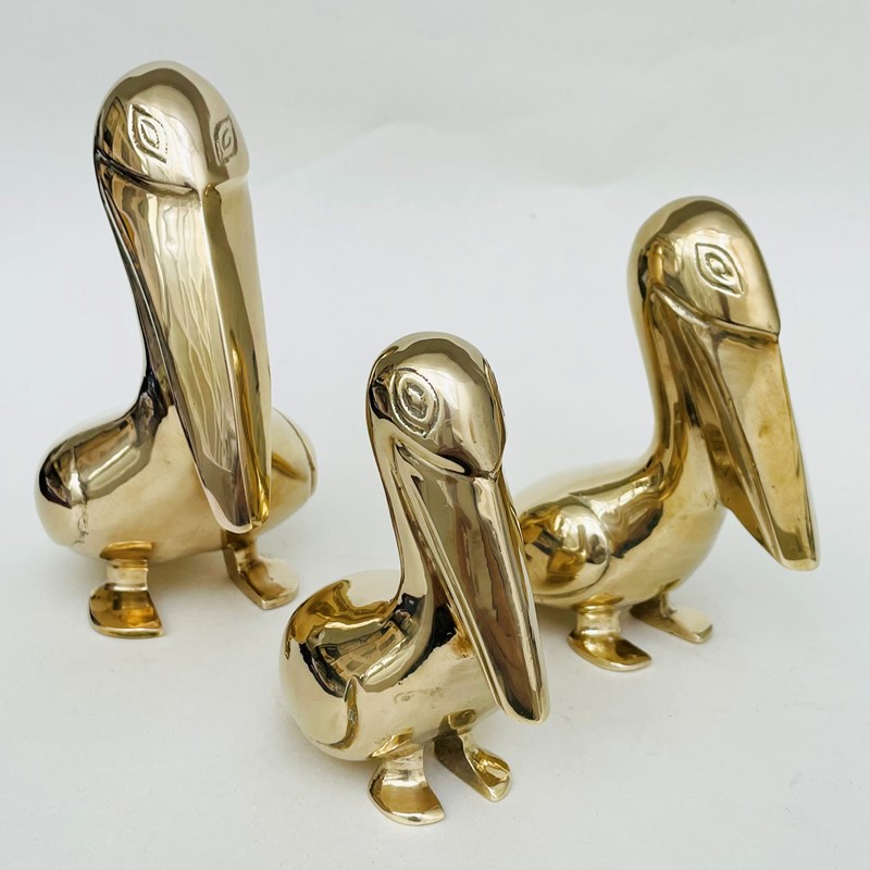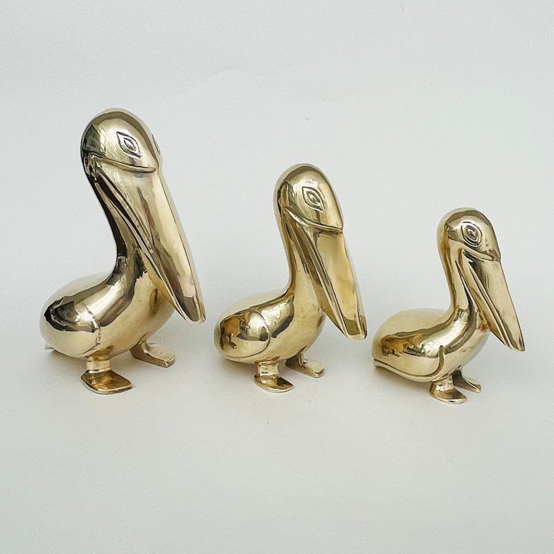 A family of brass pelicansBritish circa 1950 Heights:6 ¾ in / 17 cm5 ½ in / 14 cm4 ¾ in / 12 cm