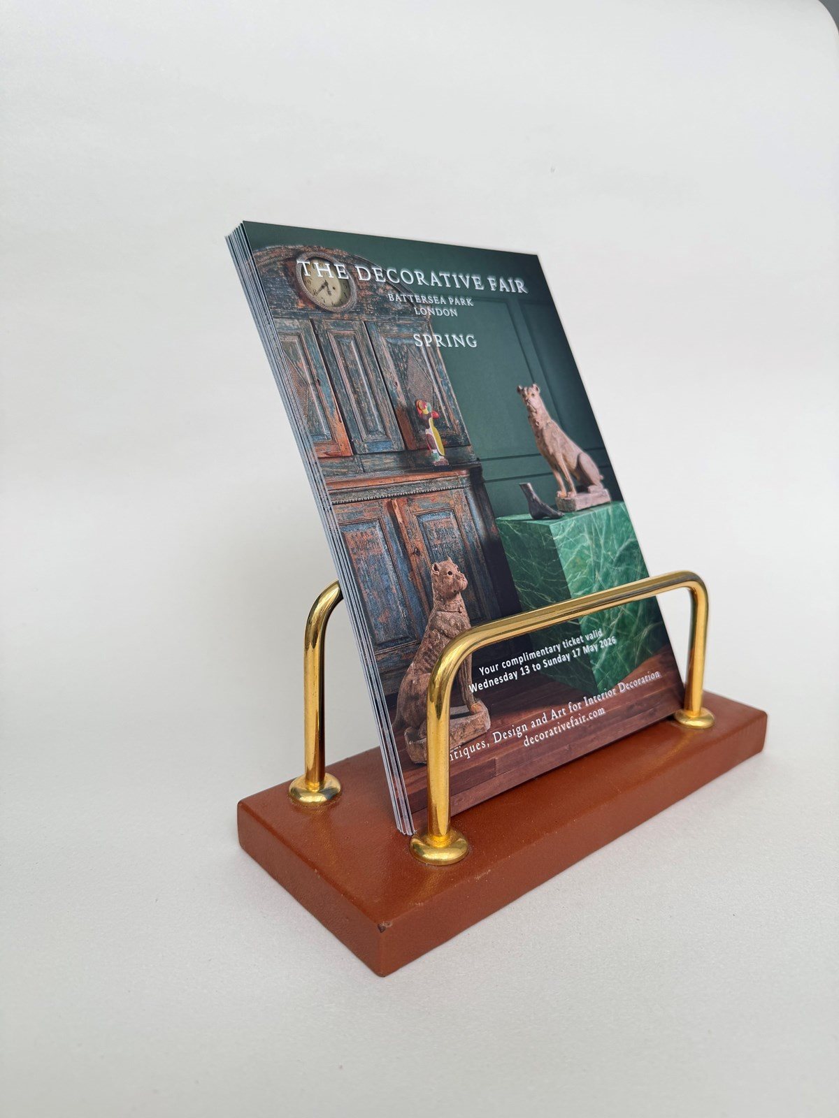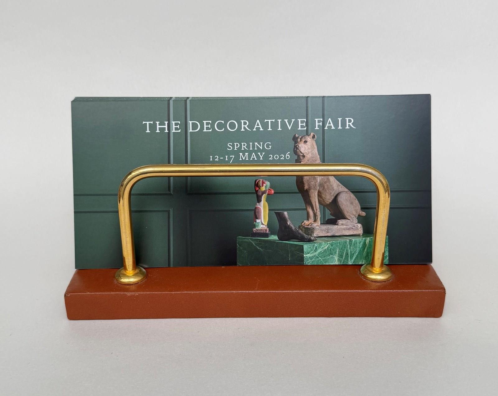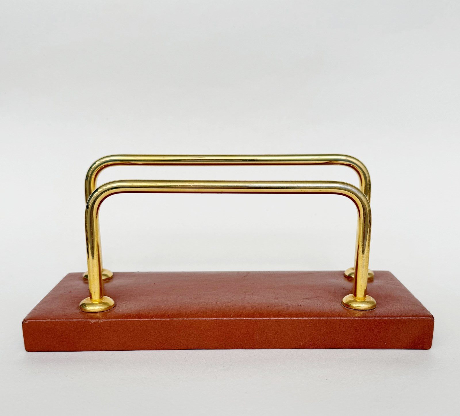 A brass and tan leather letter rack by Lancel