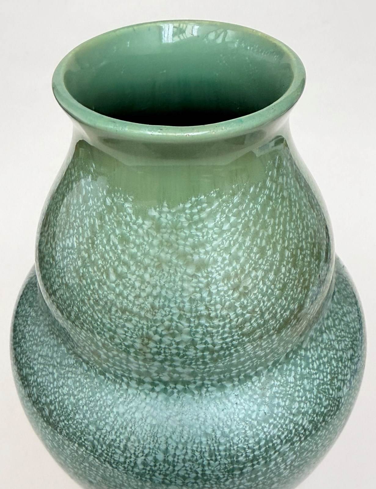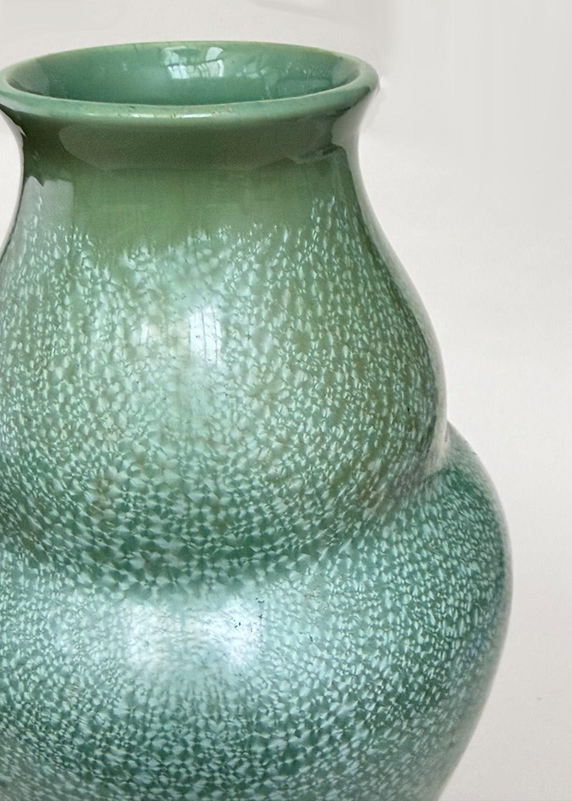 An Art Nouveau green metallic crystalline glaze