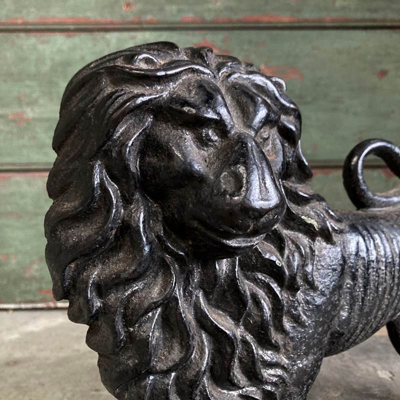 19Th C. Cast Iron Lion Doorstop