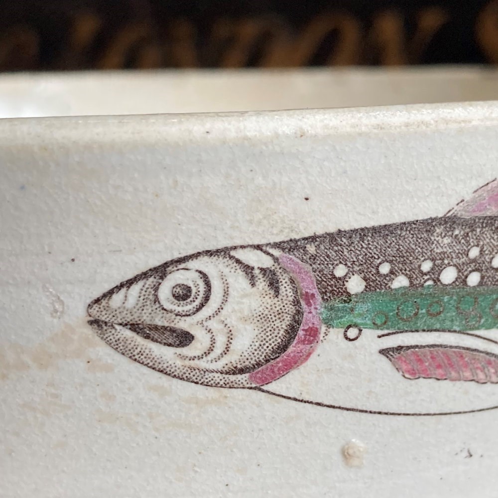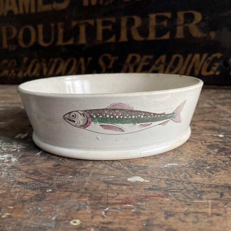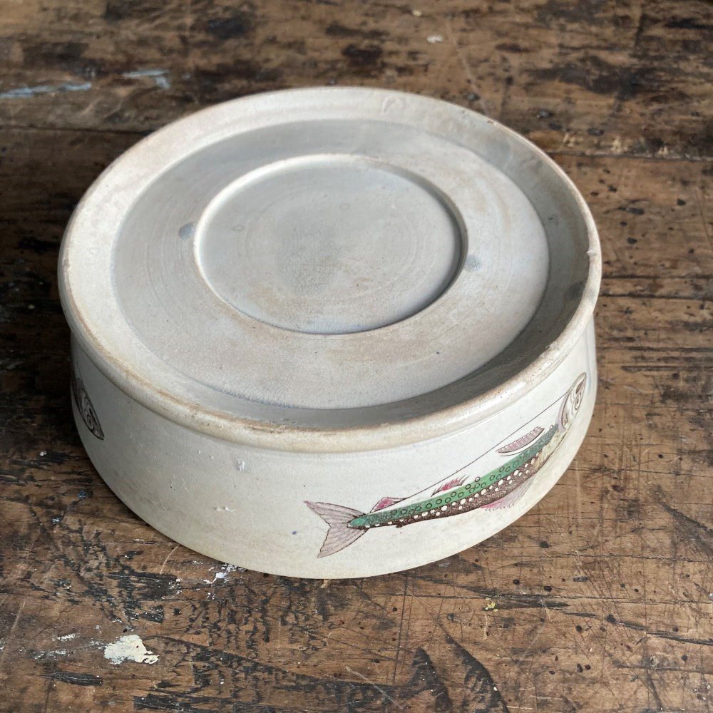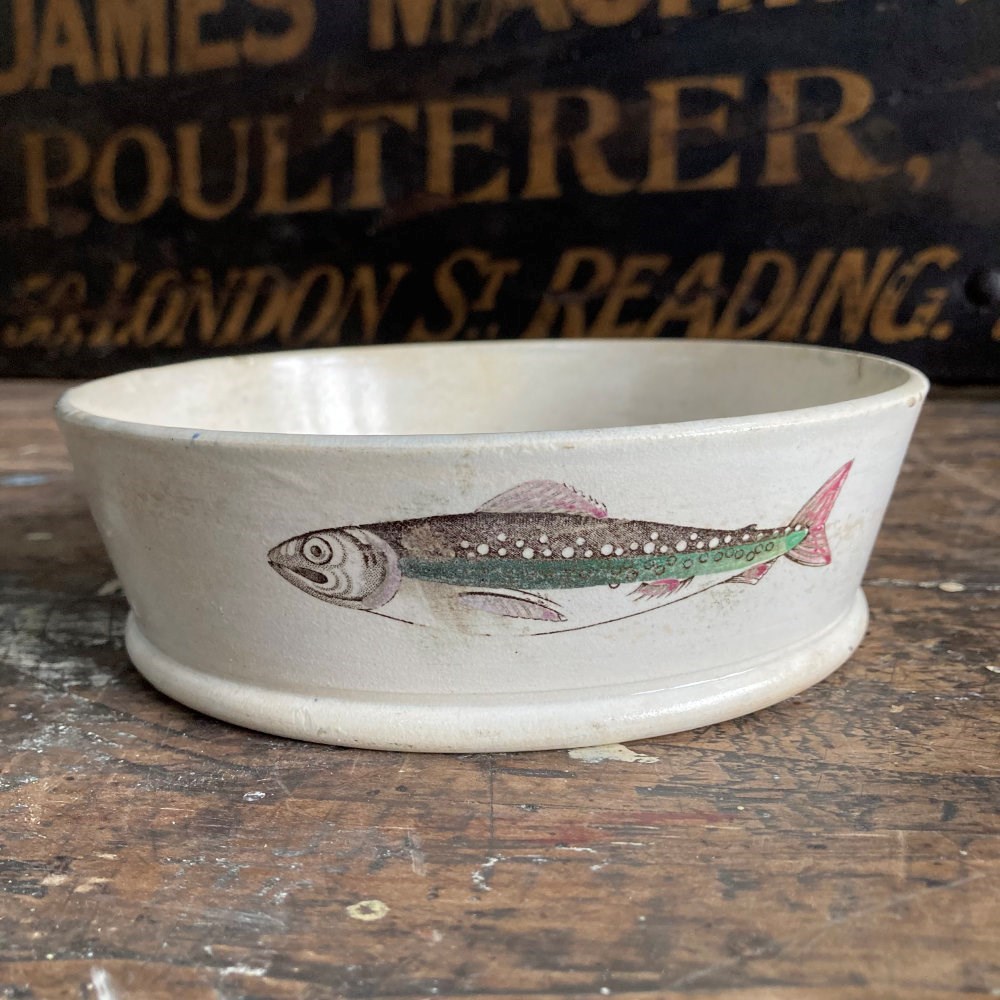These dishes were used for potted charr, a fashionable delicacy in the 18th and 19th century. Charr is a salmon-like fish native to deep, cold lakes, particularly Windermere in Cumbria. The fish was seasoned with spices usually mace or cloves, and then sealed in the dish with a layer of clarified butter, enabling it to not spoil during transport, often to London.