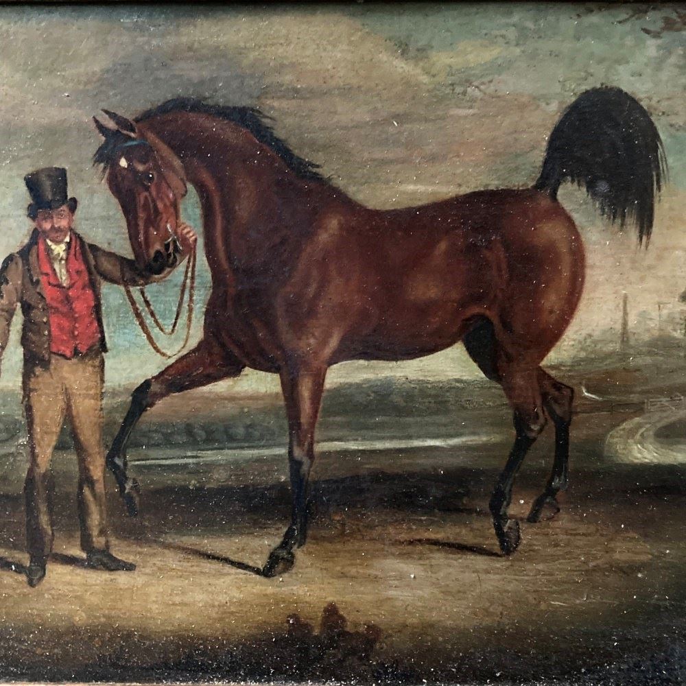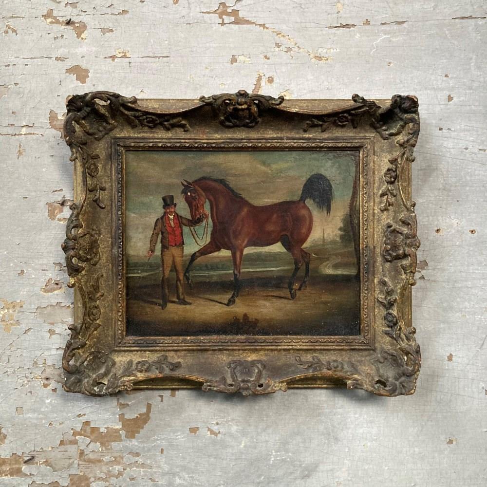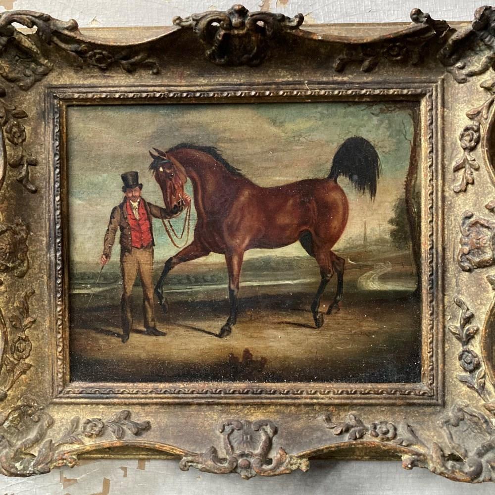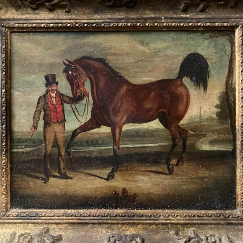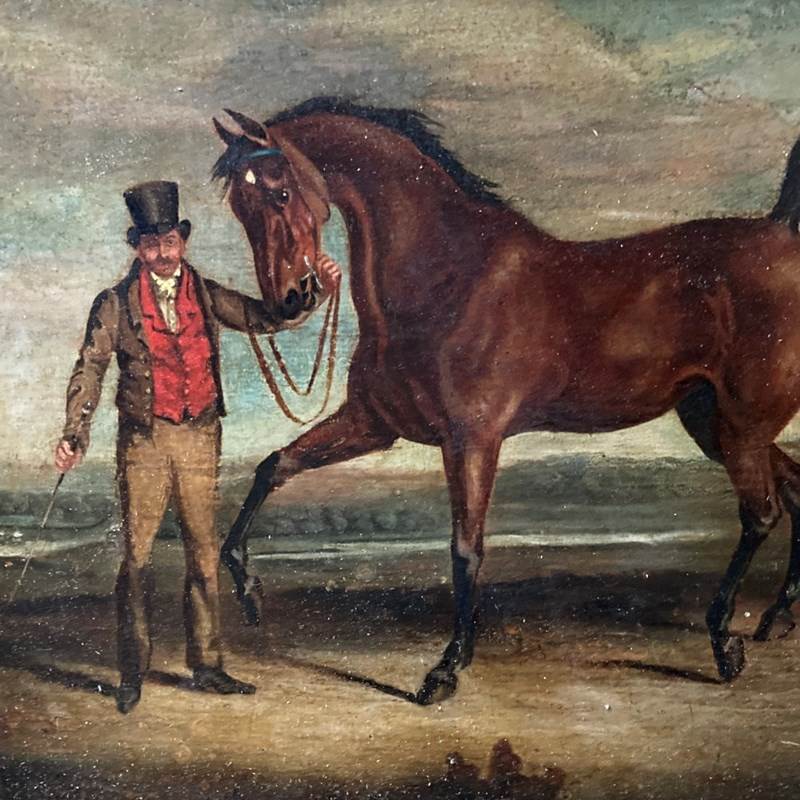 Antique Oil Painting - Gentleman And Horse