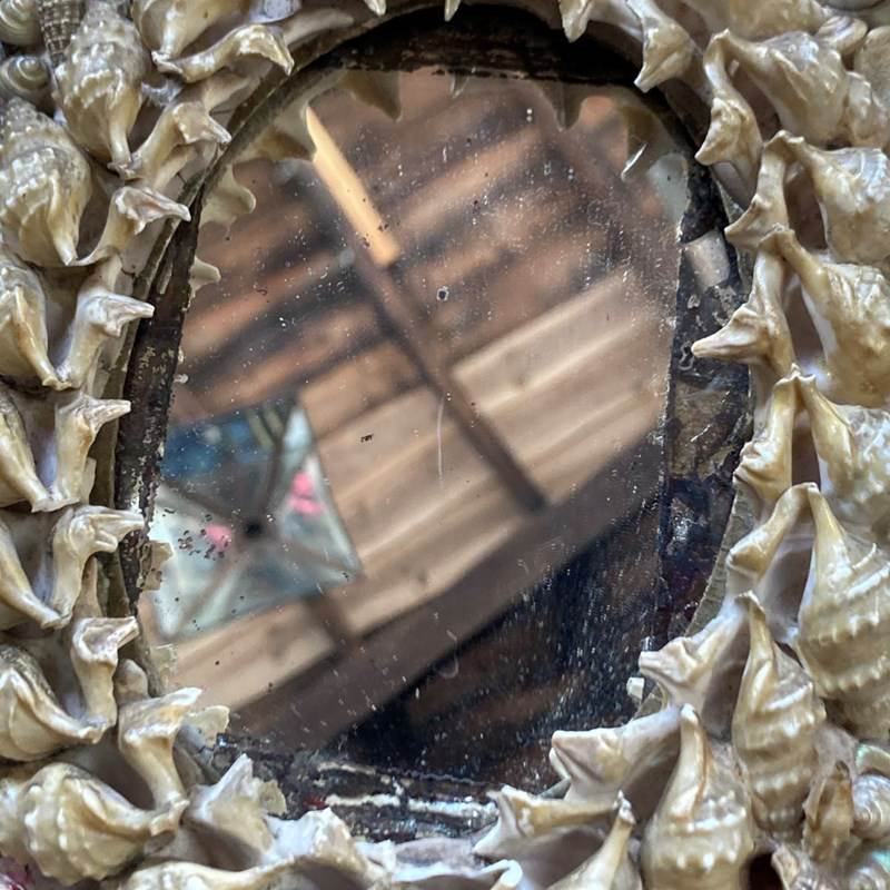 A small Edwardian shellwork framed mirror. Beautifully crafted, with great attention given to the symmetry of this piece.
