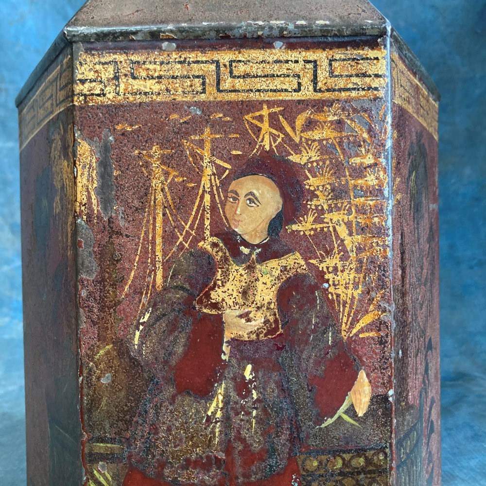 Antique Toleware Tea Canister - Chinoiserie